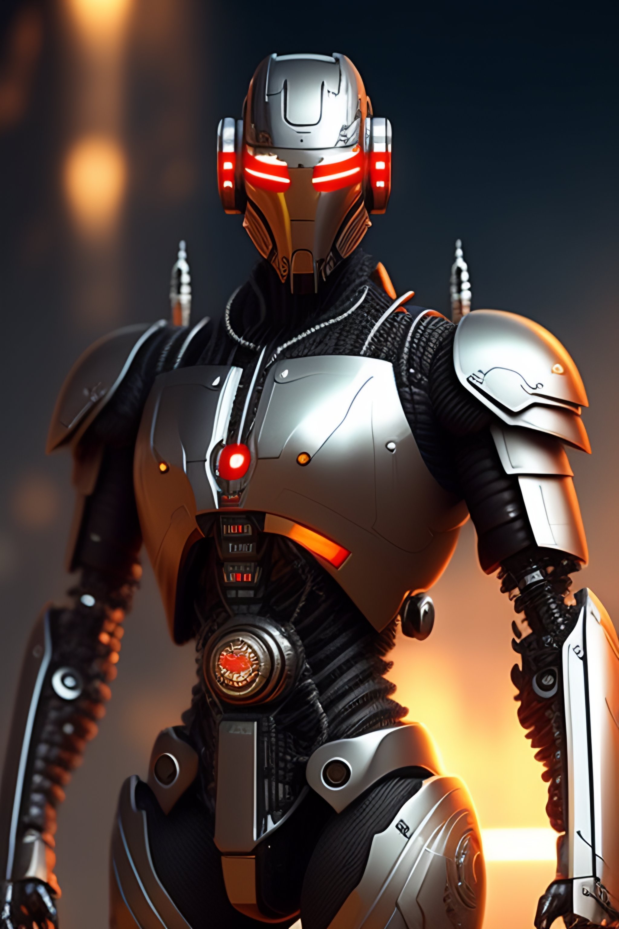 Cyborg with sample mechanisms, human eyes, like general grievous star wars, with robotic mask, four arms, killer robot