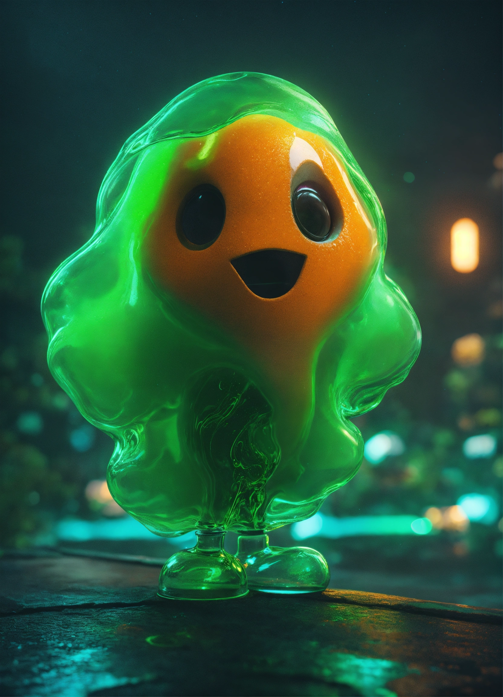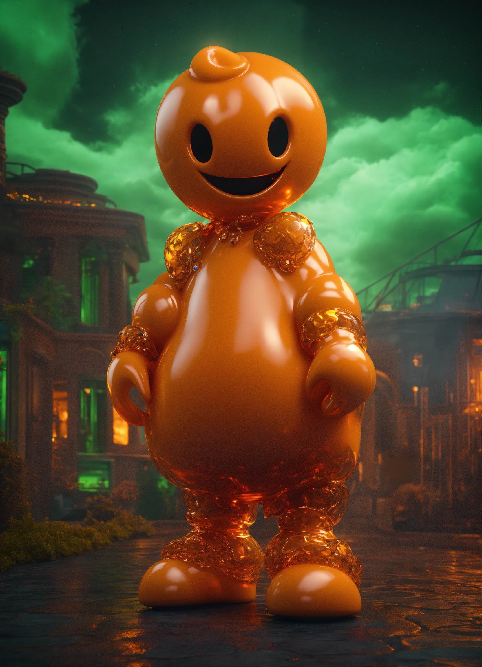 Orange ruby casper the friendly ghost concept, made out of green dark clouds, luxury, futurist, stunning unreal engine render, product photography, 8k, hyper-realistic. surrealism