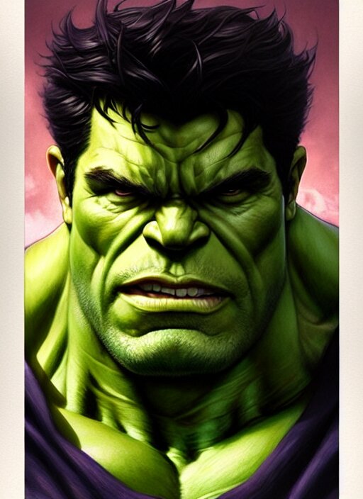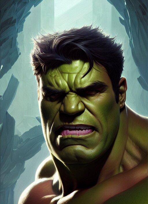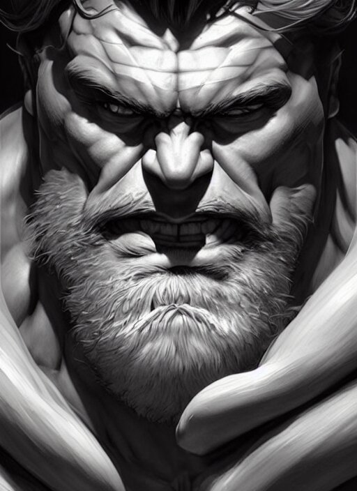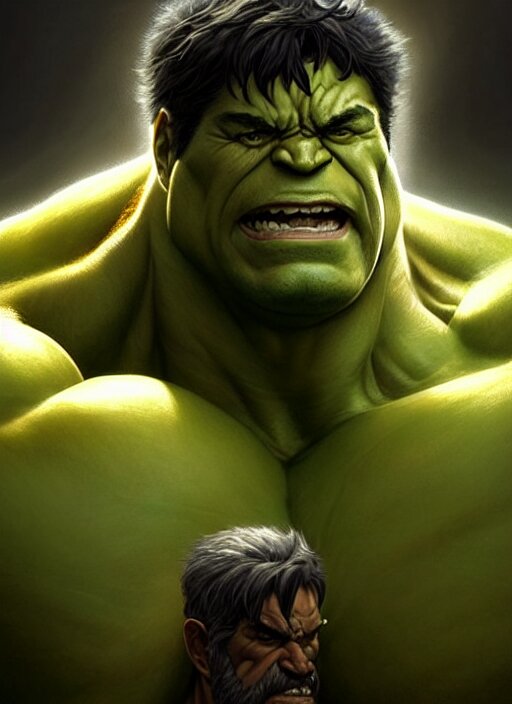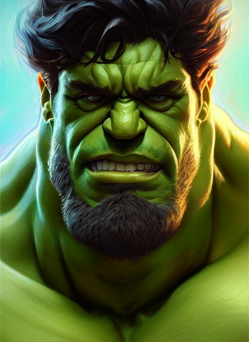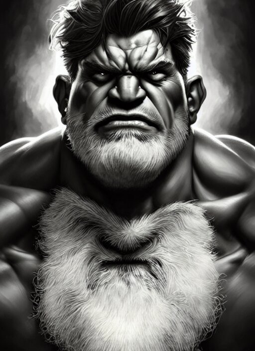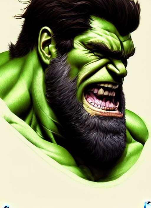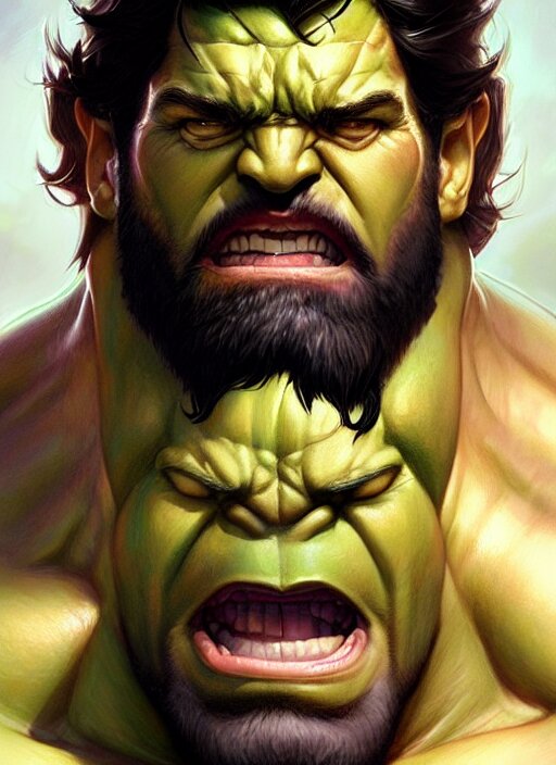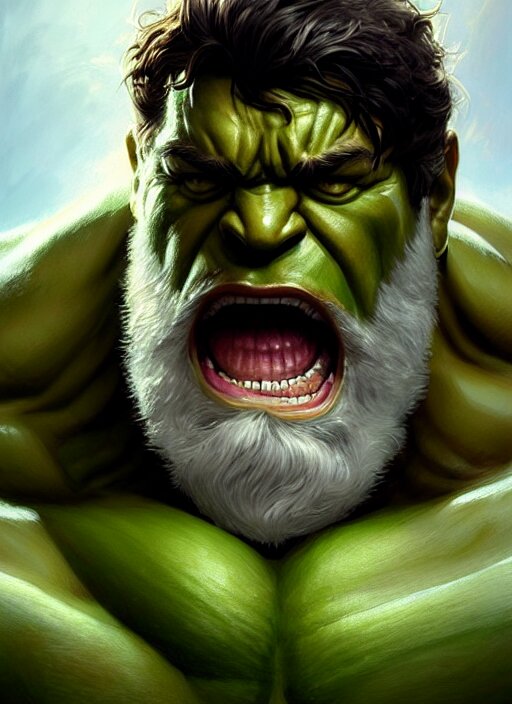 Portrait of the hulk, white beard! d&d, muscular, fantasy, intricate, elegant, highly detailed, digital painting, artstation, concept art, smooth, sharp focus, illustration, art by artgerm and greg rutkowski and alphonse mucha