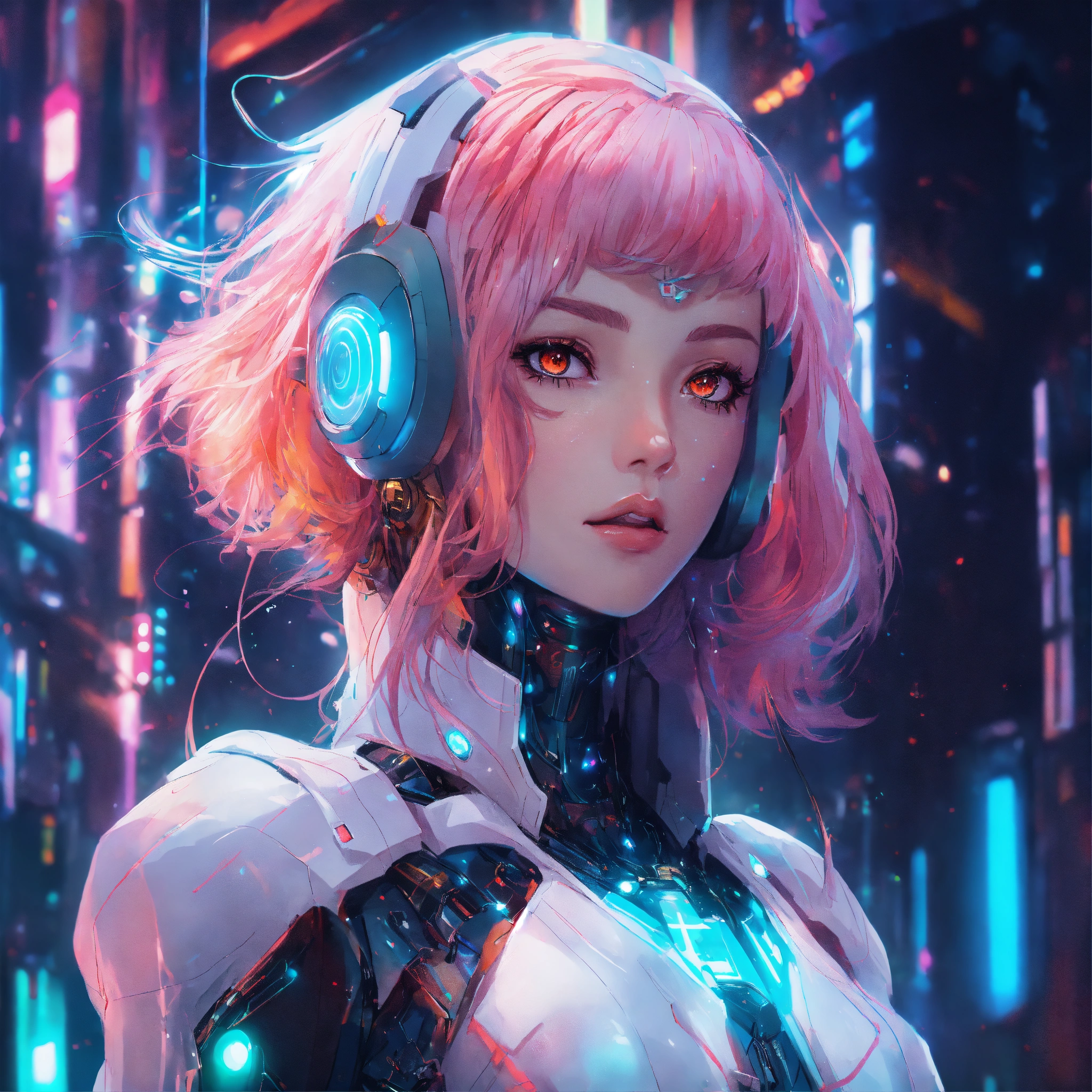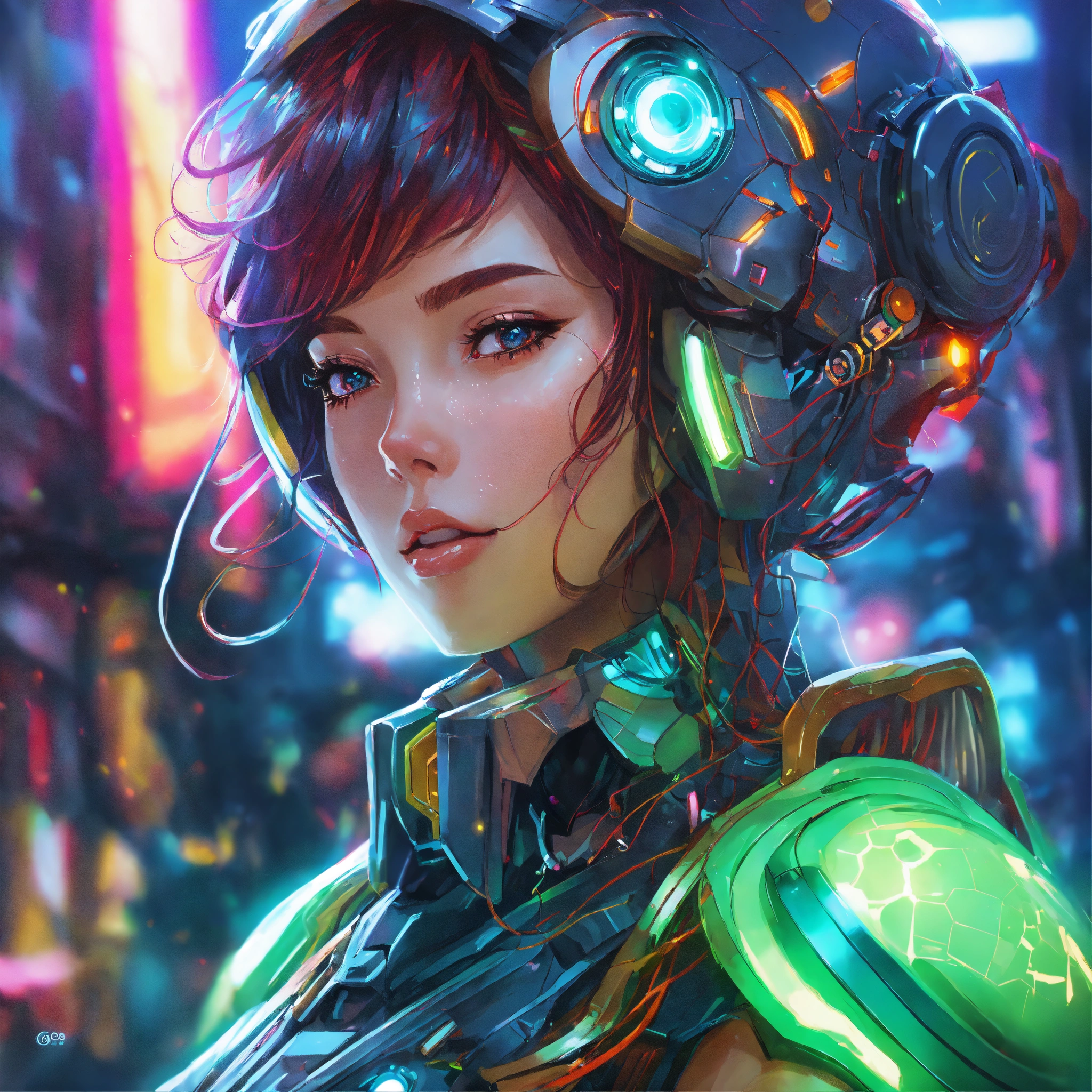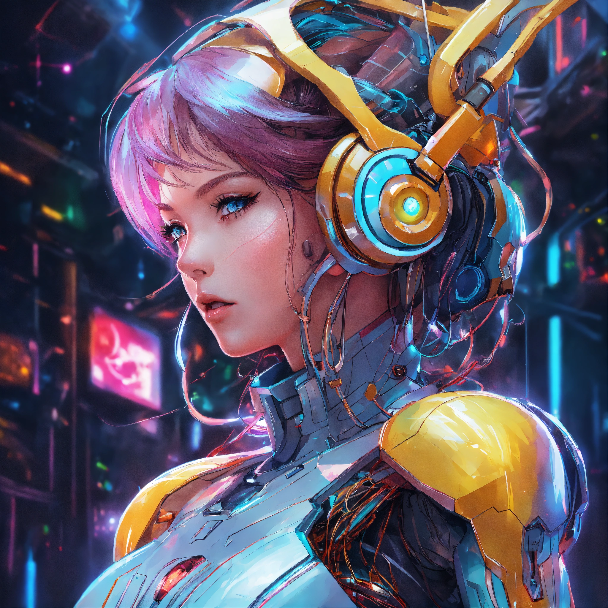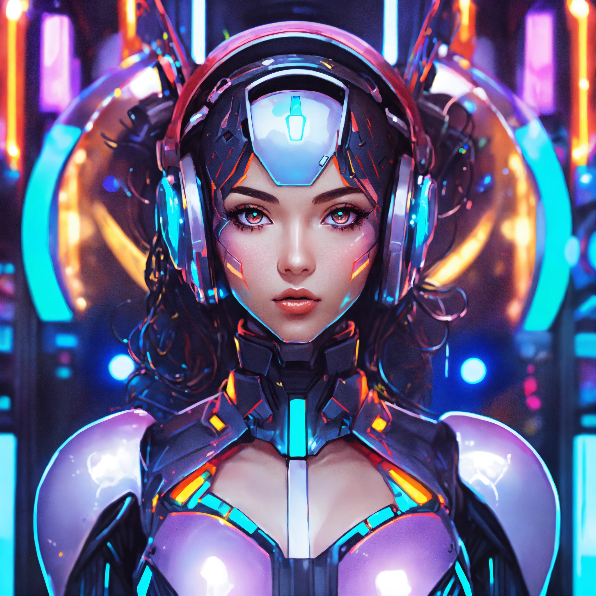 Abstract style anime art of a magical android techno space girl, robotic, primary coloured lights, 8k, stunning intricate details, by artgerm