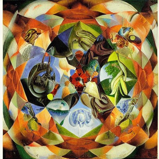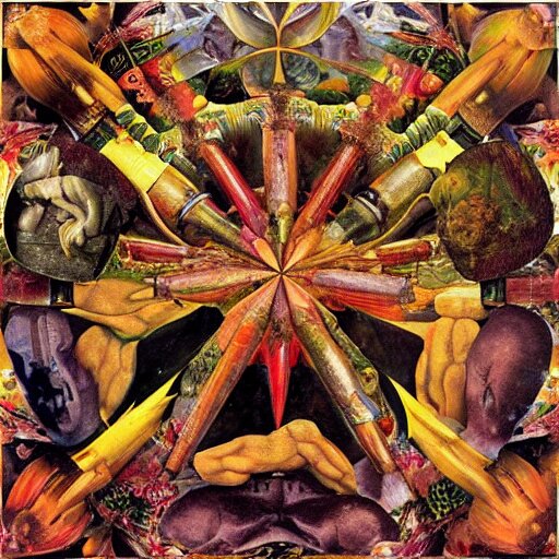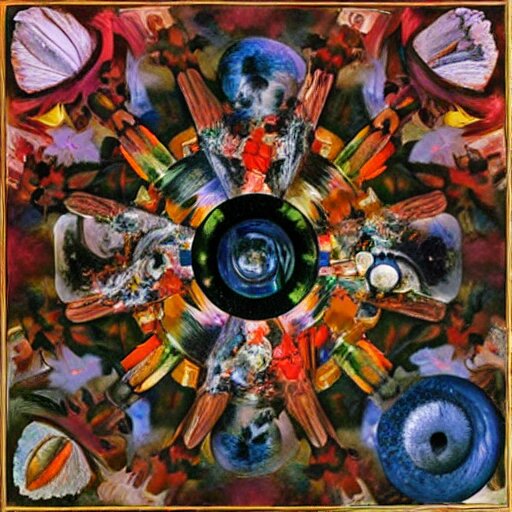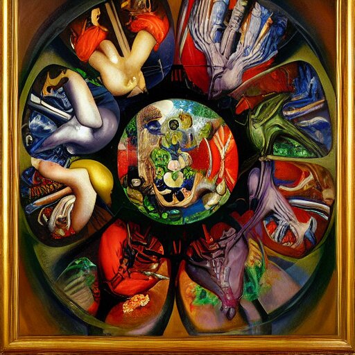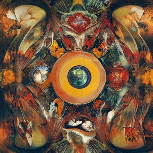An oil painting by arcimboldo, by georgia o keeffe, by botticelli, by giger, by frank frazetta seen through a kaleidoscope, kaleidoscope, broken, nerve system, medical