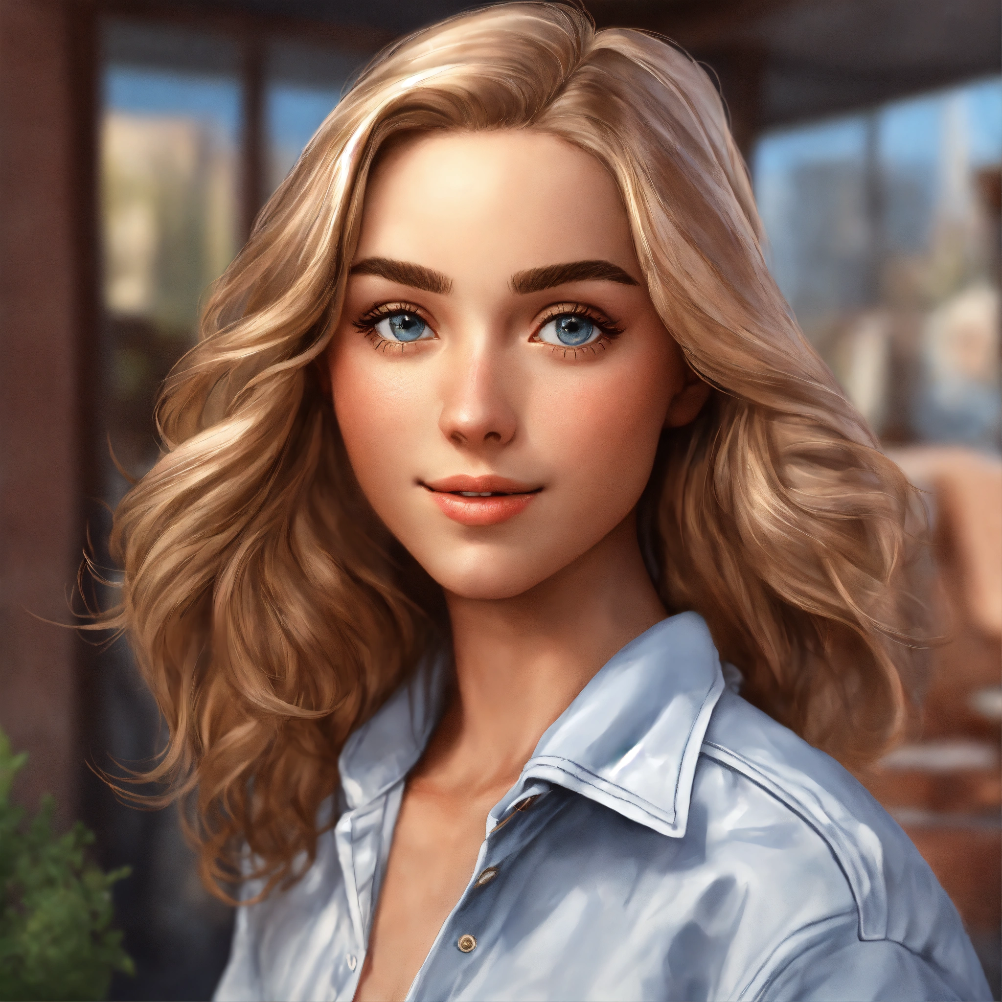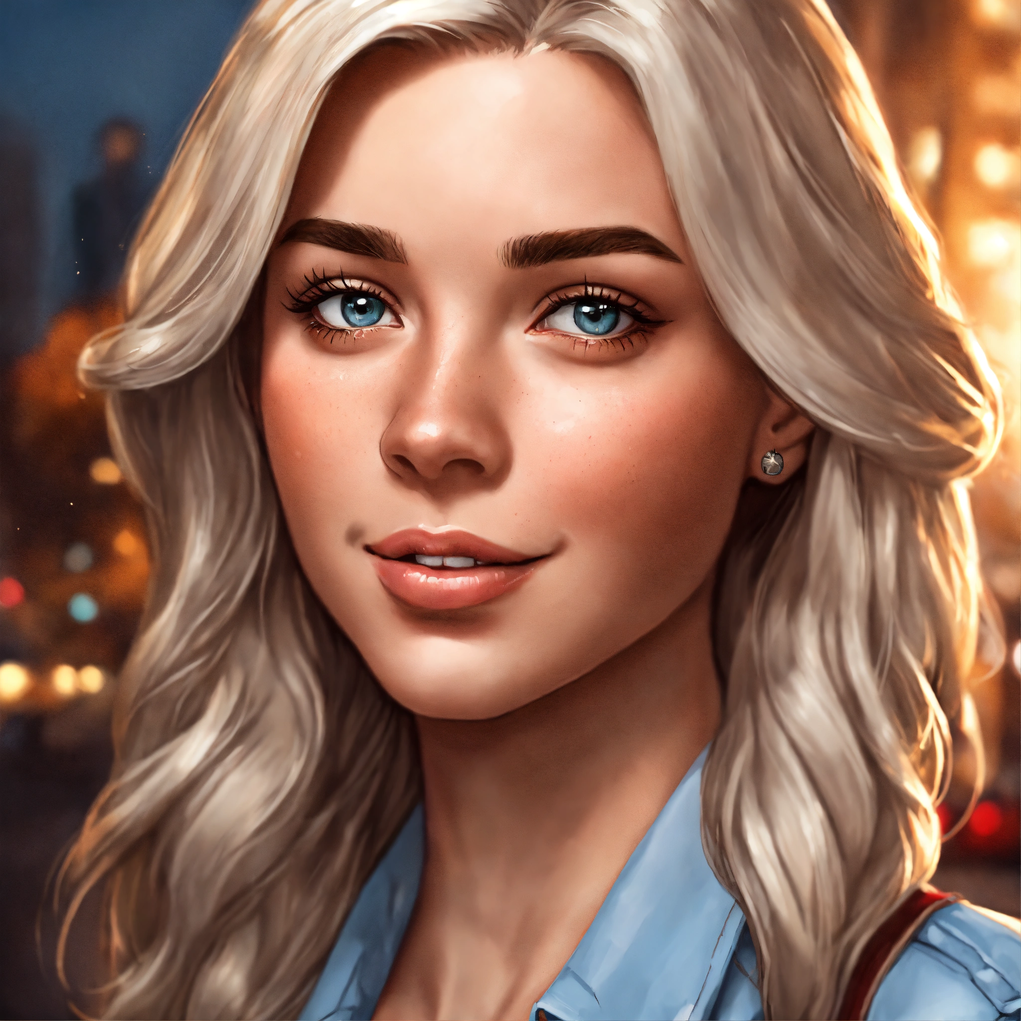 Cartoon realistic comic portrait white american girl