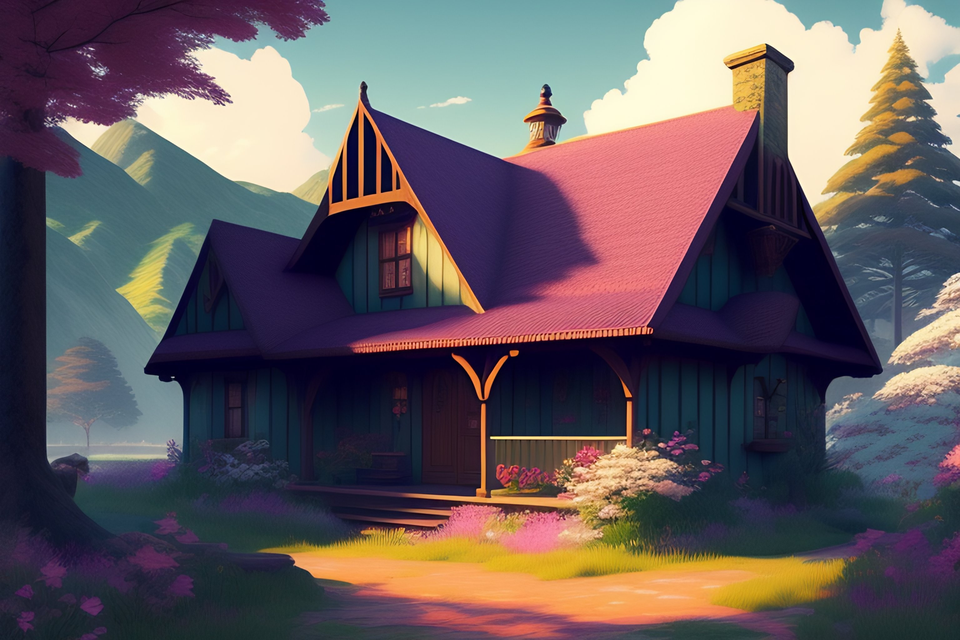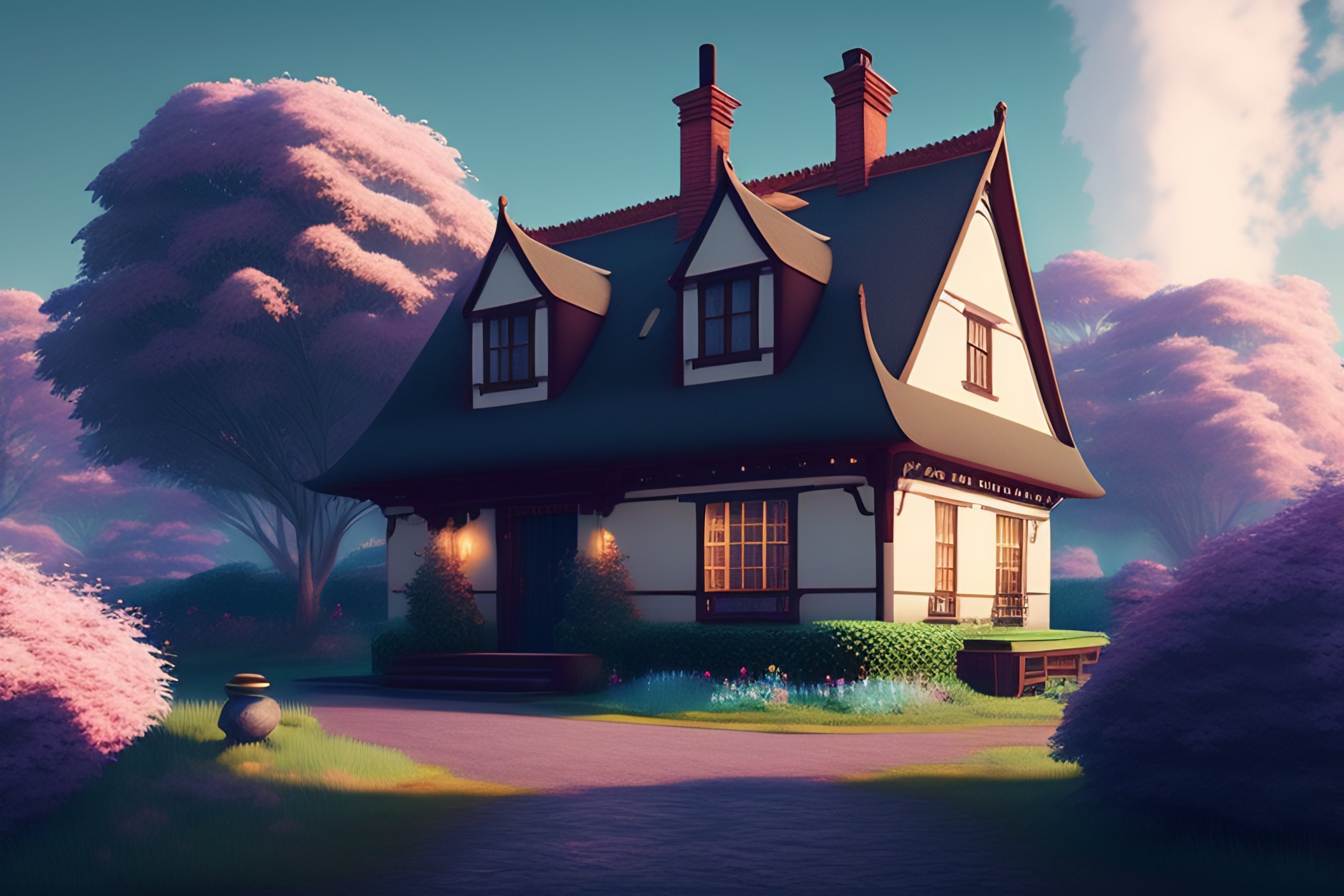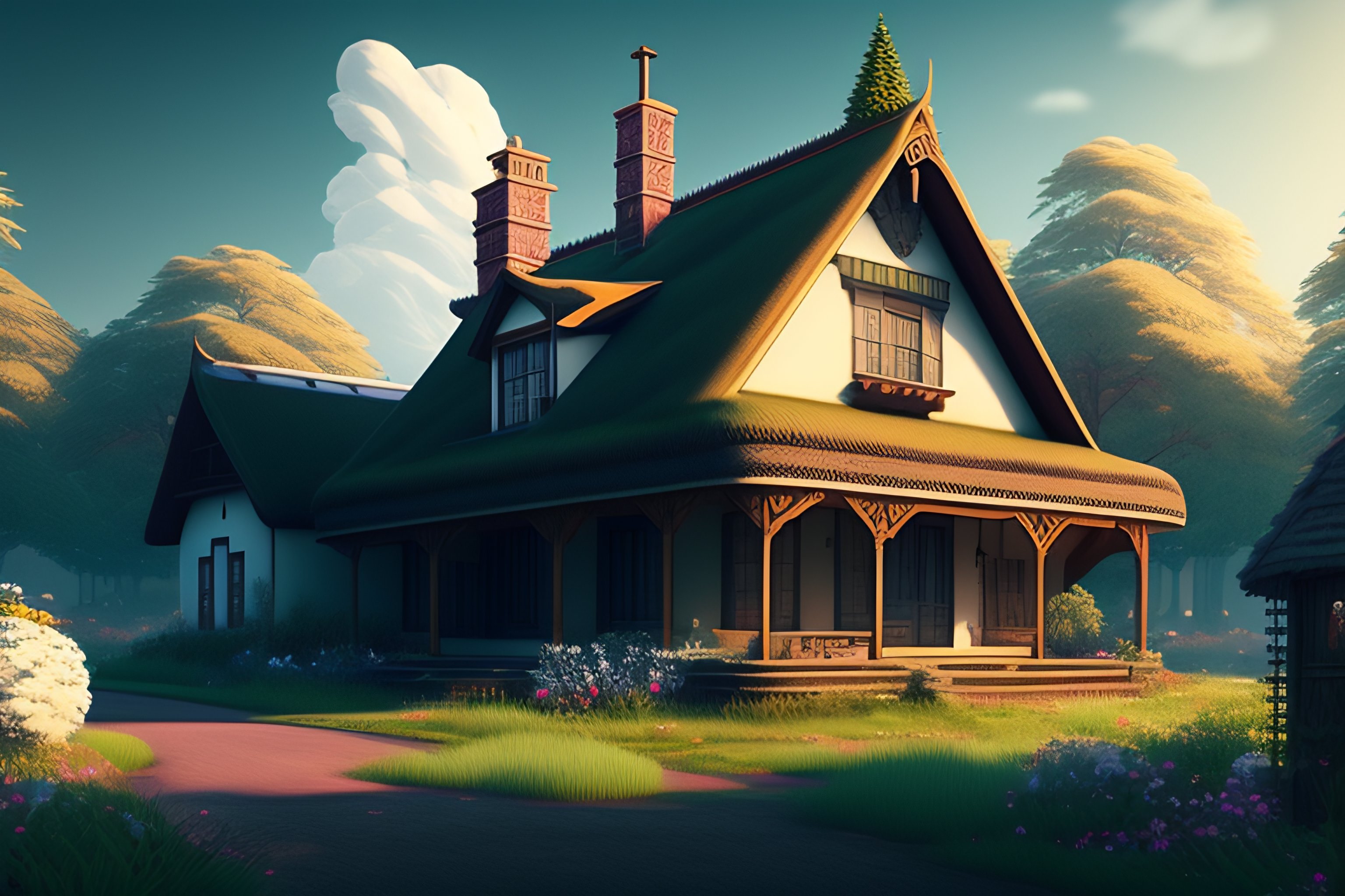 A breathtaking country cottage for a peaceful mind, vintage, monochromatic, smoke, maximalism hyper-detailed anime, retro, vaporwave vibes, lofi retro vibes, by matsumoto taiyo, by irakli nadar, --ar 3:2 --v 4