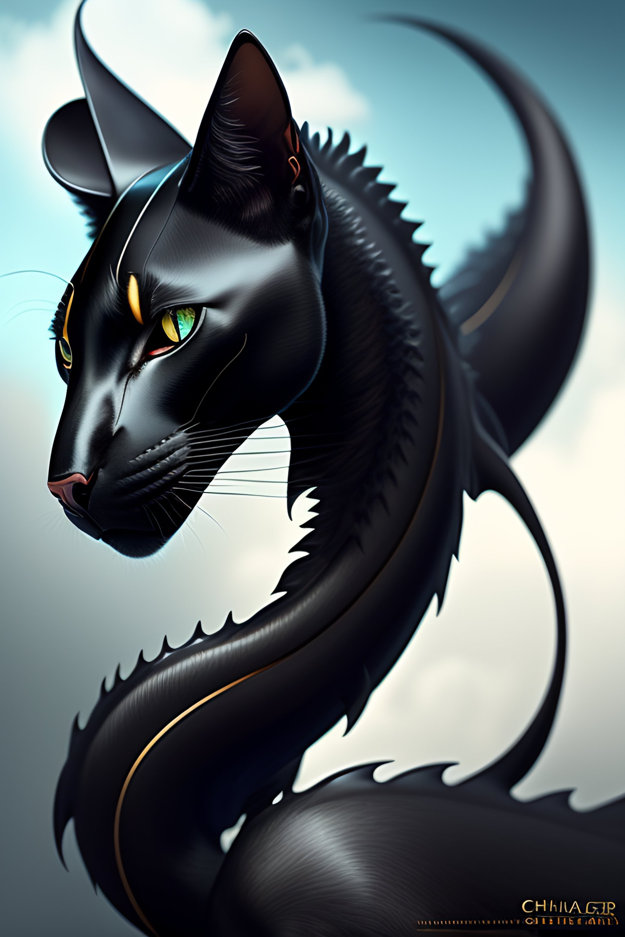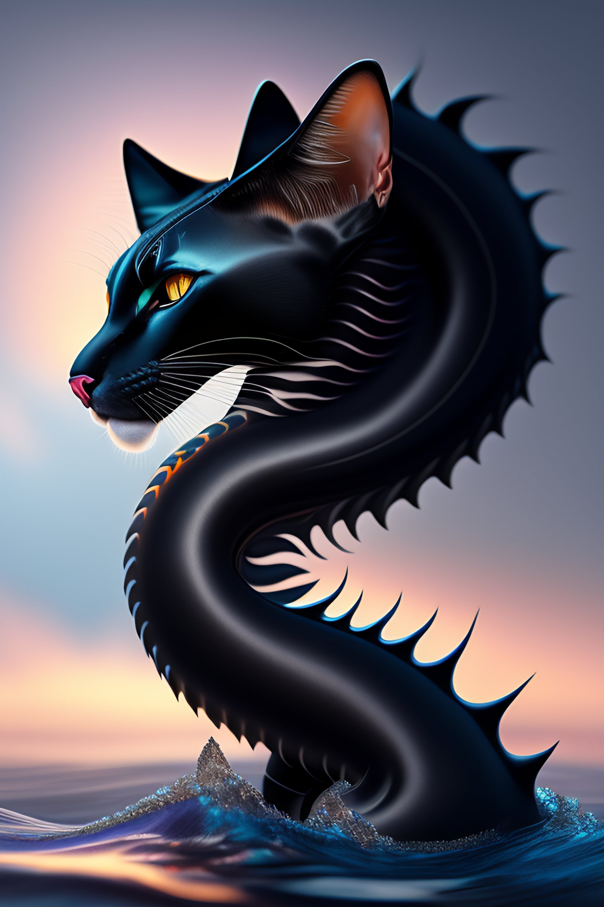 Chimera black cat sea dragon, digital art, digital painting, hyper sharp focus, illustration, ultra realistichighly detailed, digital painting, sharp focus, illustration, ultra realistic, intricate, hard focus, artstation, highly detailed
