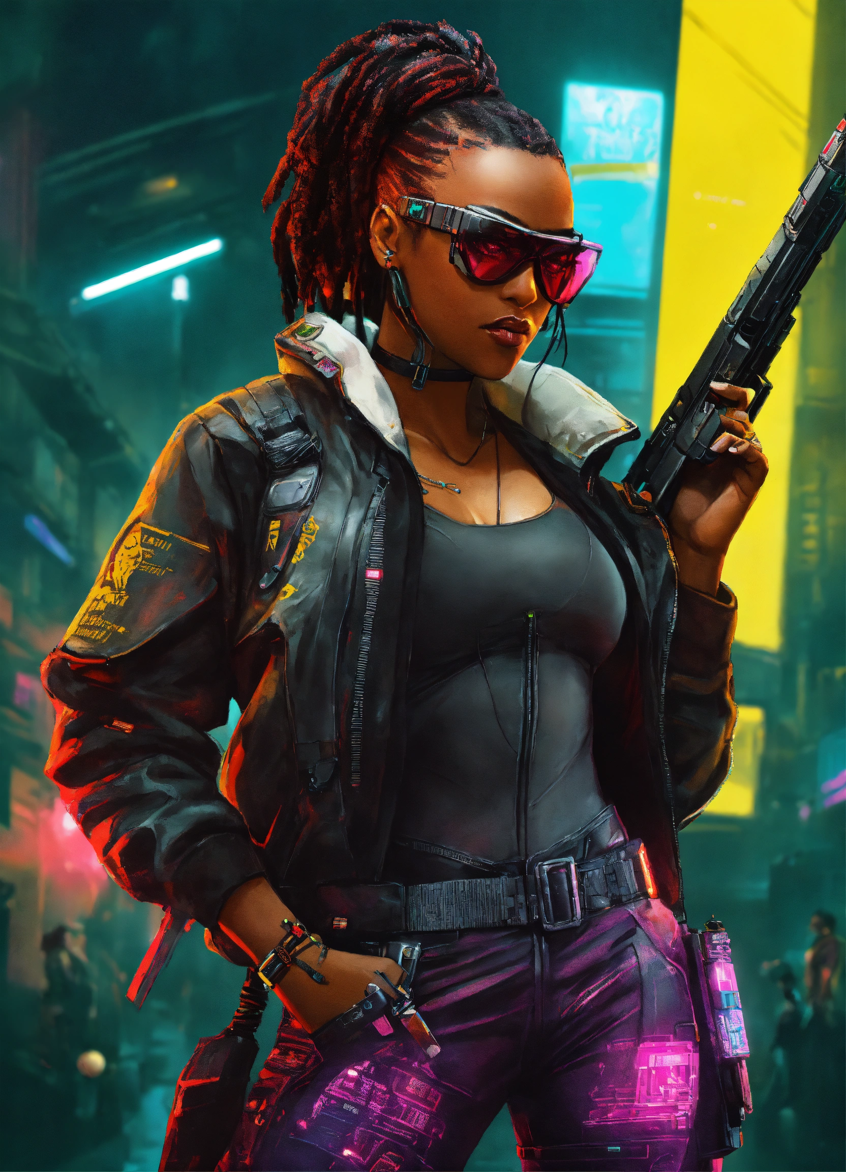 big and tough cyberpunk 2077 poster art style