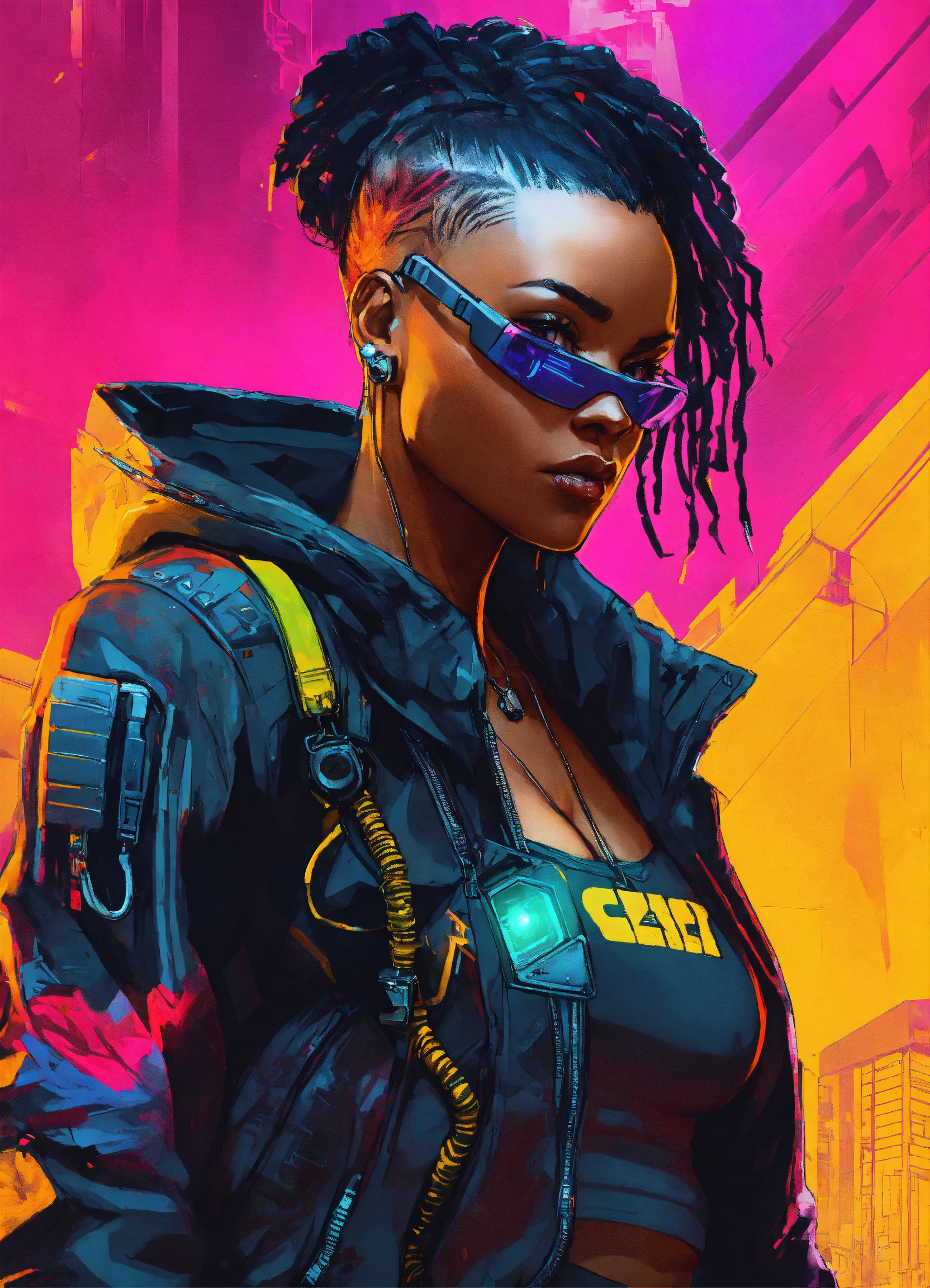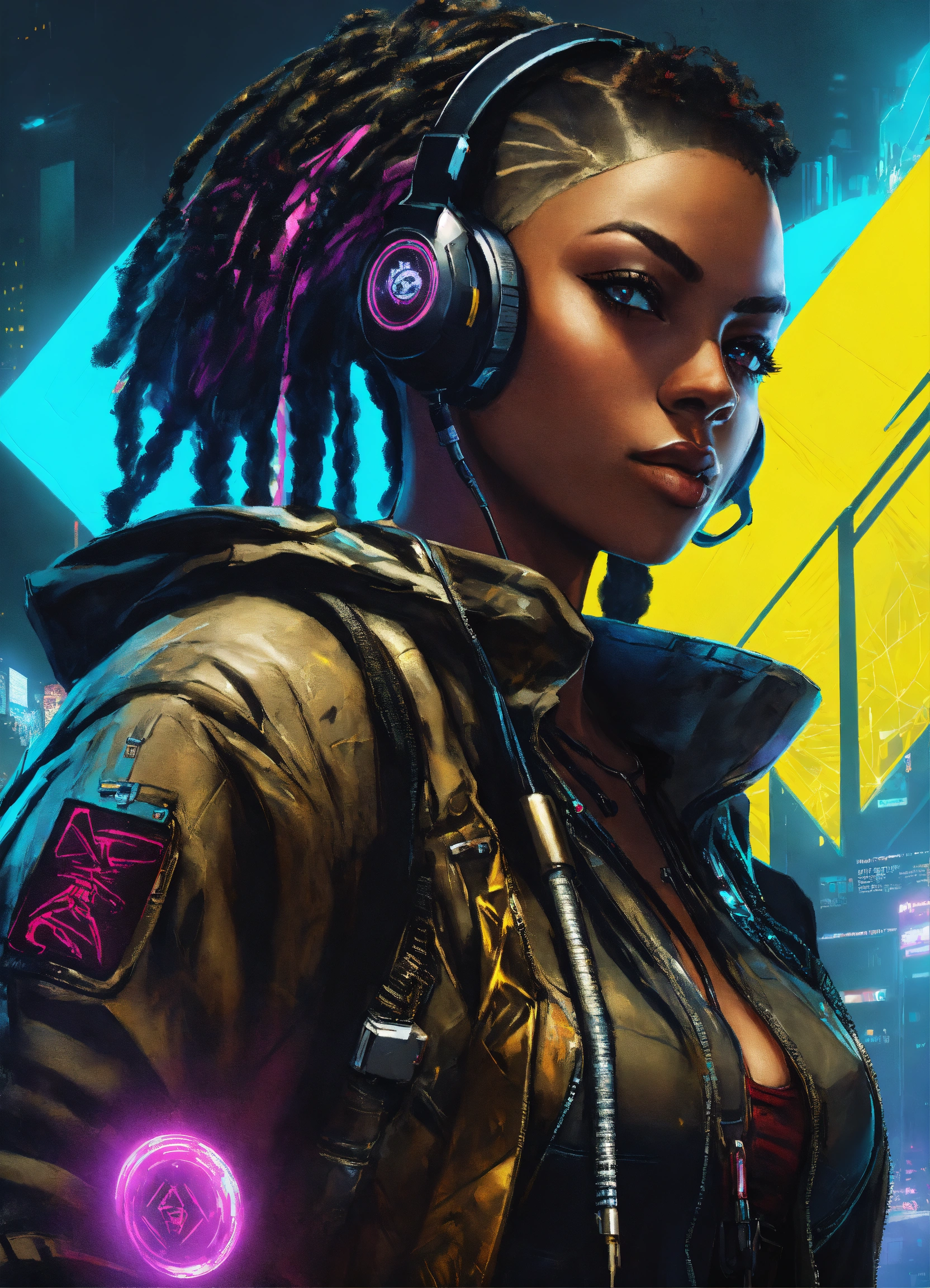 African american female cyberpunk hacker