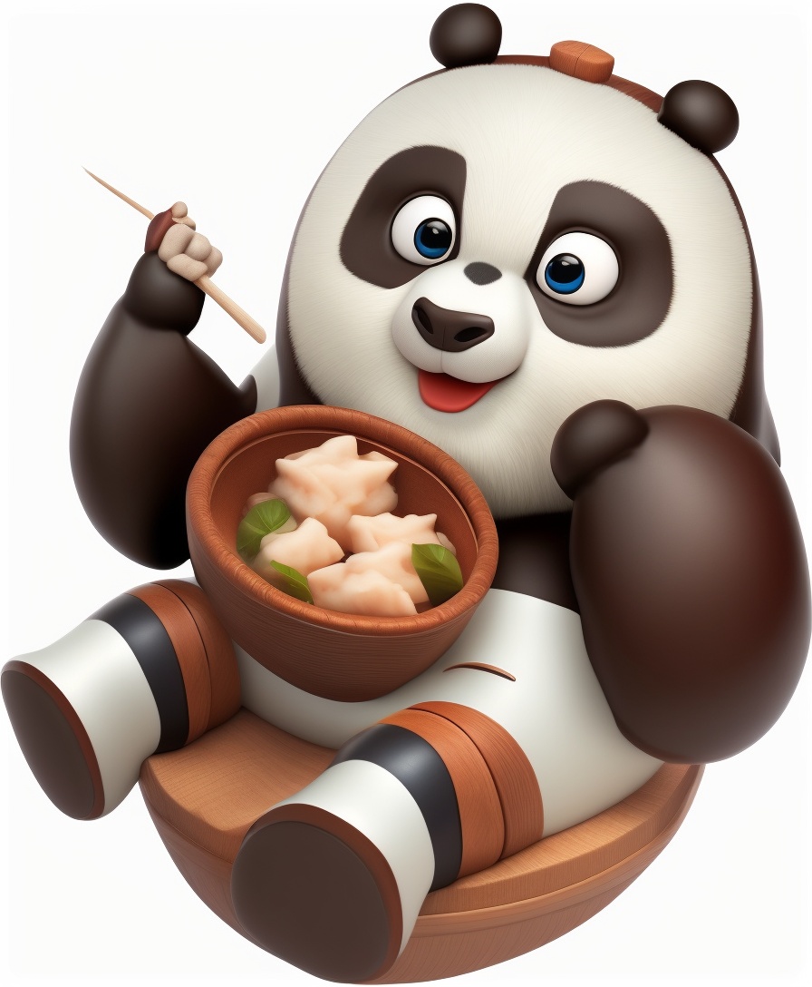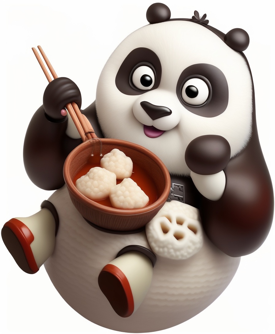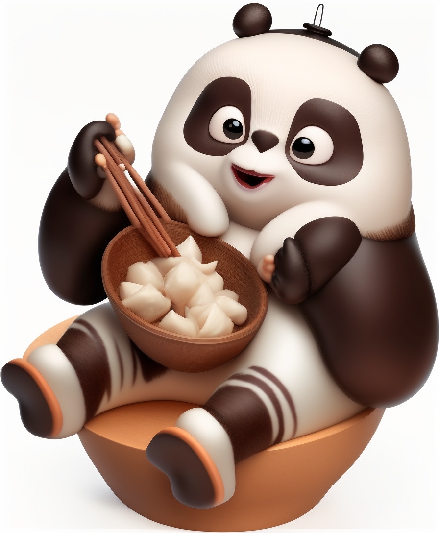 Kung fu panda po, lying on his back eating dumplings, 3d toy figure, funko pop, render, high details, two legs