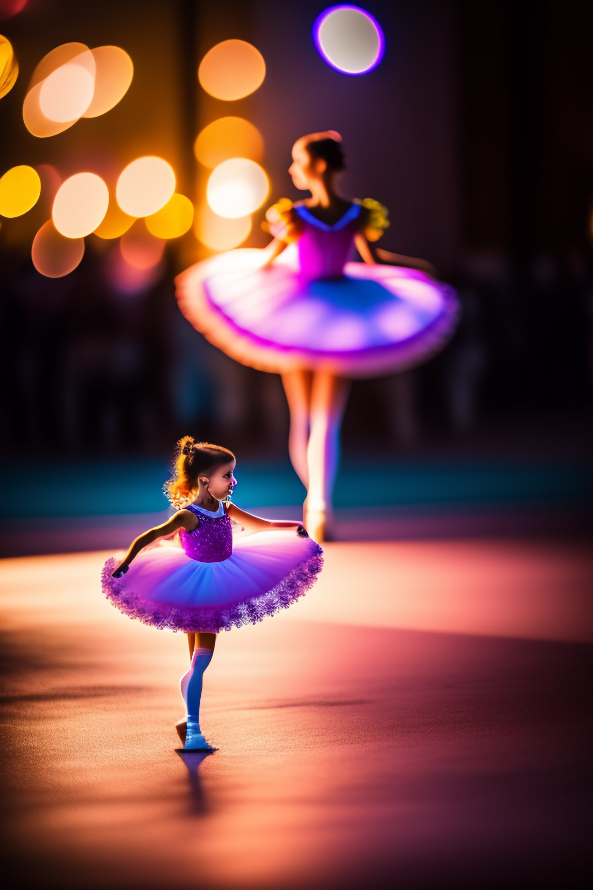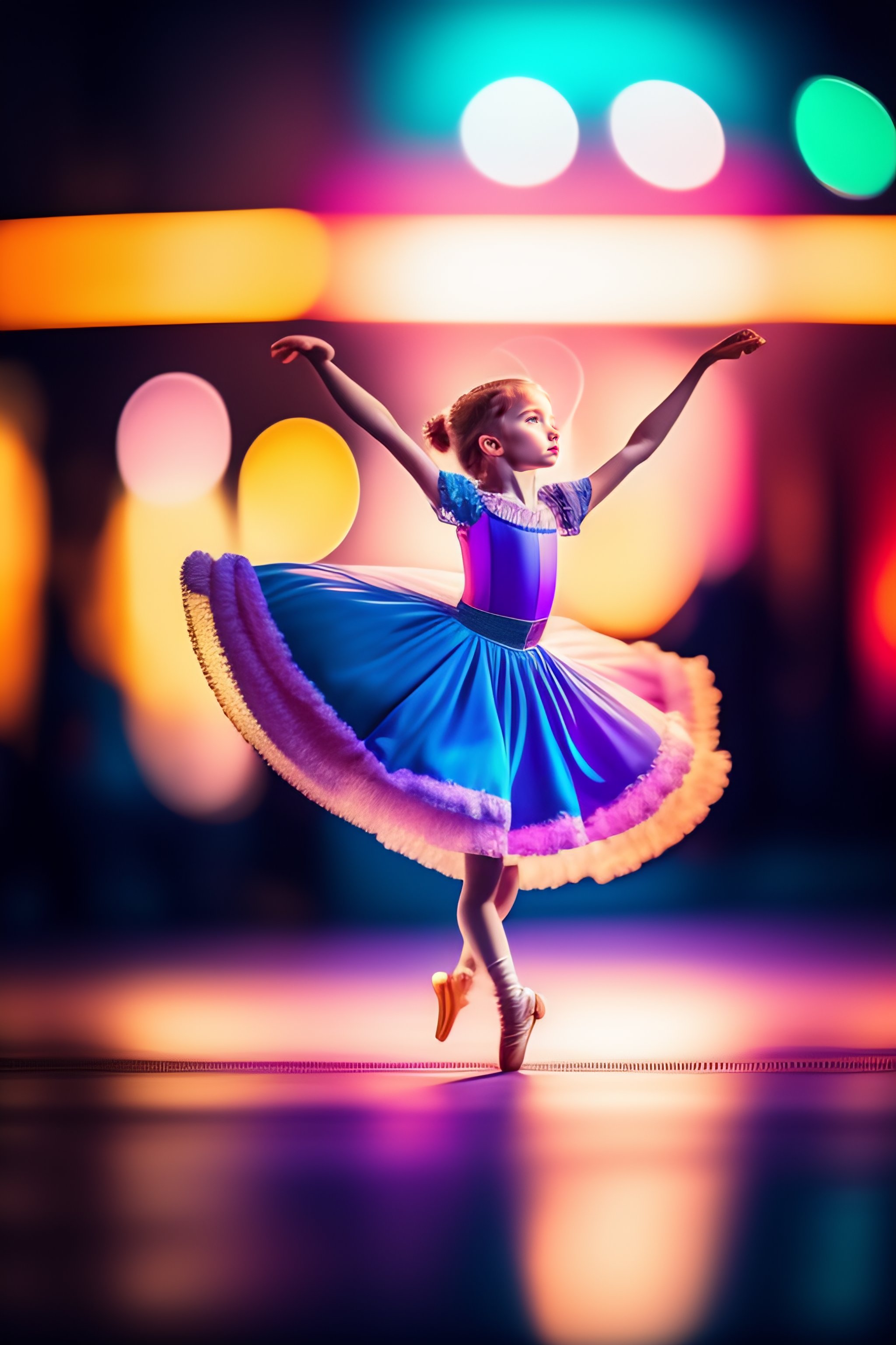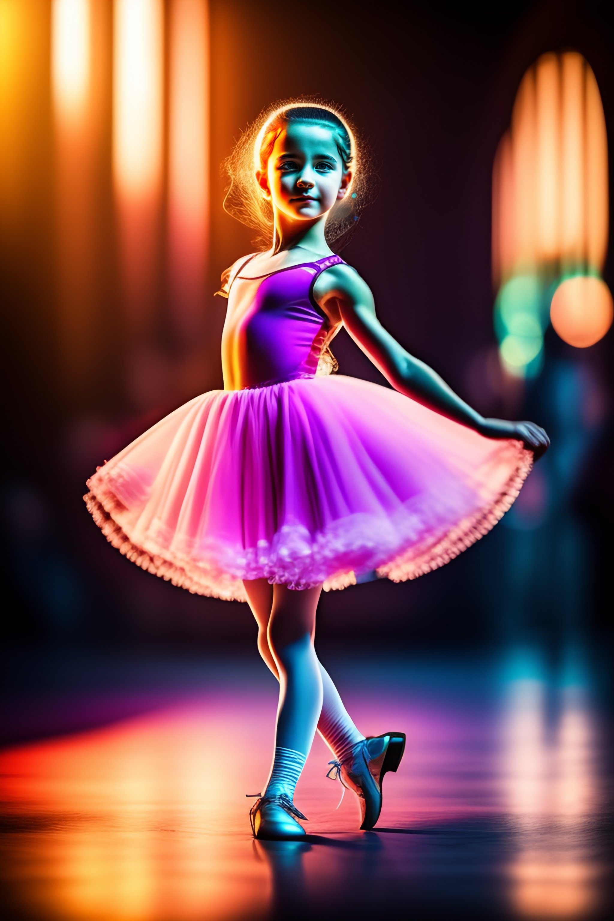 Young balerina dancing, detailed, 35mm, f/2.8, 4k, photojournalism, busy background, volumetric lighting, art photography, real colors, desaturated