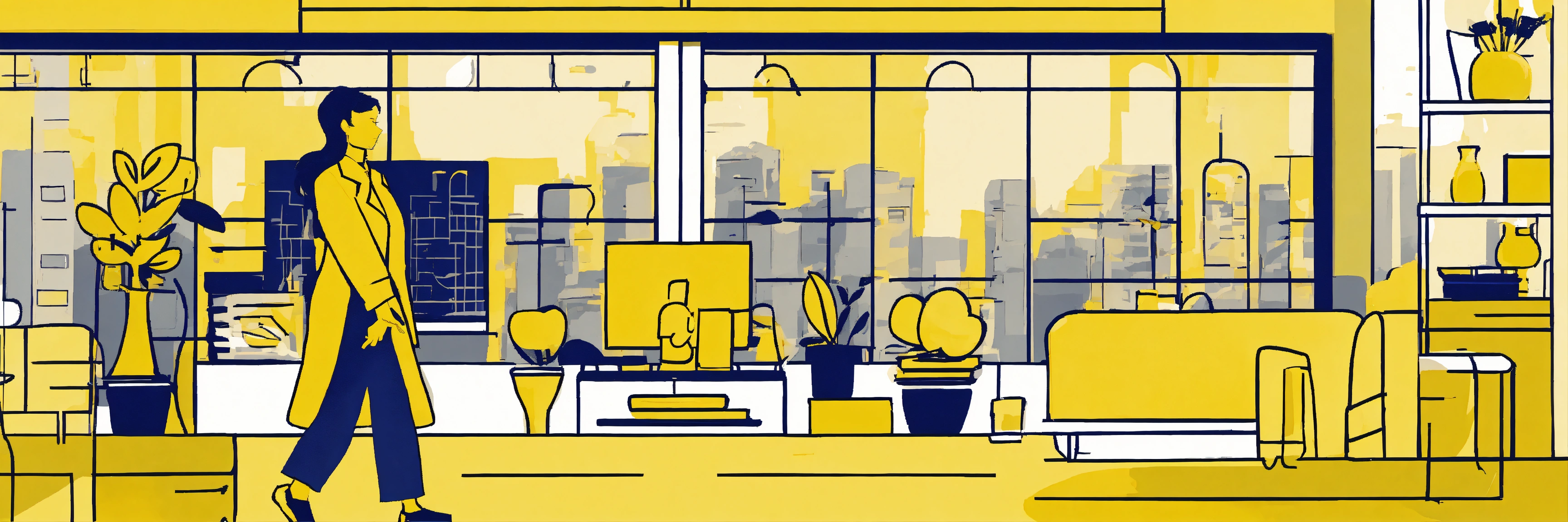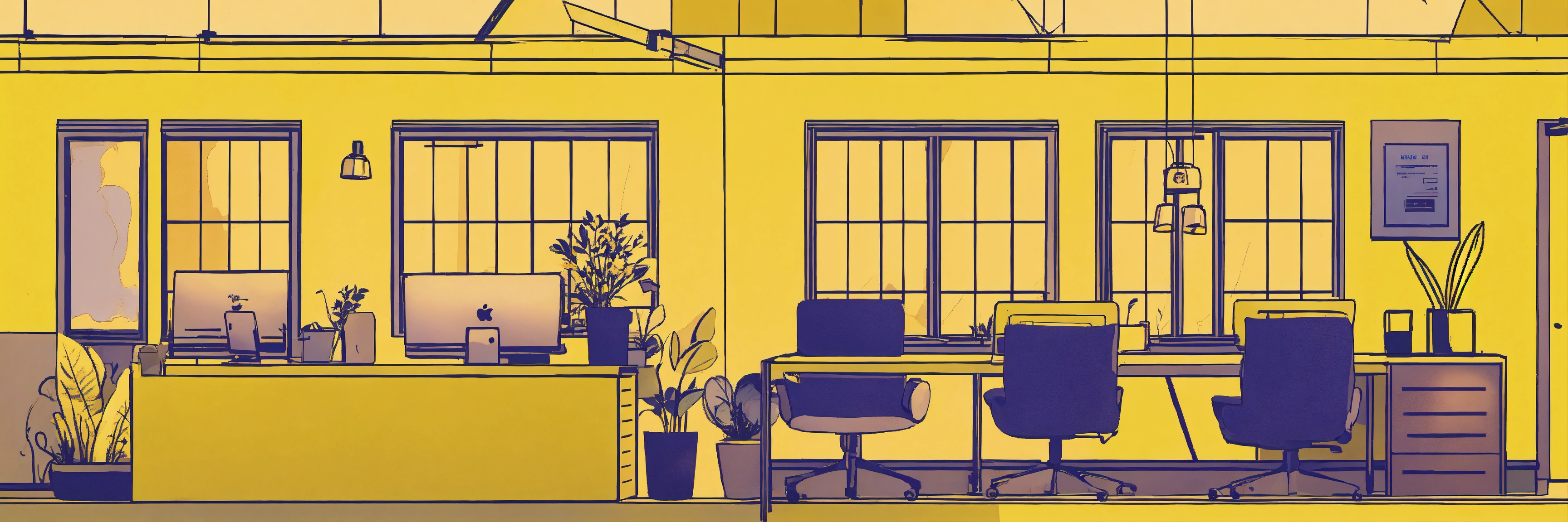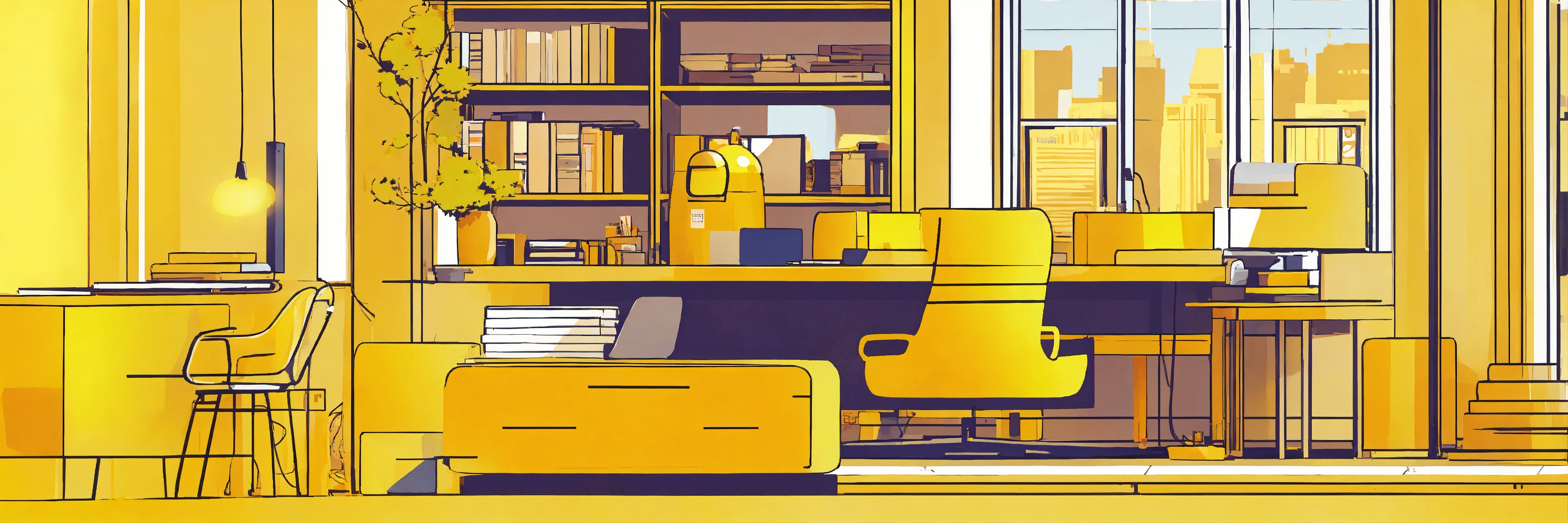 Image for the main page of the job search site, in yellow tones, colors, in yellow tones, colors, illustration, office, comfort, work from home