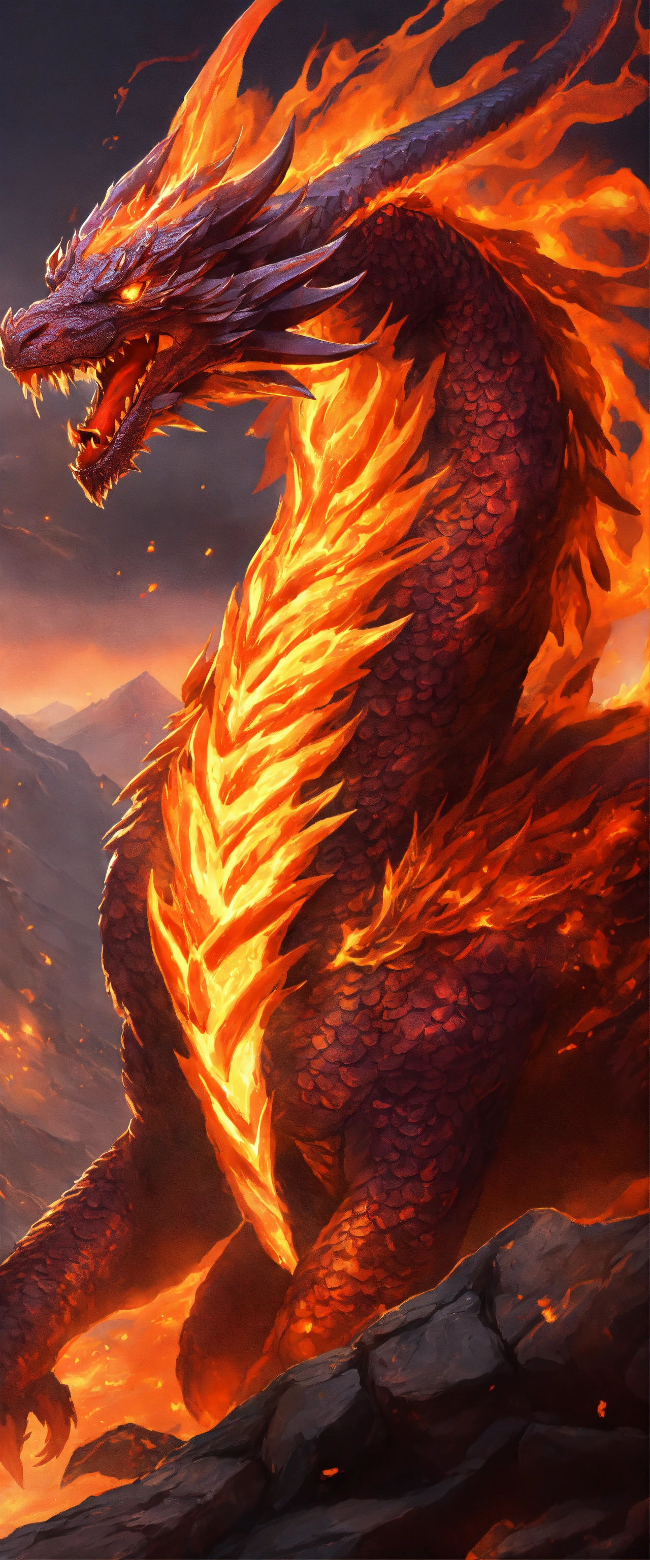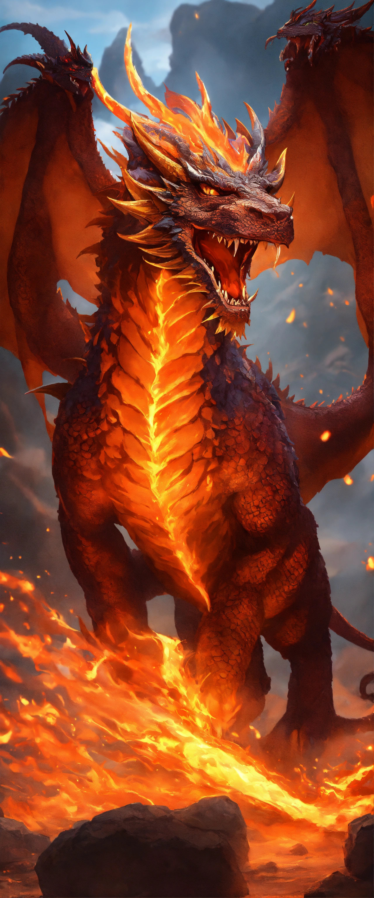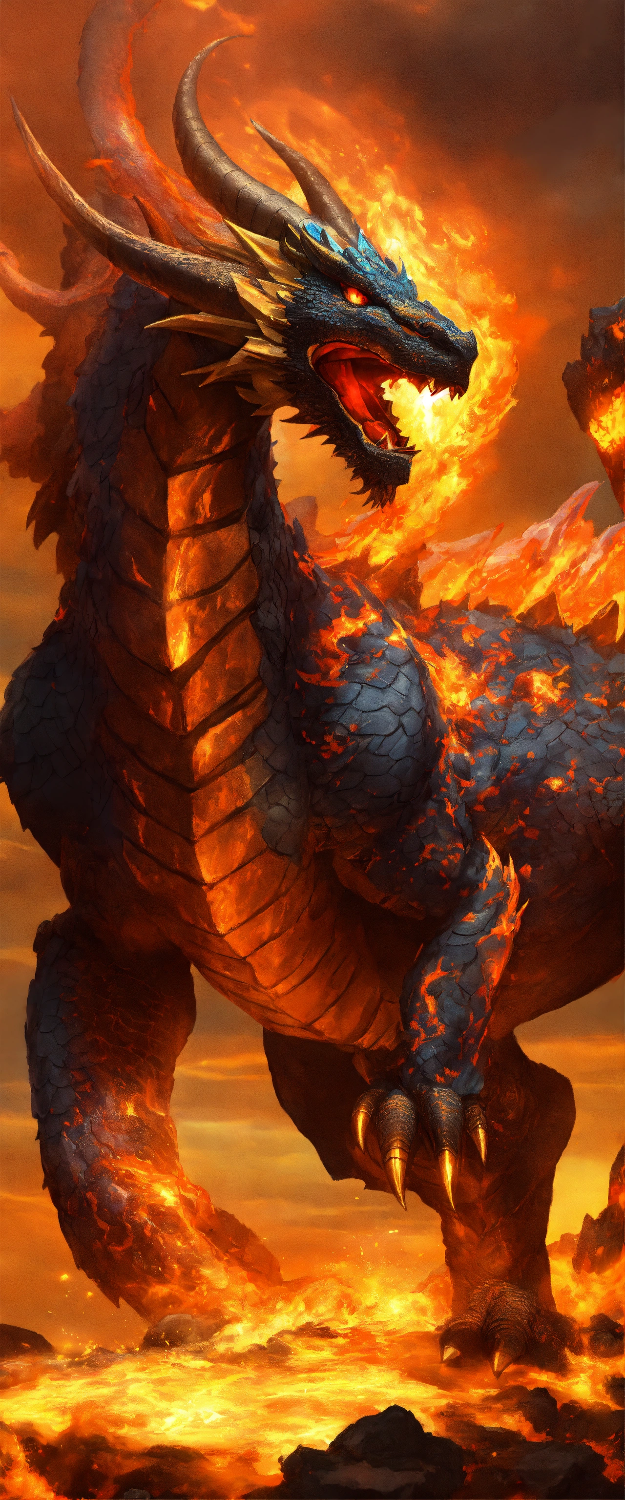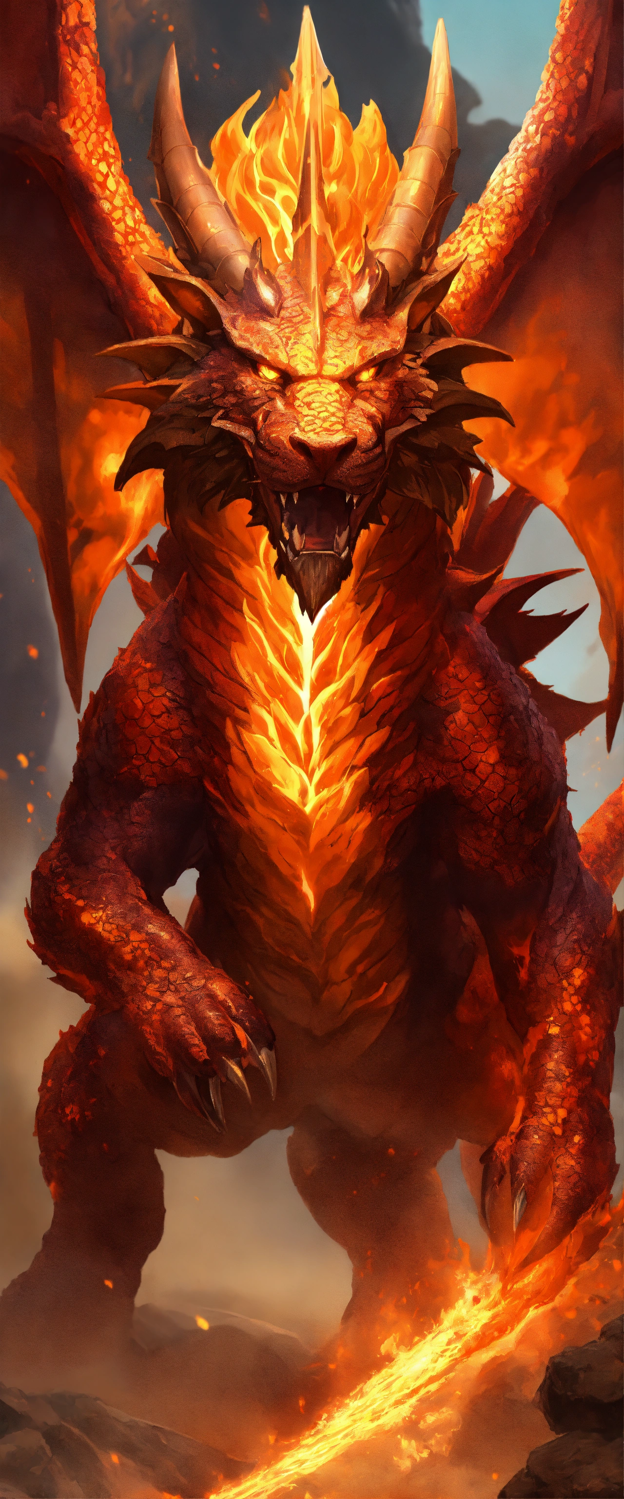 Lavabreath is an ancient war dragon with a grand demeanor fusion with a god lion with molten lava patterns