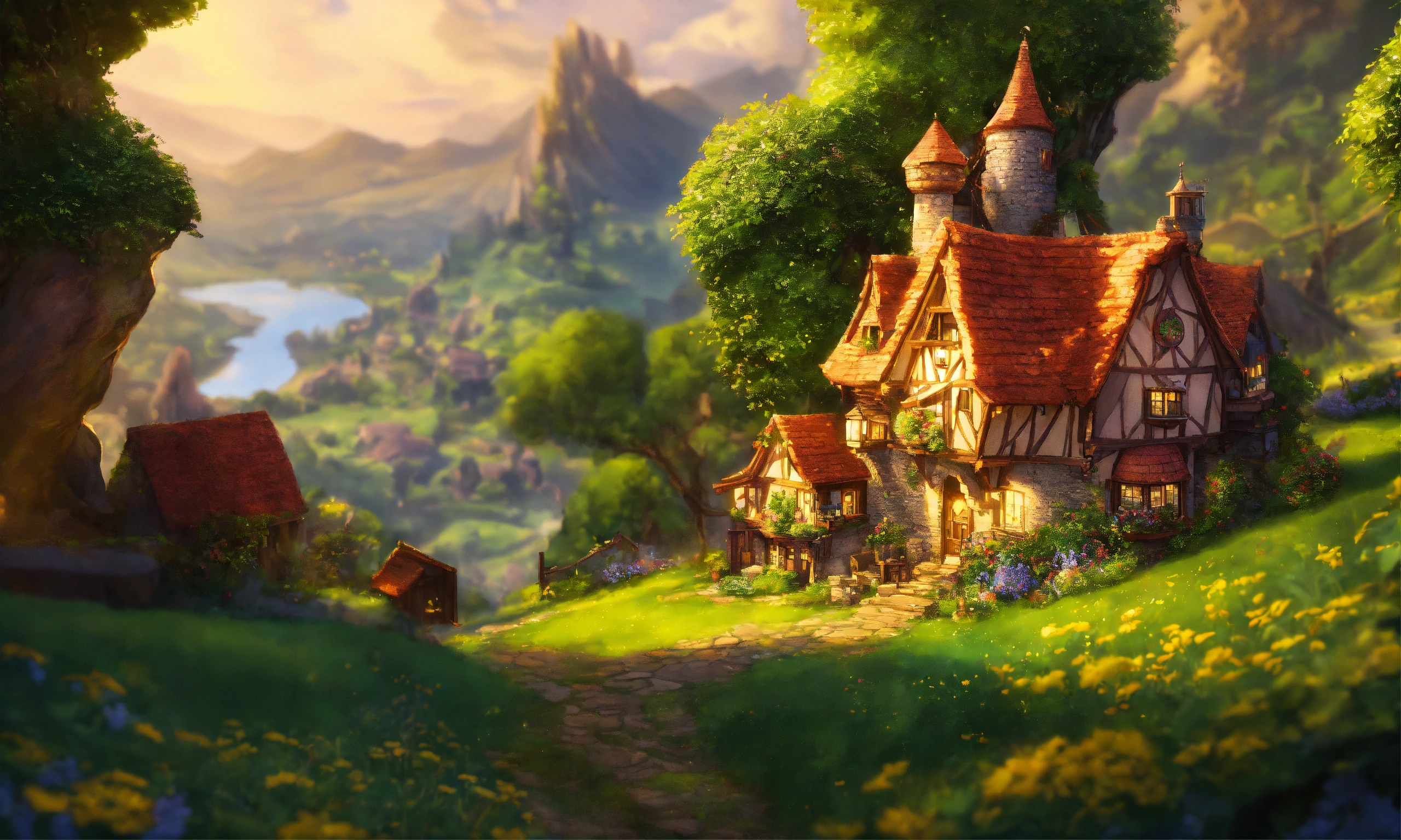 Epic shot of very detailed zauberer von oz, fairytale, ultra cozy and inviting, ultra cute little photorealistic, digital painting, sharp focus, ultra cozy and inviting, wish to be there. very detailed, arty, should rank high on youtube for a dream trip.