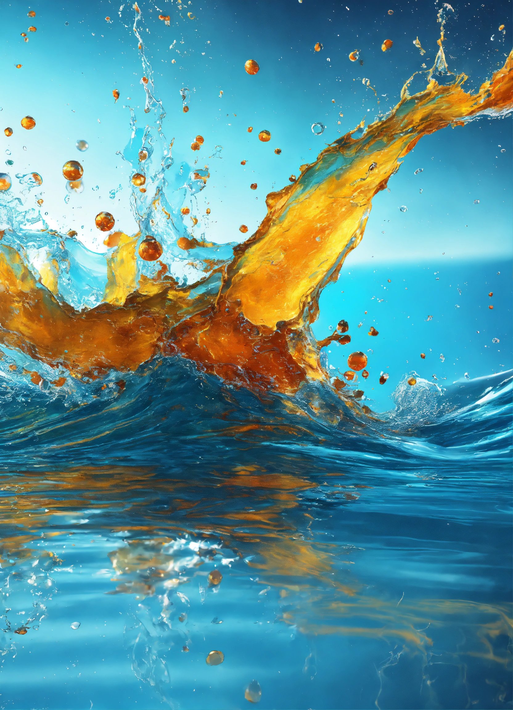A background image with an abstract, futuristic design representing flavor characteristics, strong water splash.