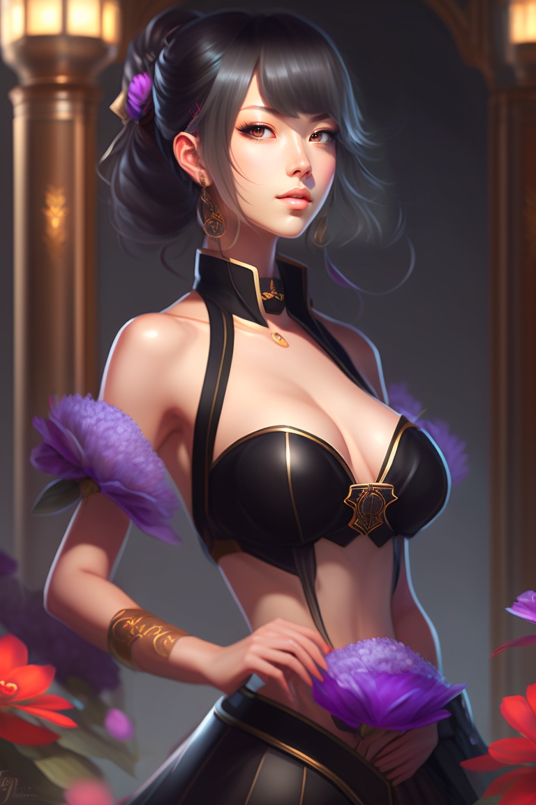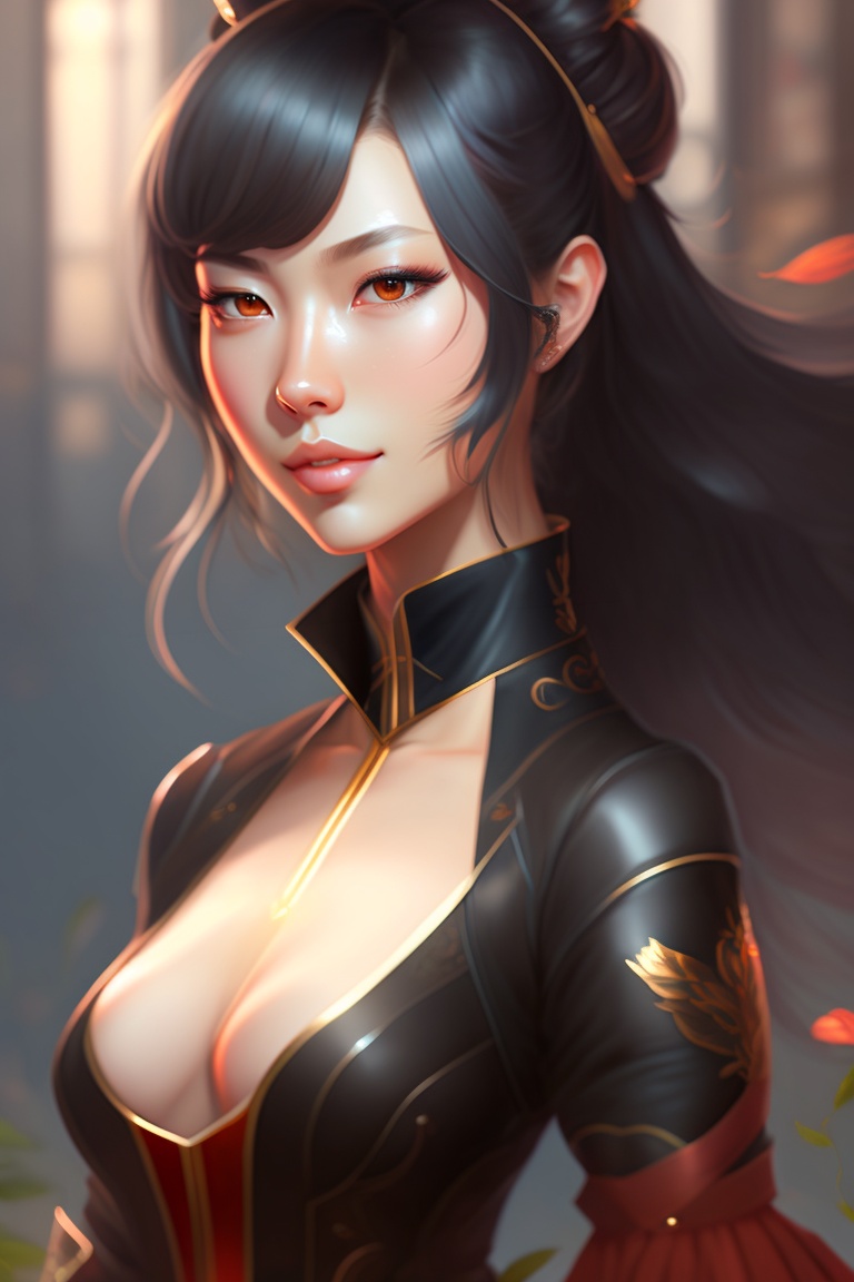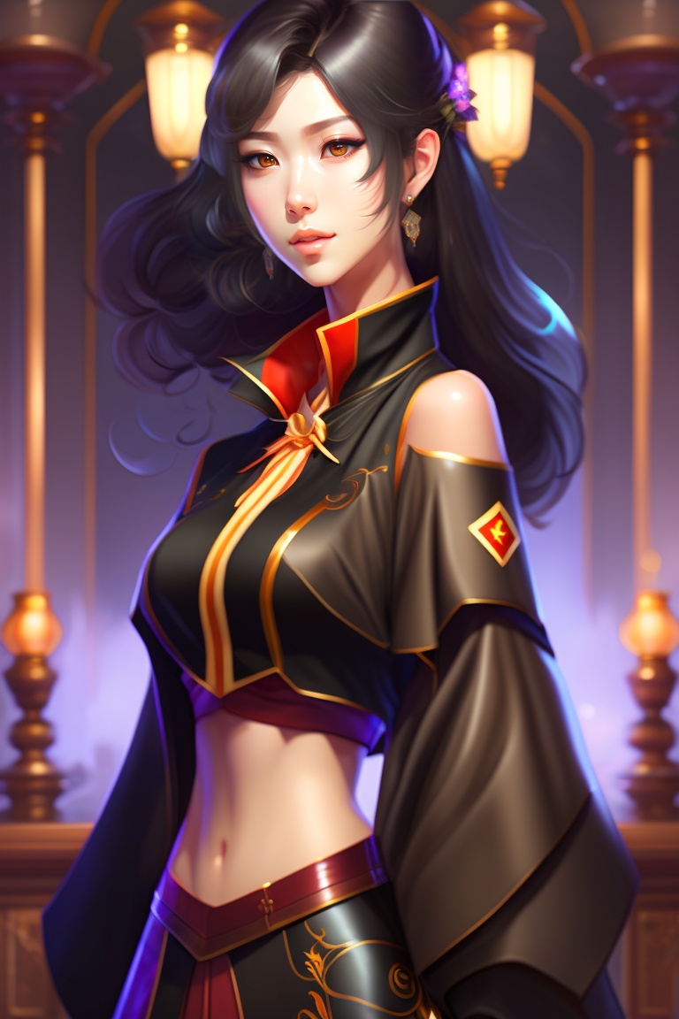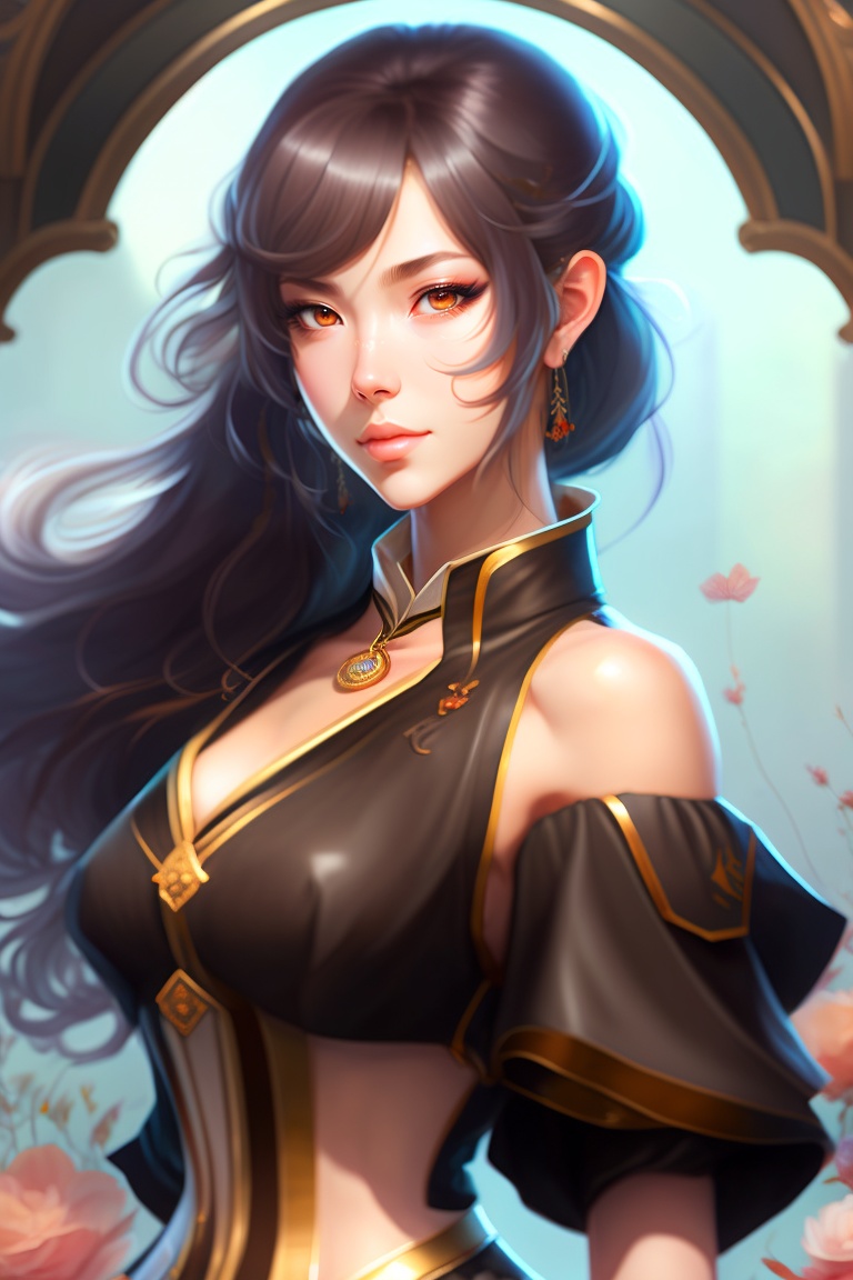 Beautiful anime girl, hourglass slim figure, techwear hakama, black hair, body portrait, slight smile, highly detailed, digital painting, artstation, concept art, sharp focus, illustration, art by wlop and greg rutkowski and alphonse mucha and artgerm