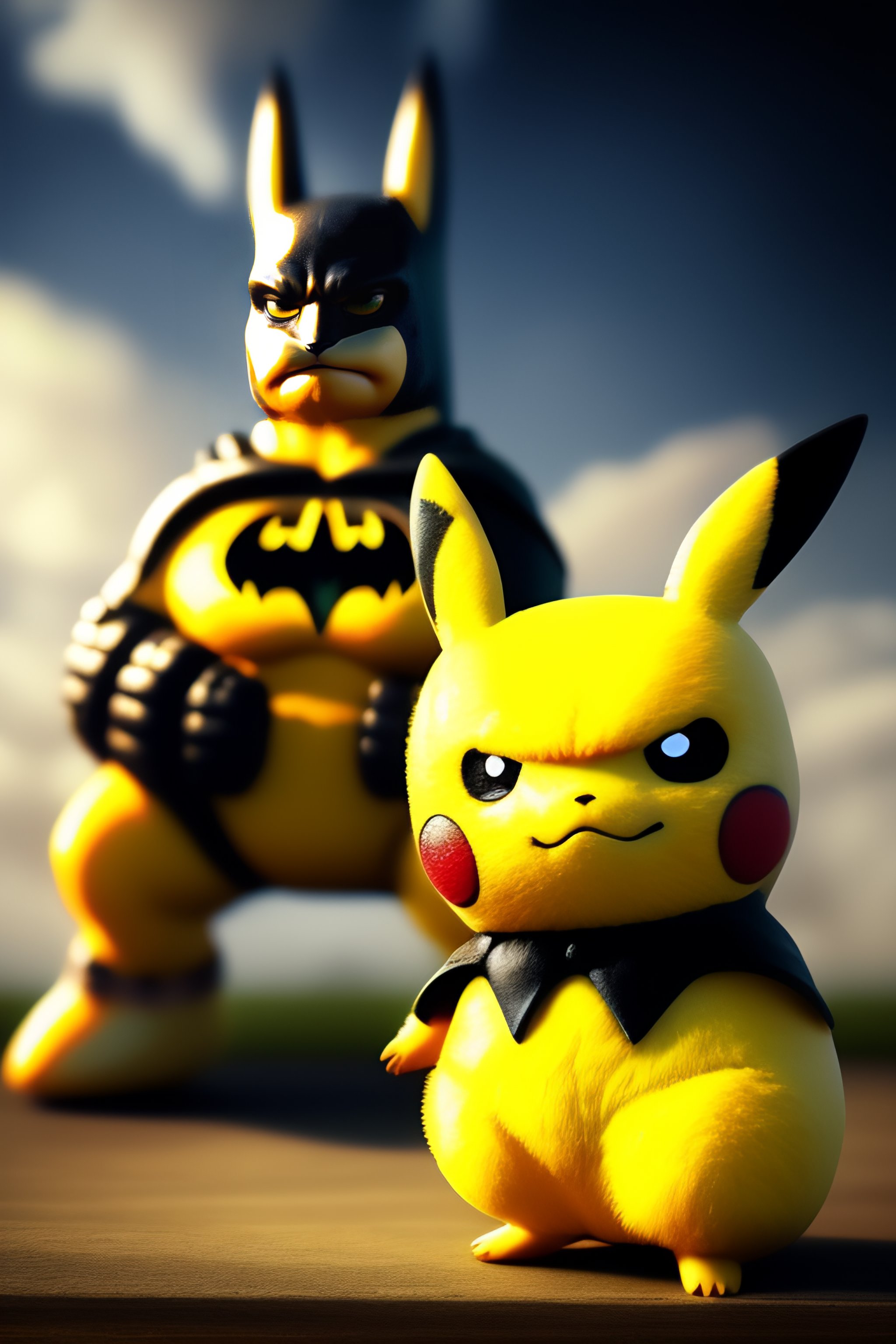 Pikachu fighting batman