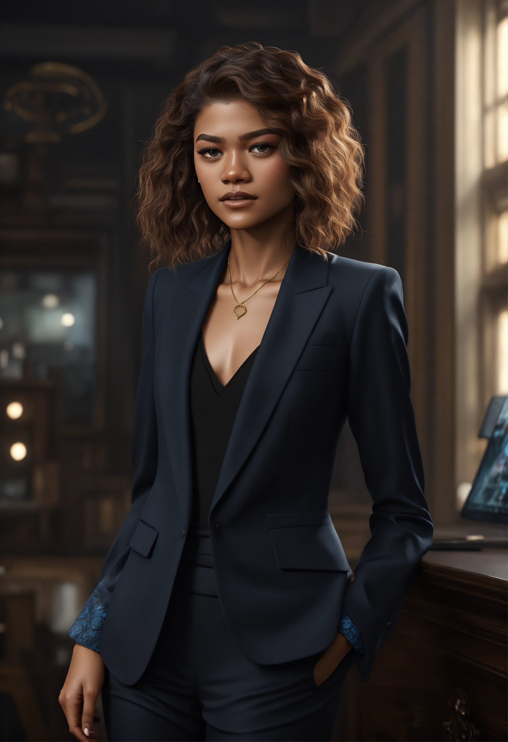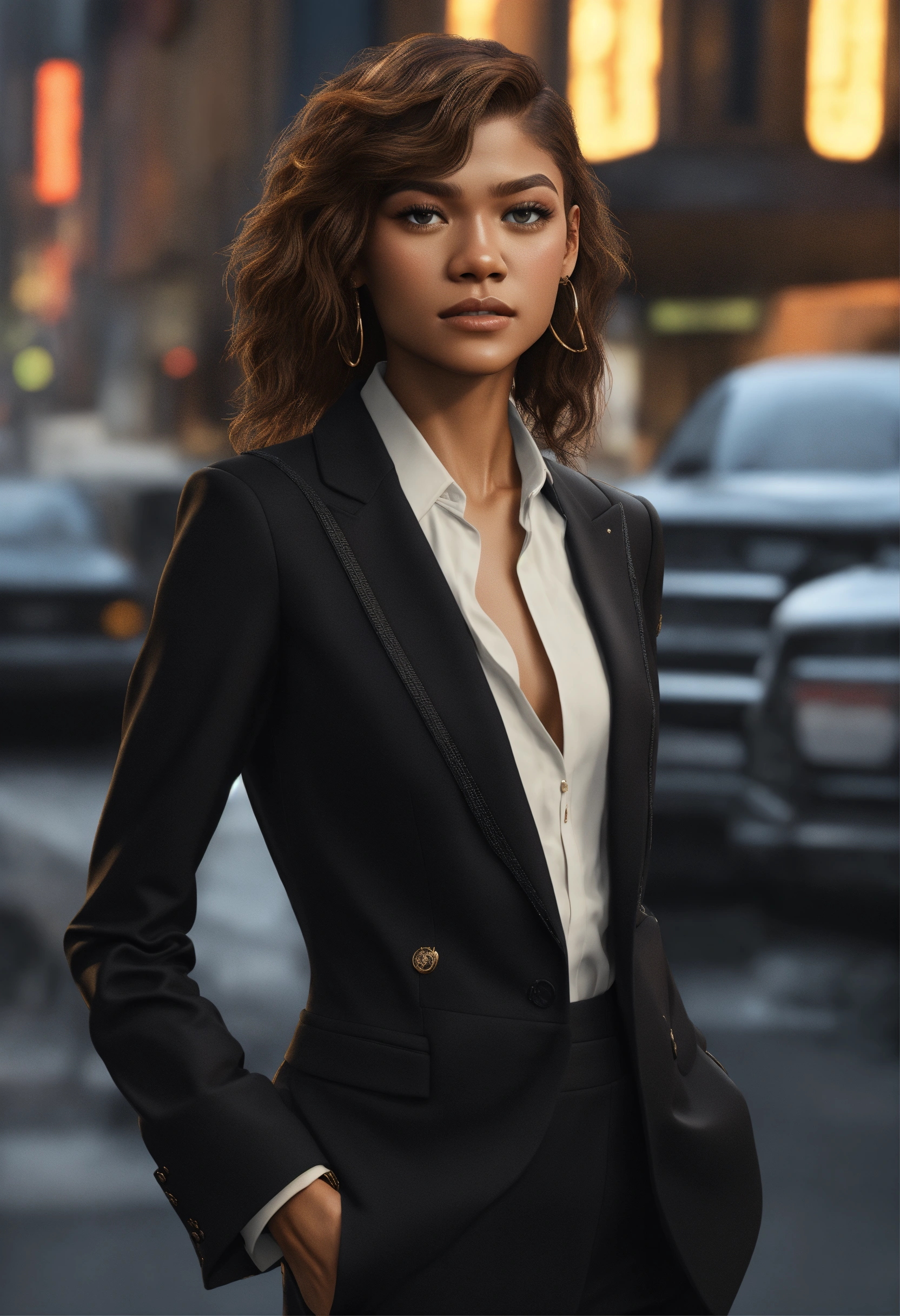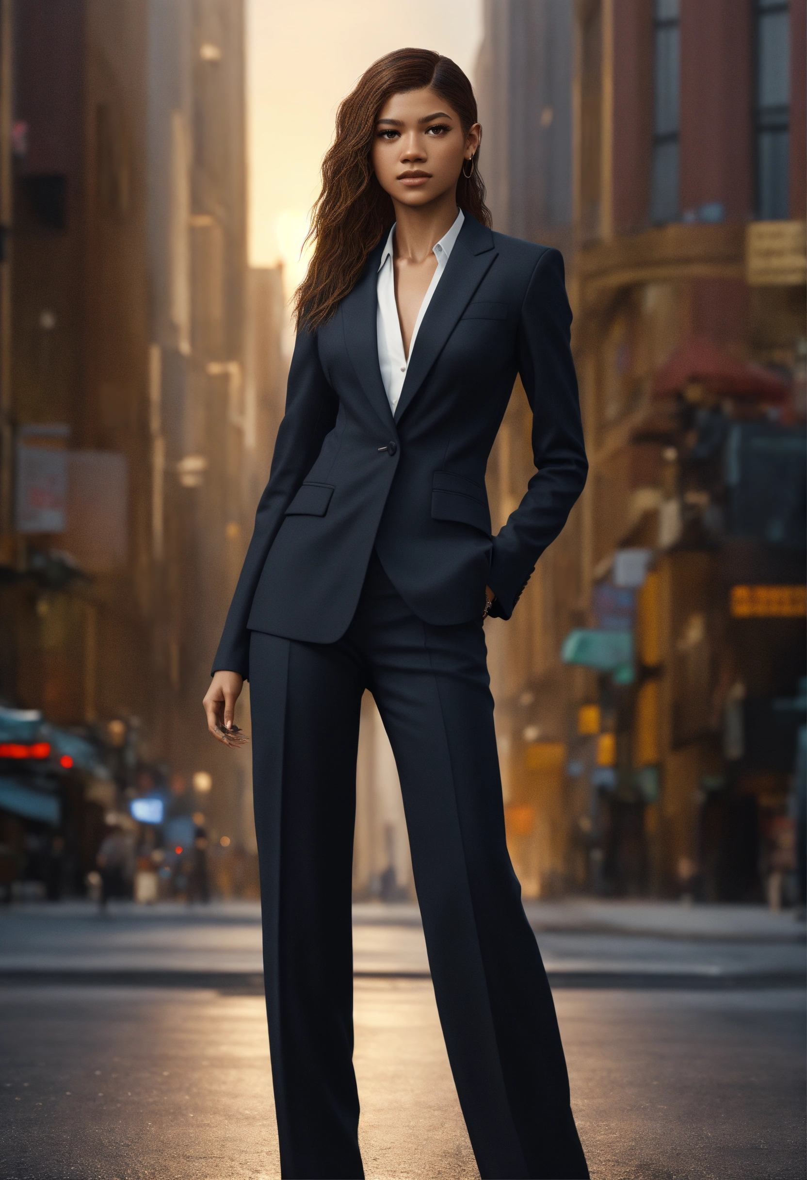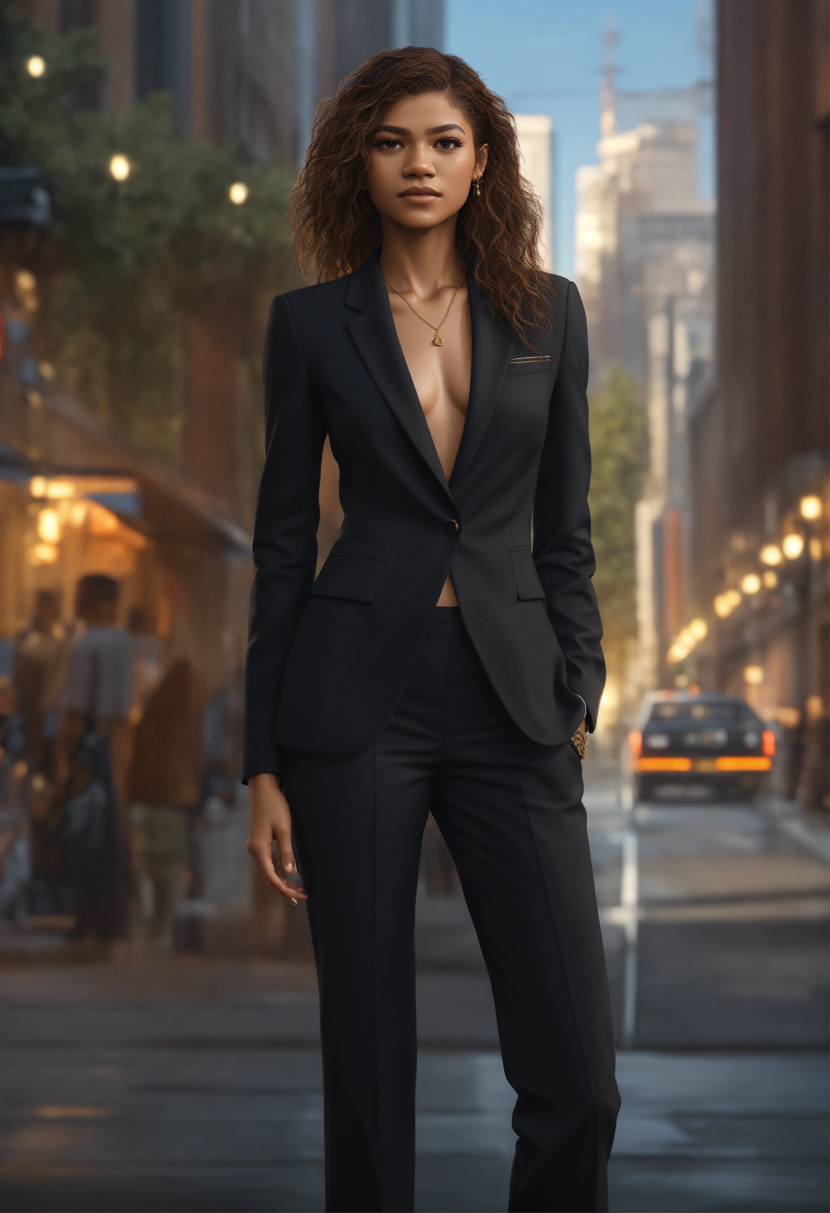 Full body portrait, zendaya, straight hair, black business suit, 8k resolution concept art by greg rutkowski, hyperdetailed, intricately detailed, unreal engine, hyperrealism, depth of field, photorealism, digital art, photorealistic