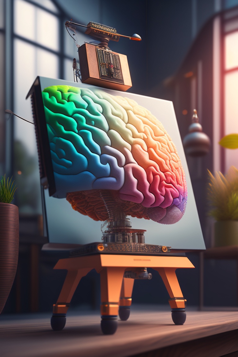 A high resolution photo of a!! robot painting a picture of a human brain!!, standing in an!! artist's studio!!, hyper detailed, photography, realistic, art, 8 k, unreal engine, cinematic, shallow focus, wide angle