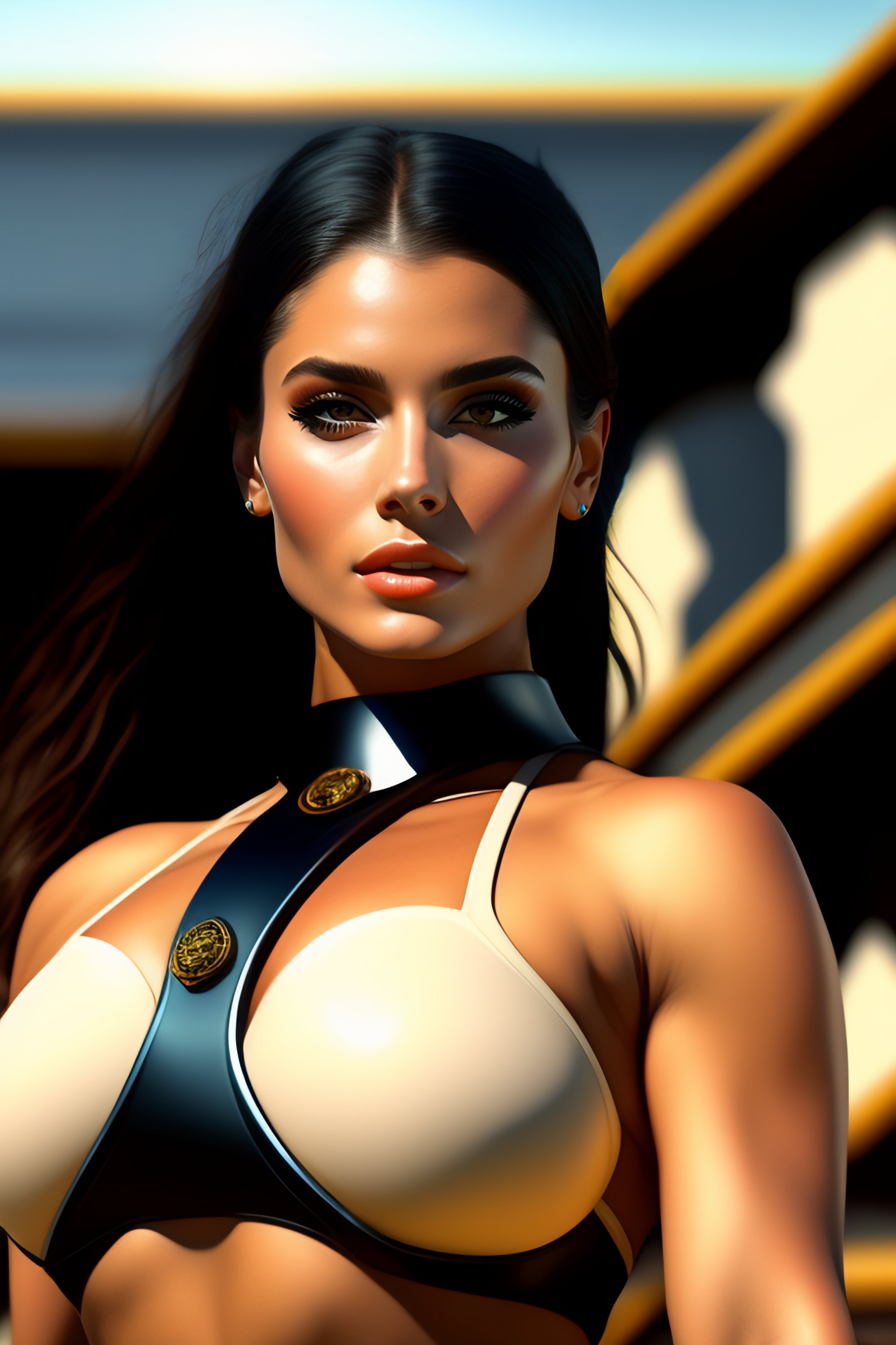 Leah gotti with metal bikini warrior style art made by frank frazetta in a city in war lions and tiger and skulls 8k ultrahd raytracing