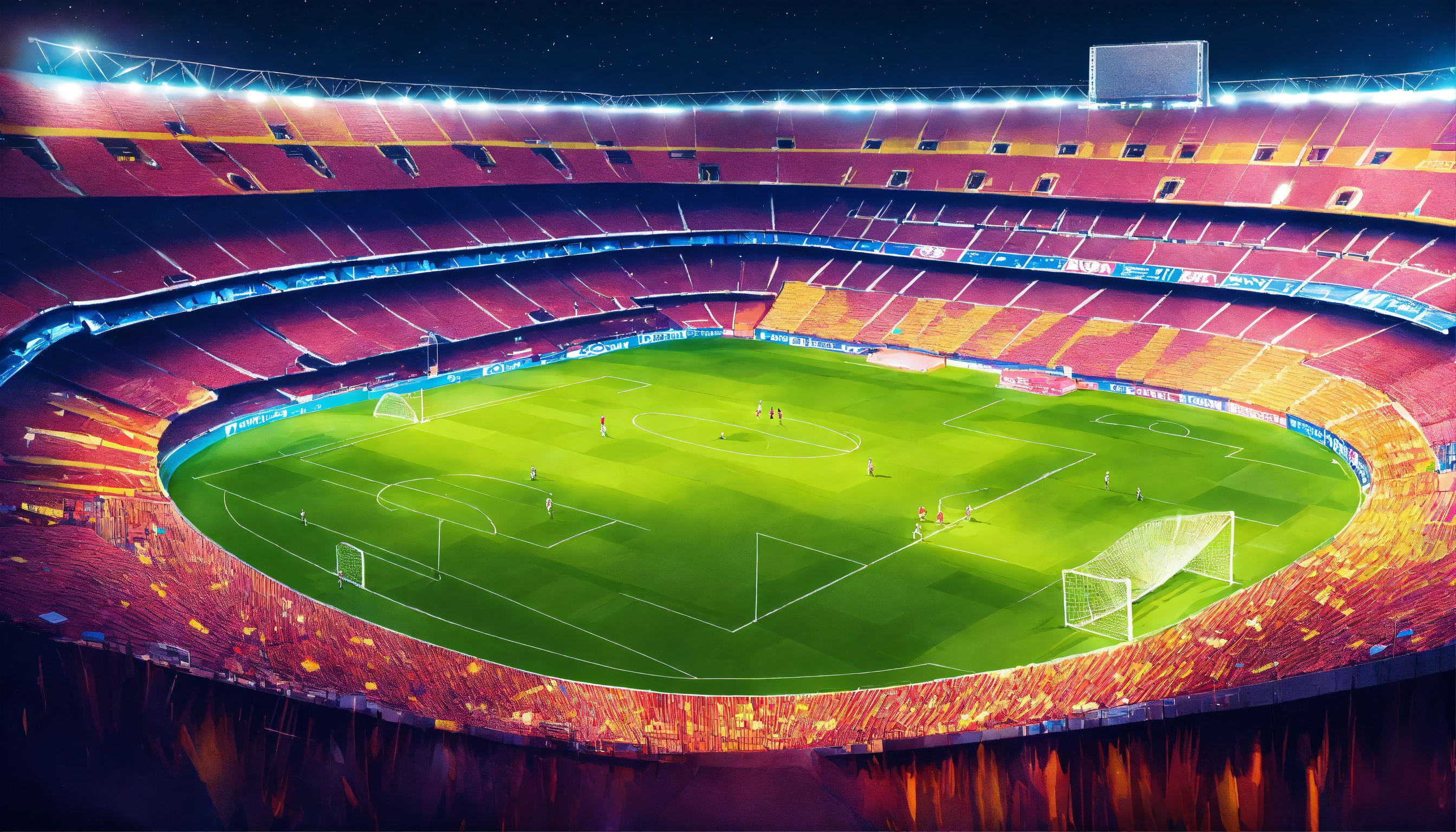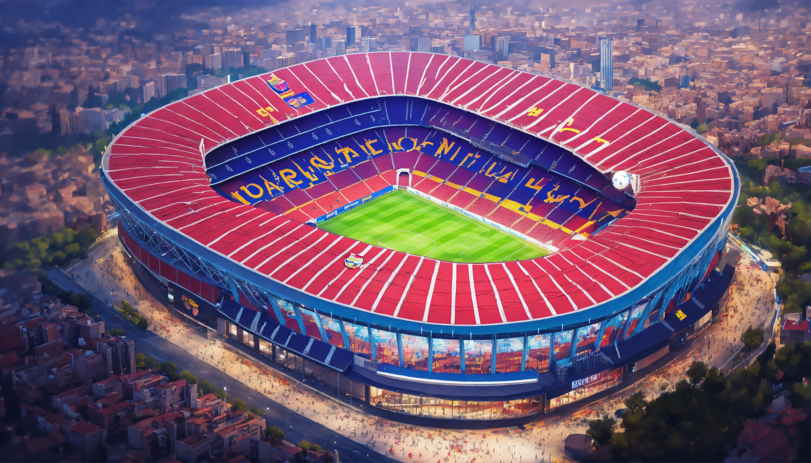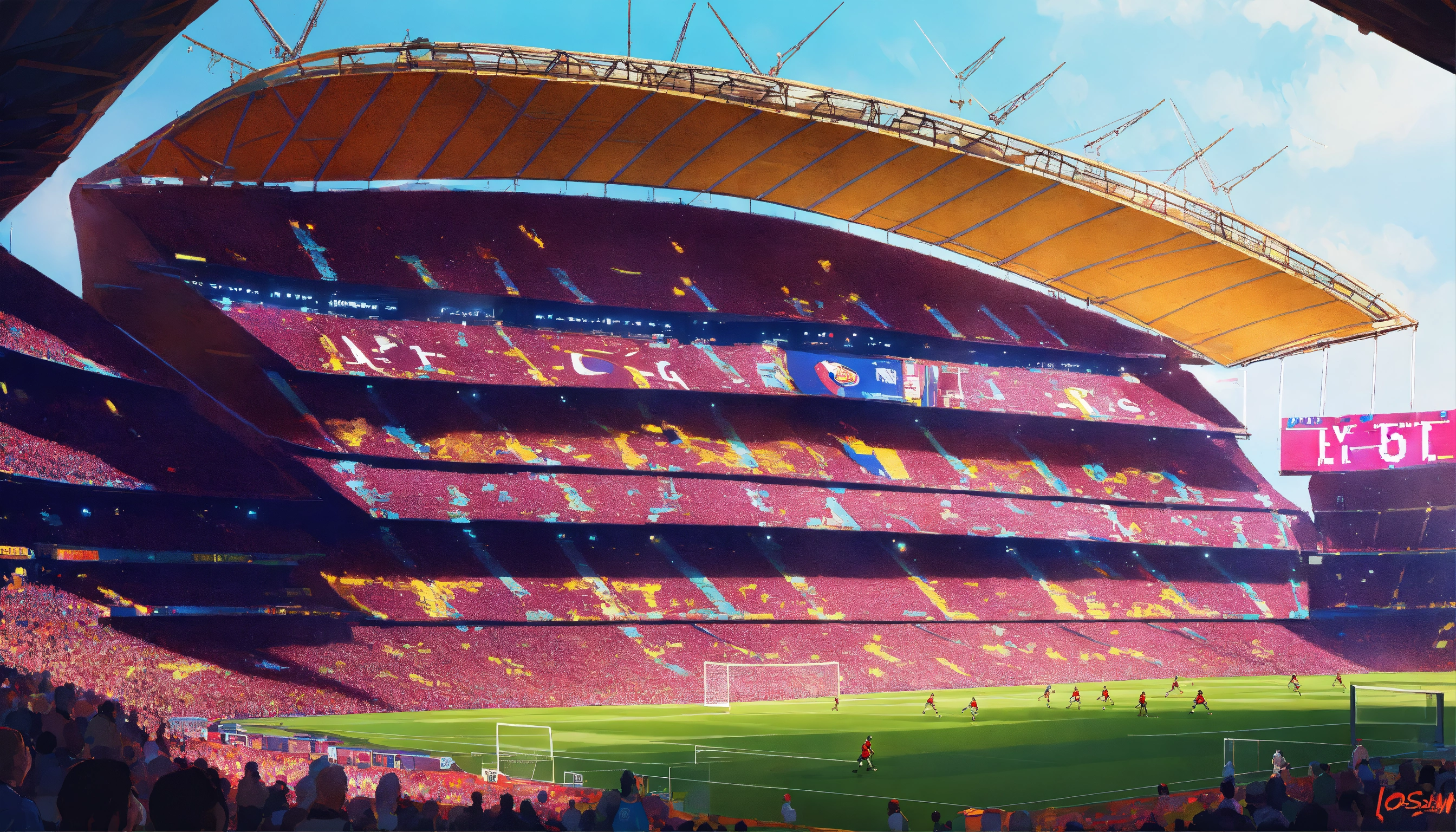 Barcelona's soccer stadium (camp nou), digital painting, artstation, concept art, matte, sharp focus, illustration, art by josan gonzalez