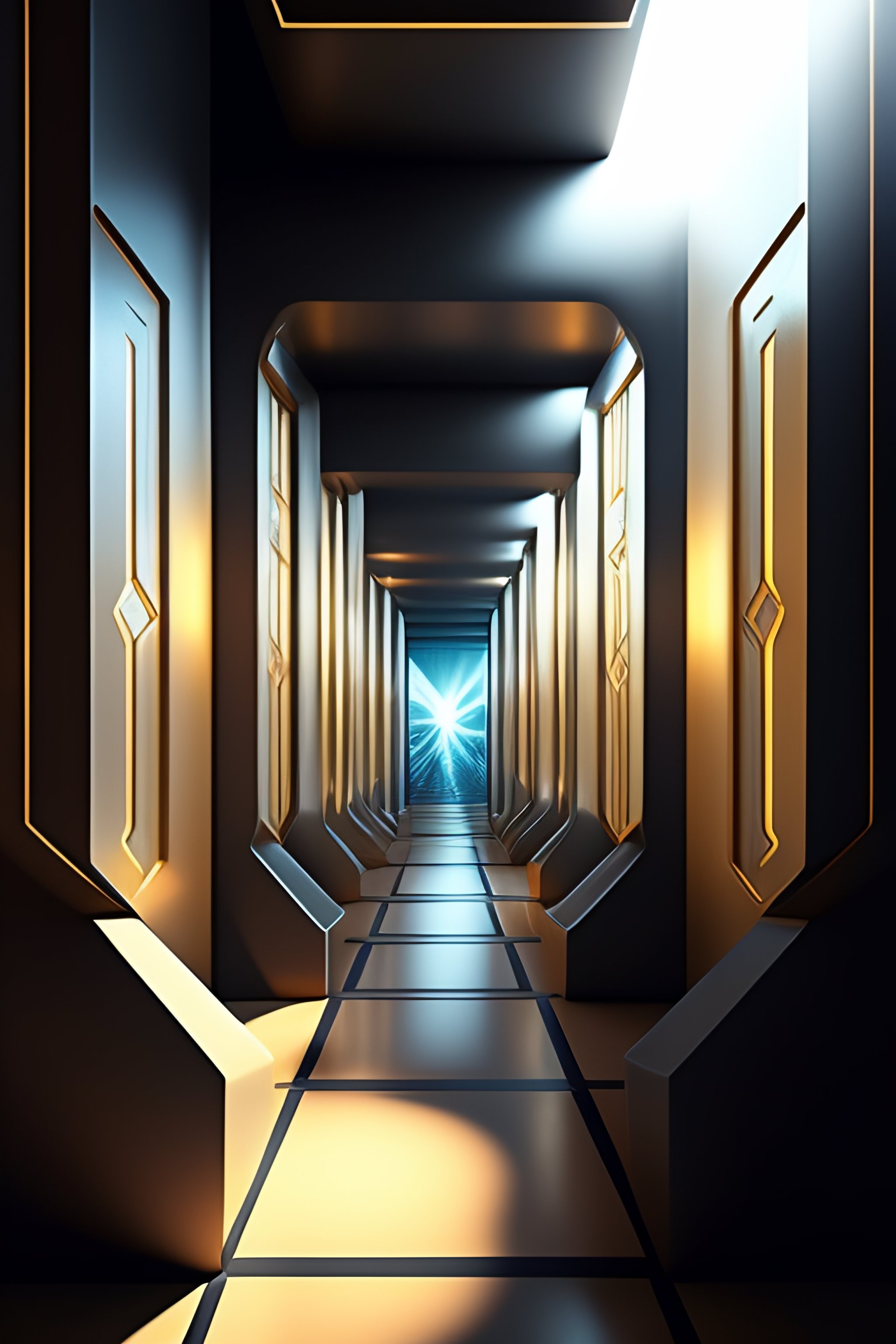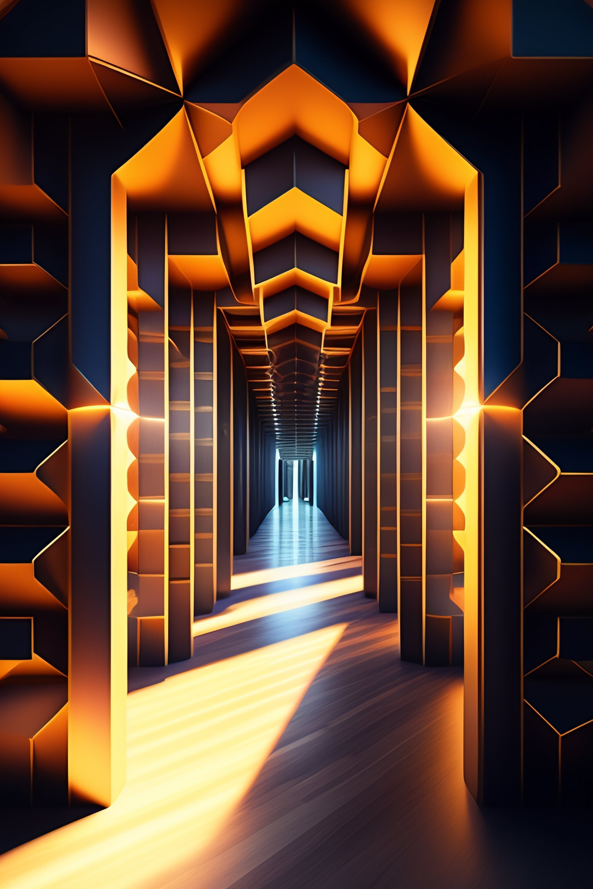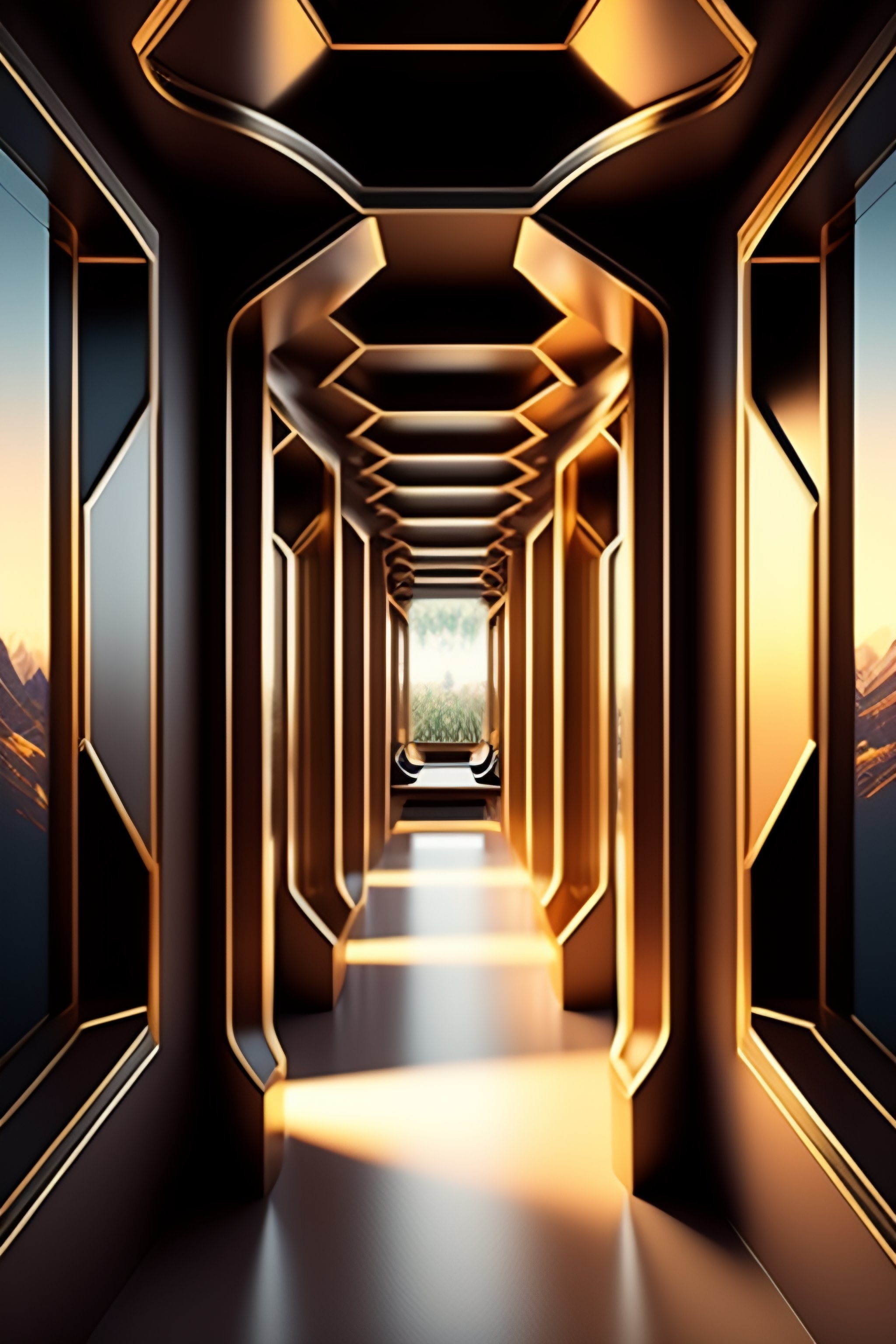 Infinite escher-style multidimensional corridors that are hexagonal, treasure cave lighting, tesseract from the interstellar movie