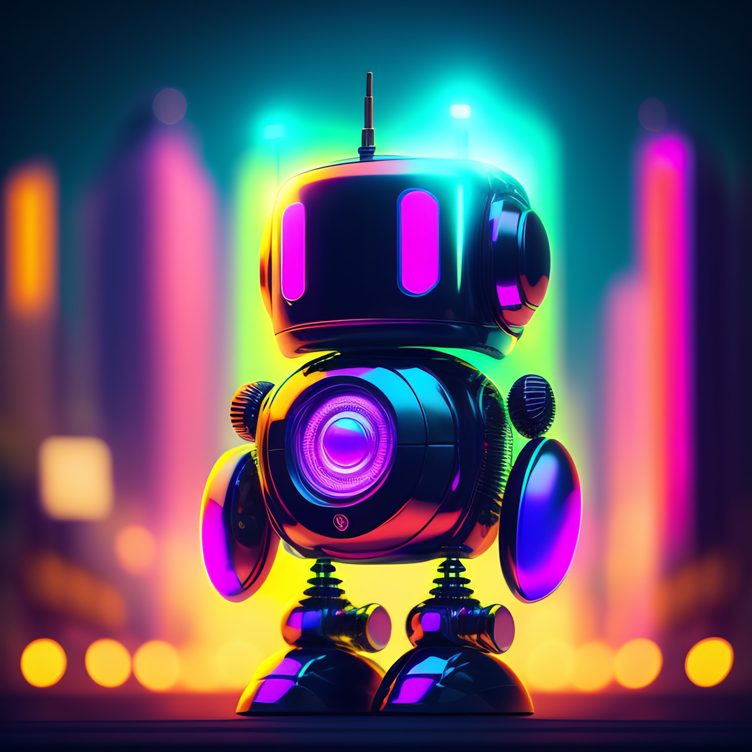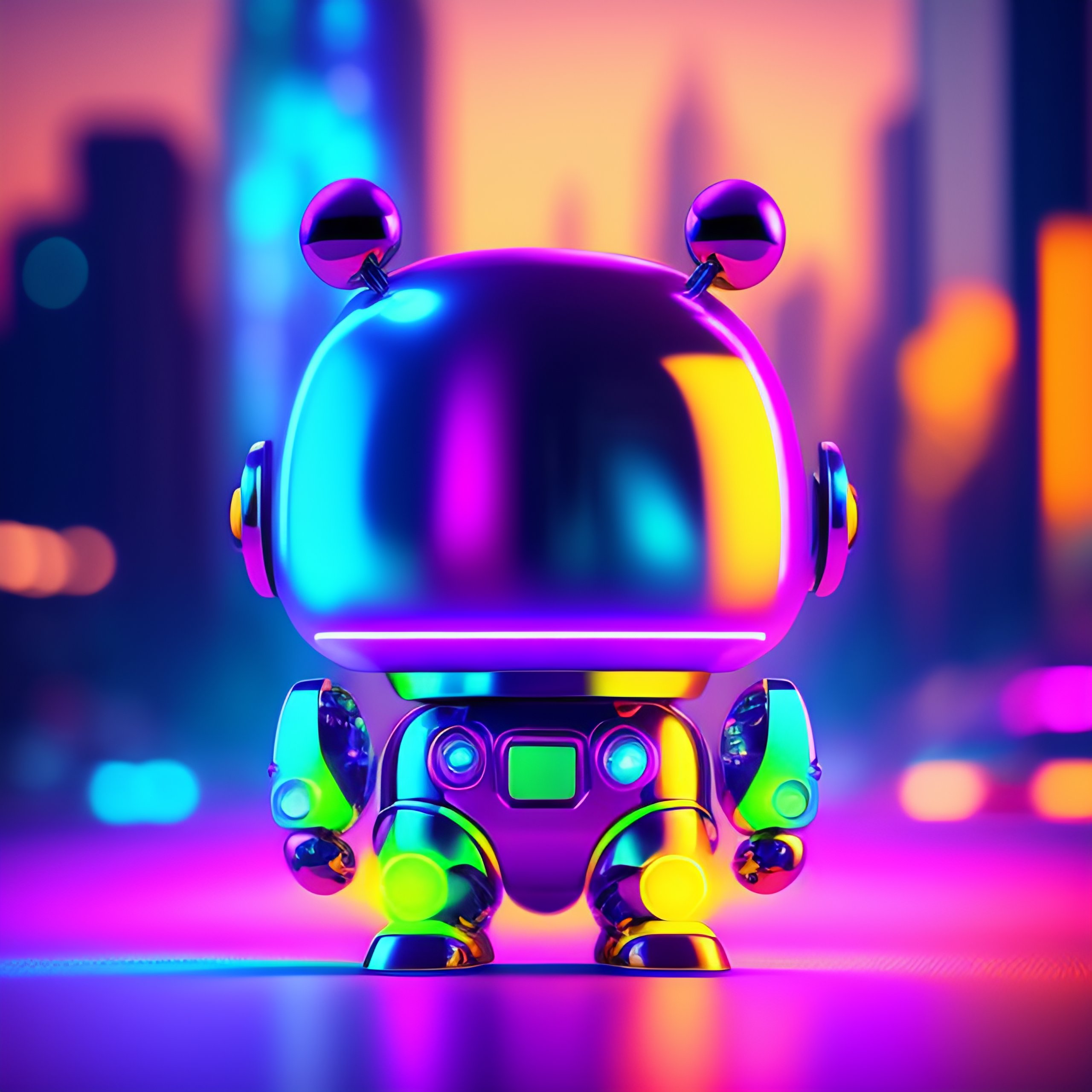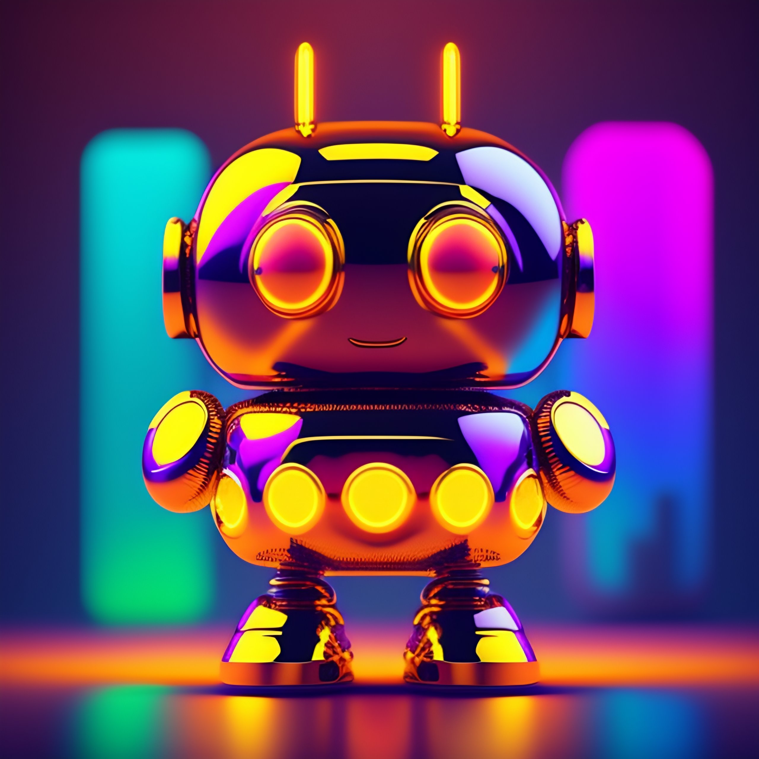 Mascot robot cute neon colors 8k metal mirror effects