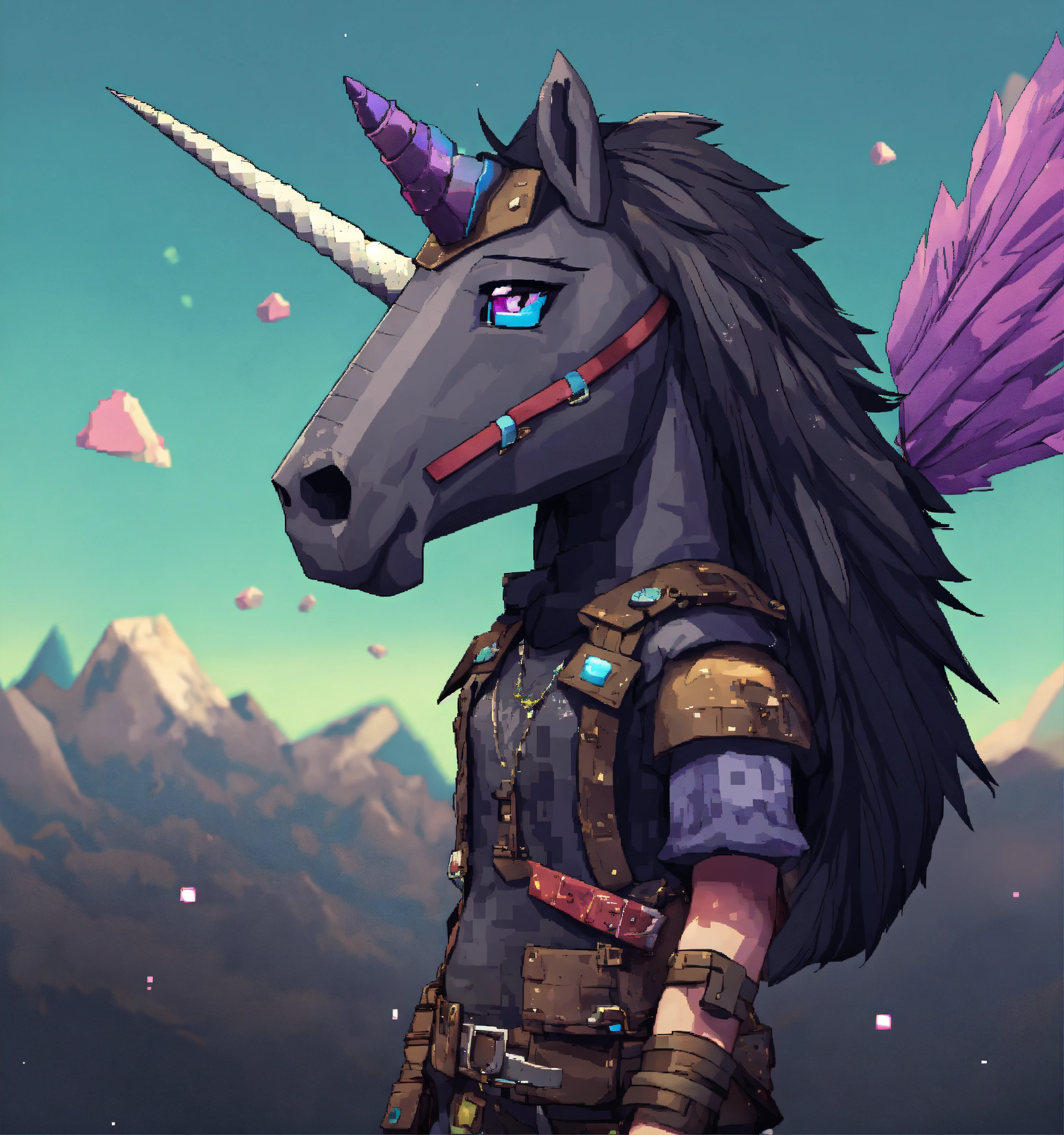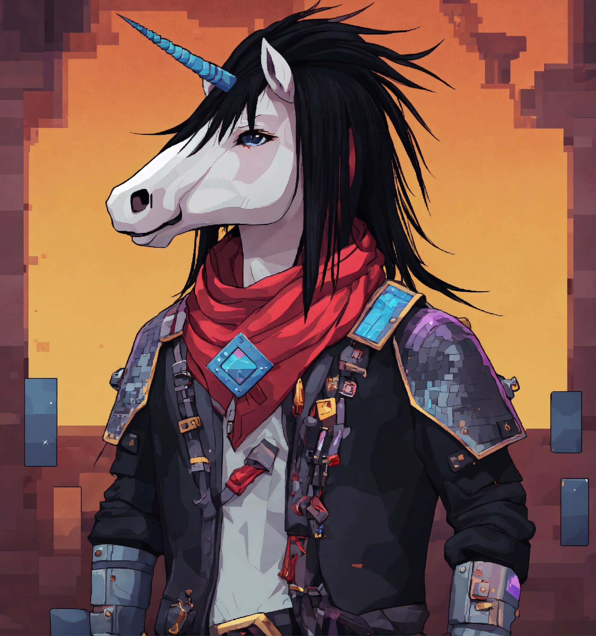 Emo rock, emo, squarehead, emo unicorn, viking, graphics, 2d, 3d, square, black hair, game character, pixel art