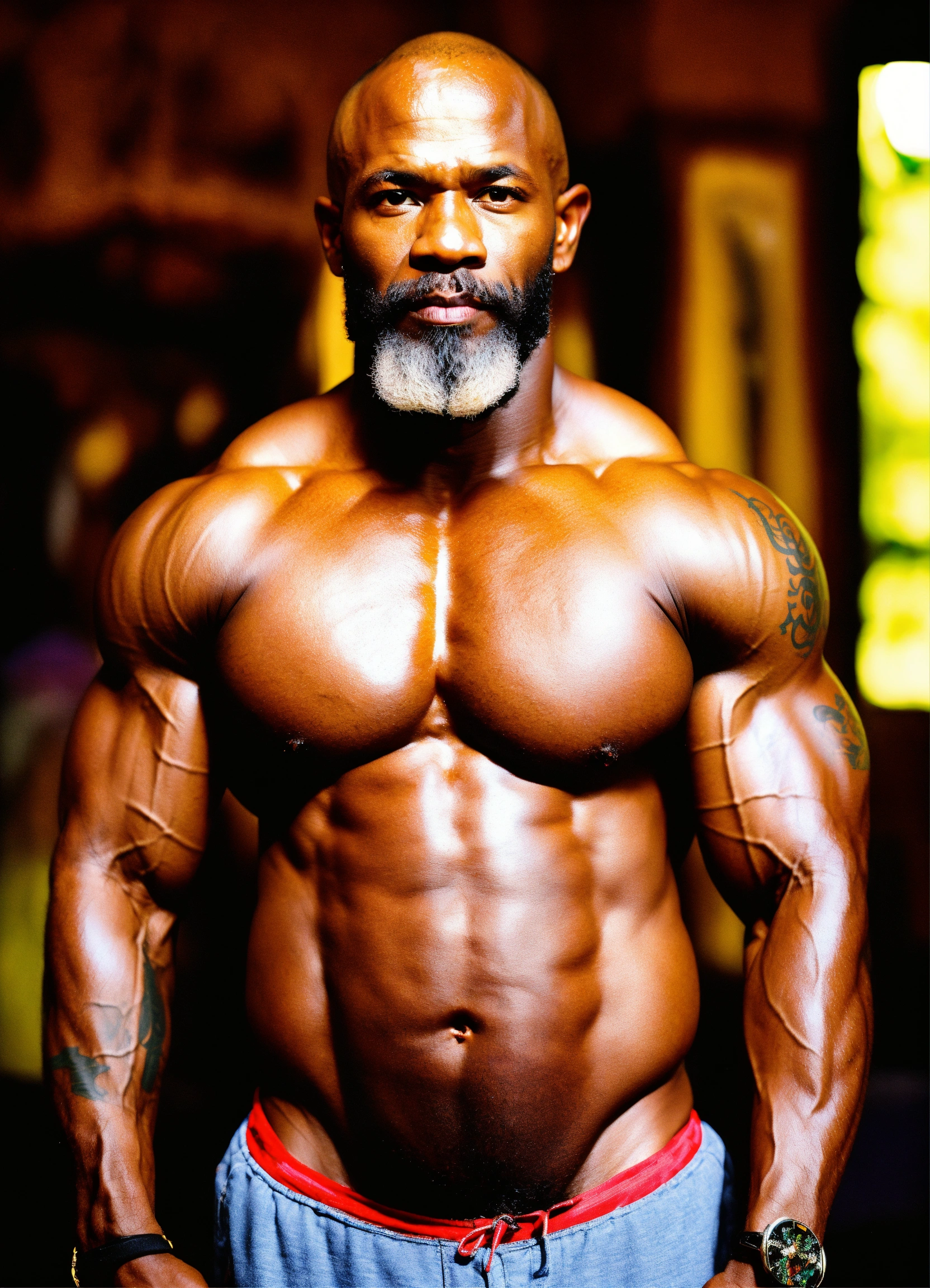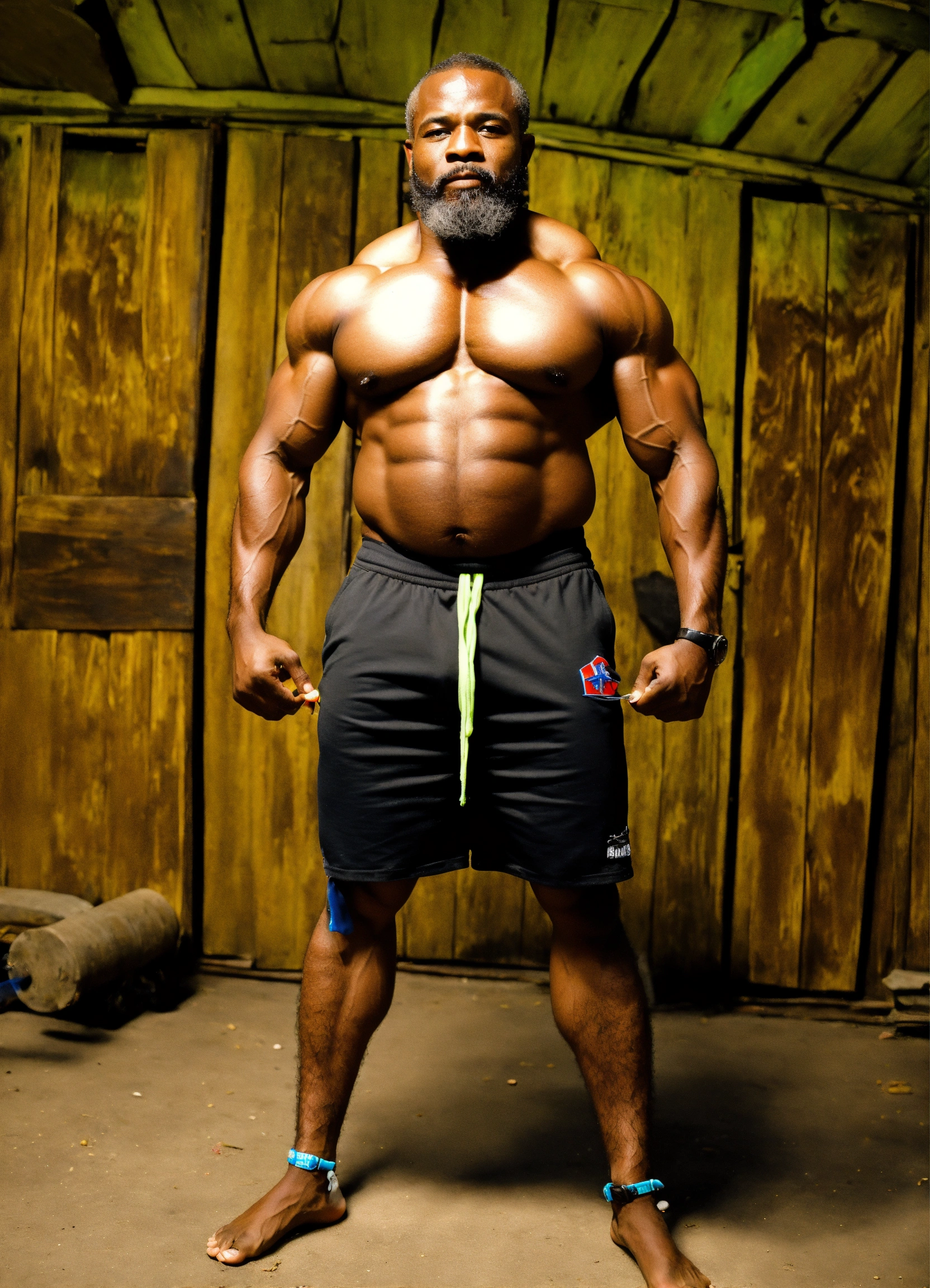 Shrunk tiny old haitian bodybuilder fly kali belly beard