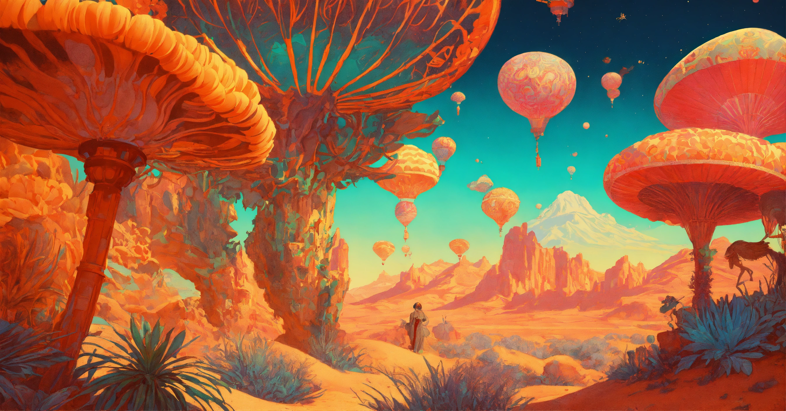 Desert kingdom ernst haeckel maria sibylla merian. tristan eaton, victo ngai, artgerm, rhads, ross draws, kaethe butcher, hajime sorayama, greg tocchini, virgil finlay, sci-fi, colors, neon lights, digital painting, pixiv, by ilya kuvshinov, neon lights, 3d, perspective