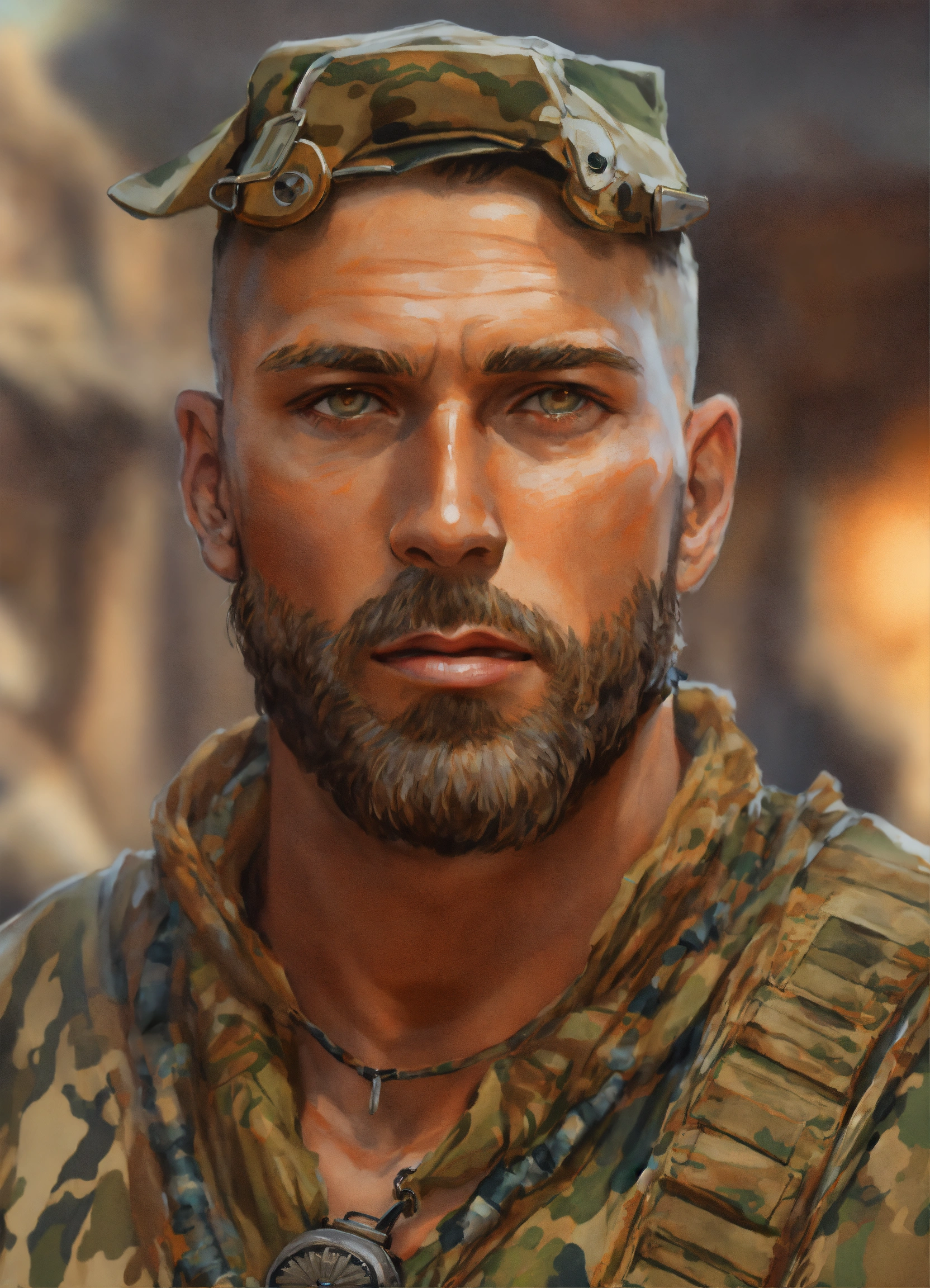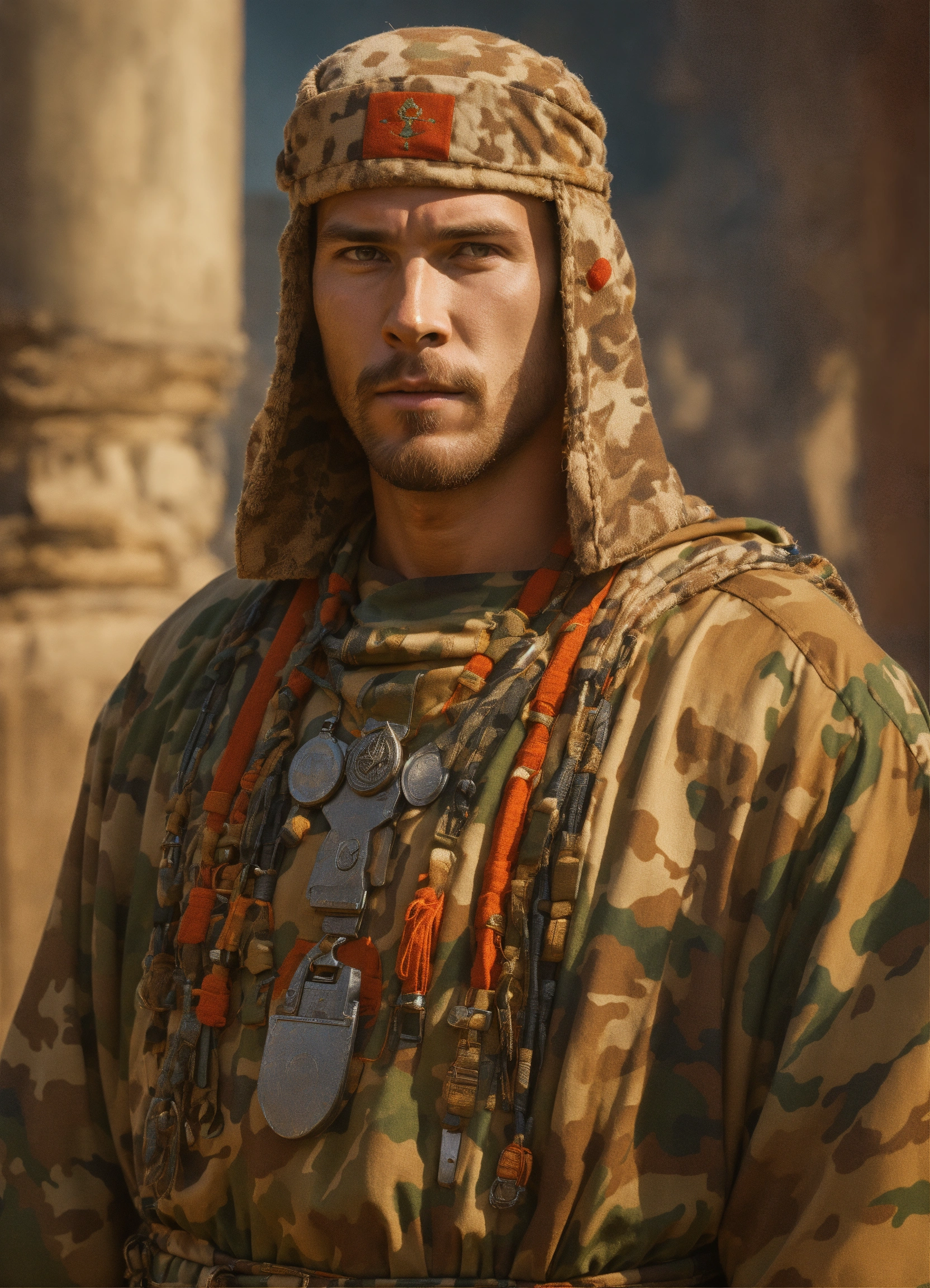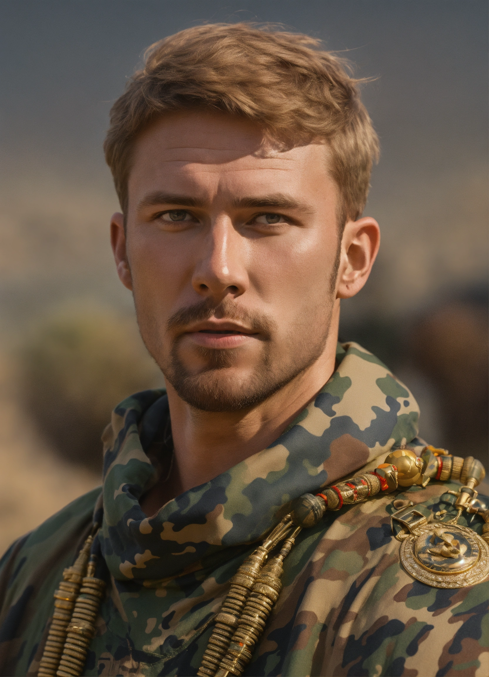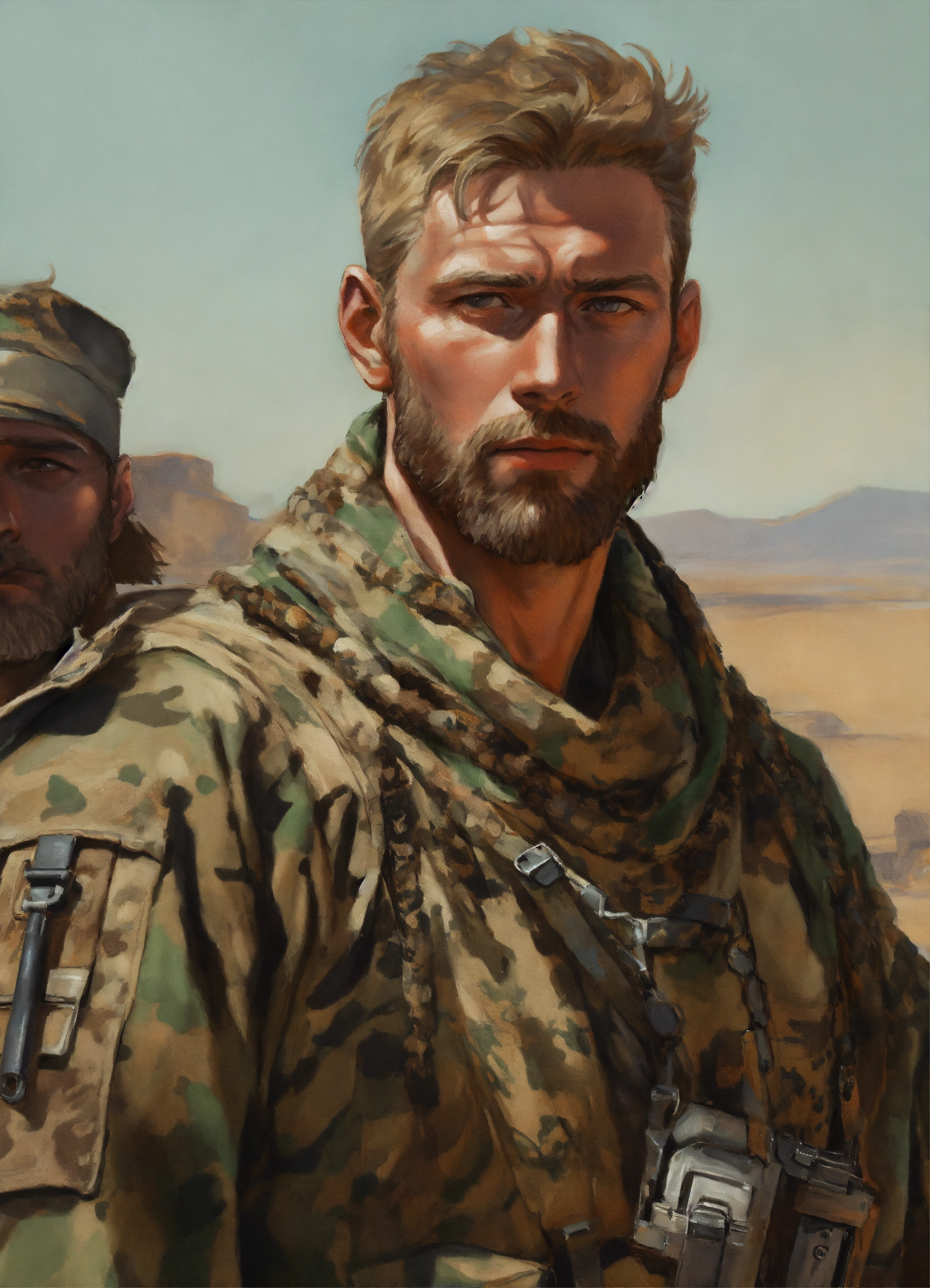Caucasian male mercenary wearing camouflage kaftan, coriolis the third horizon, hyper detailed, artist gustaf ekelund, face view