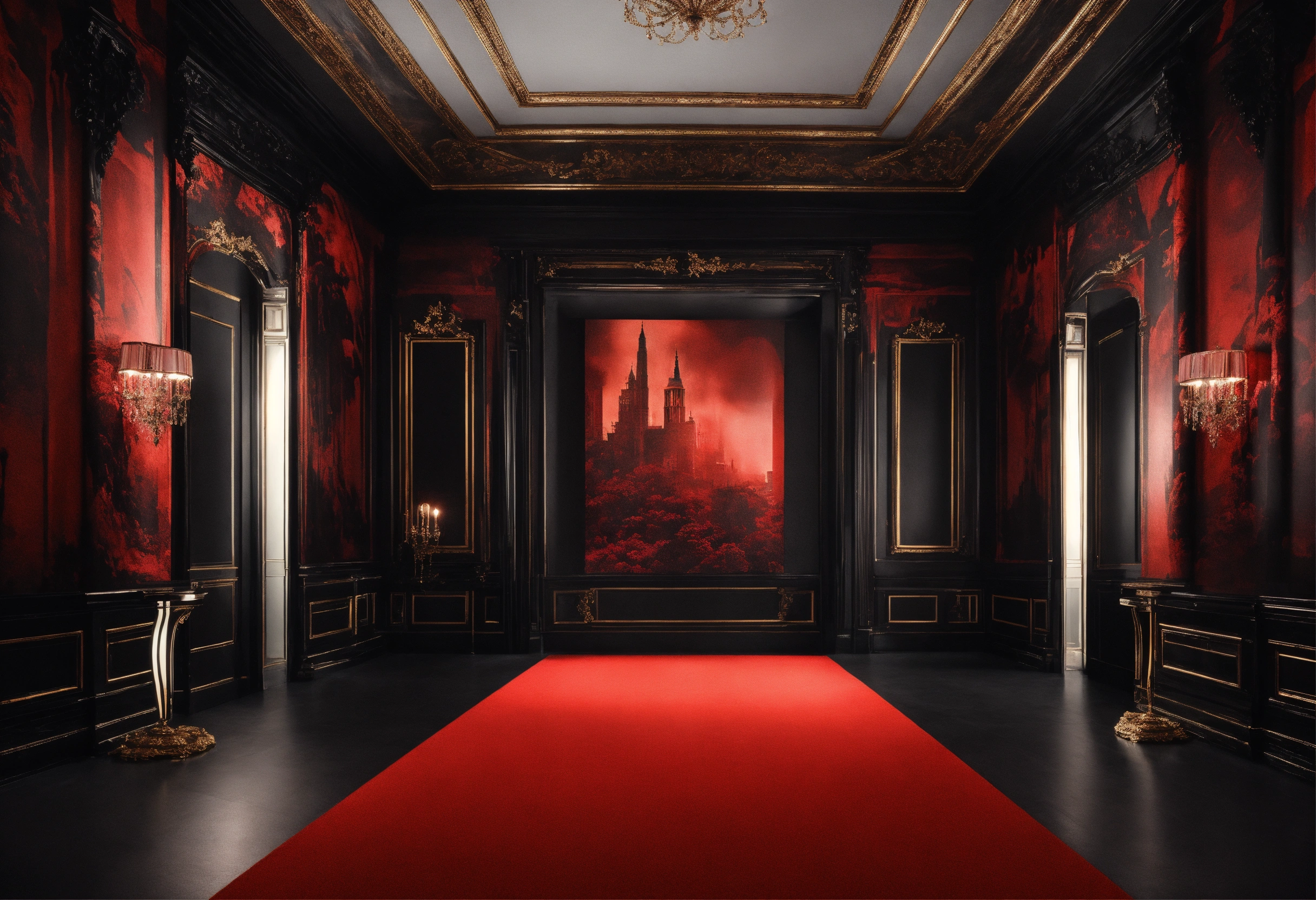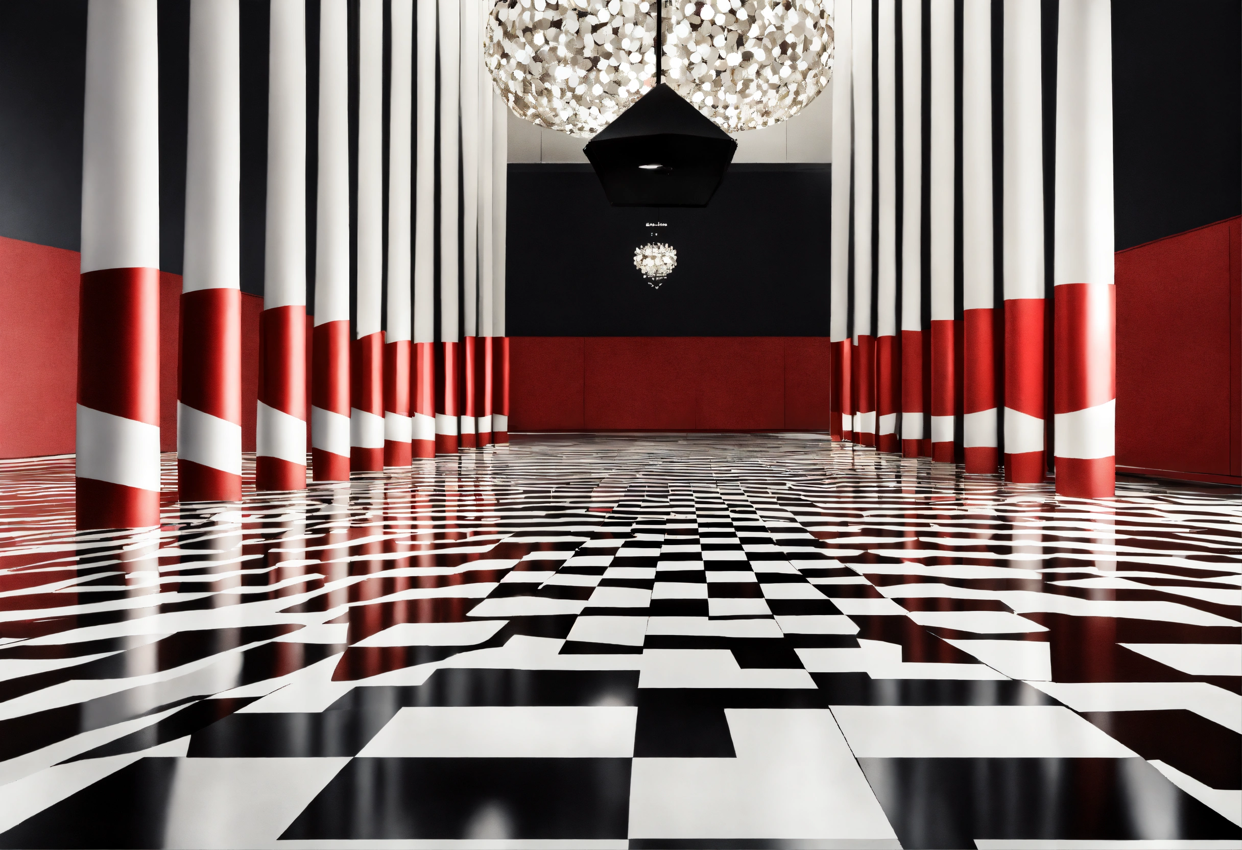 Elegant italian black red white surreal attractive graphic backdrop light coloumns