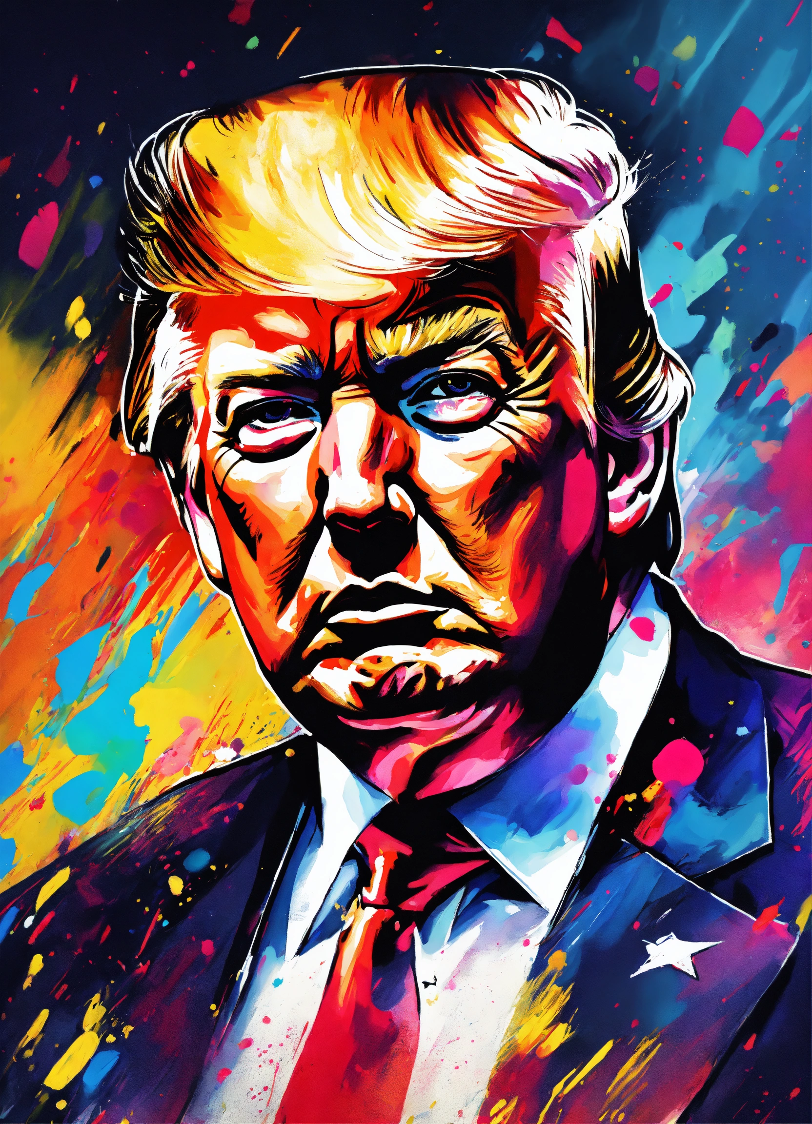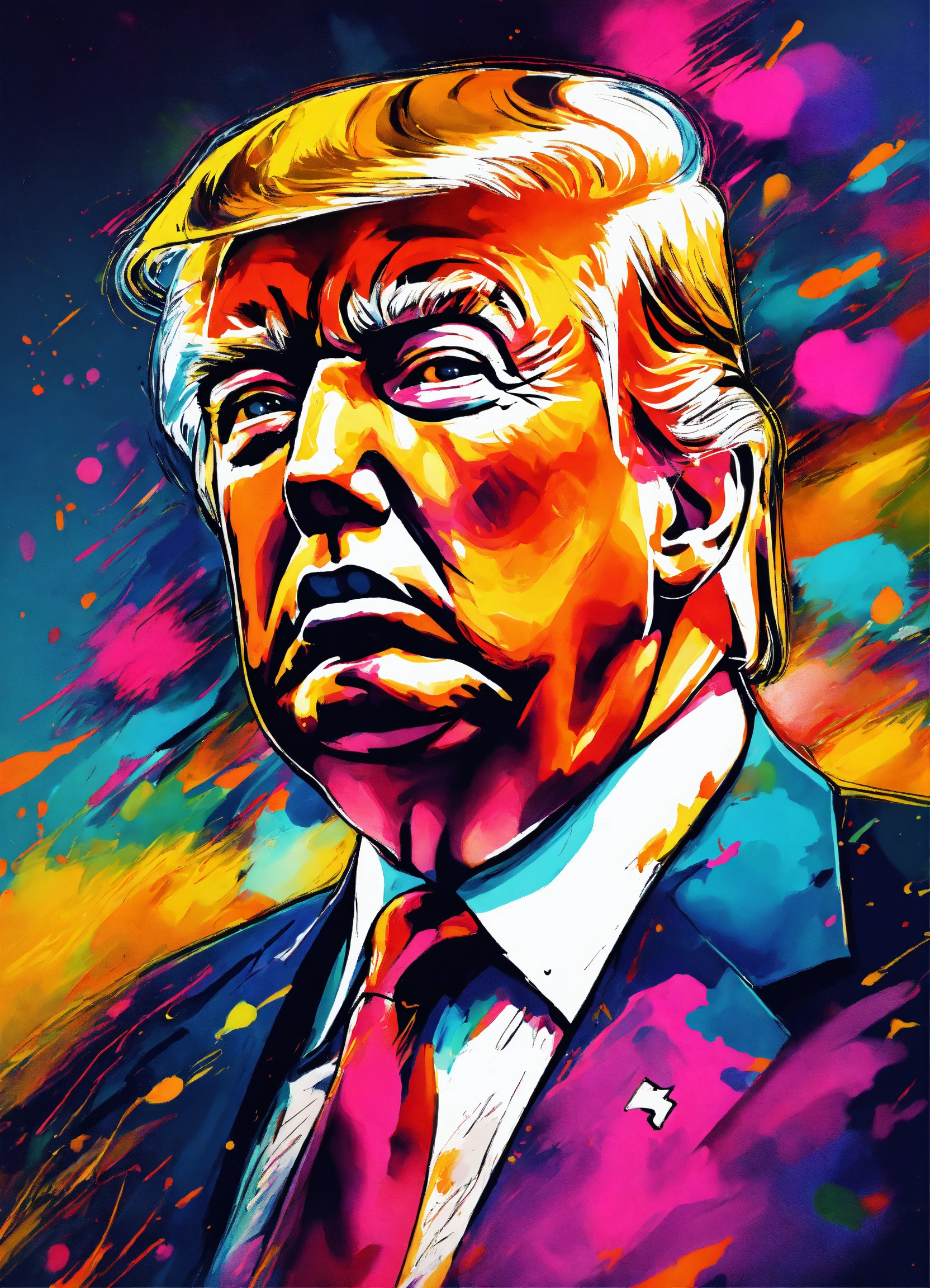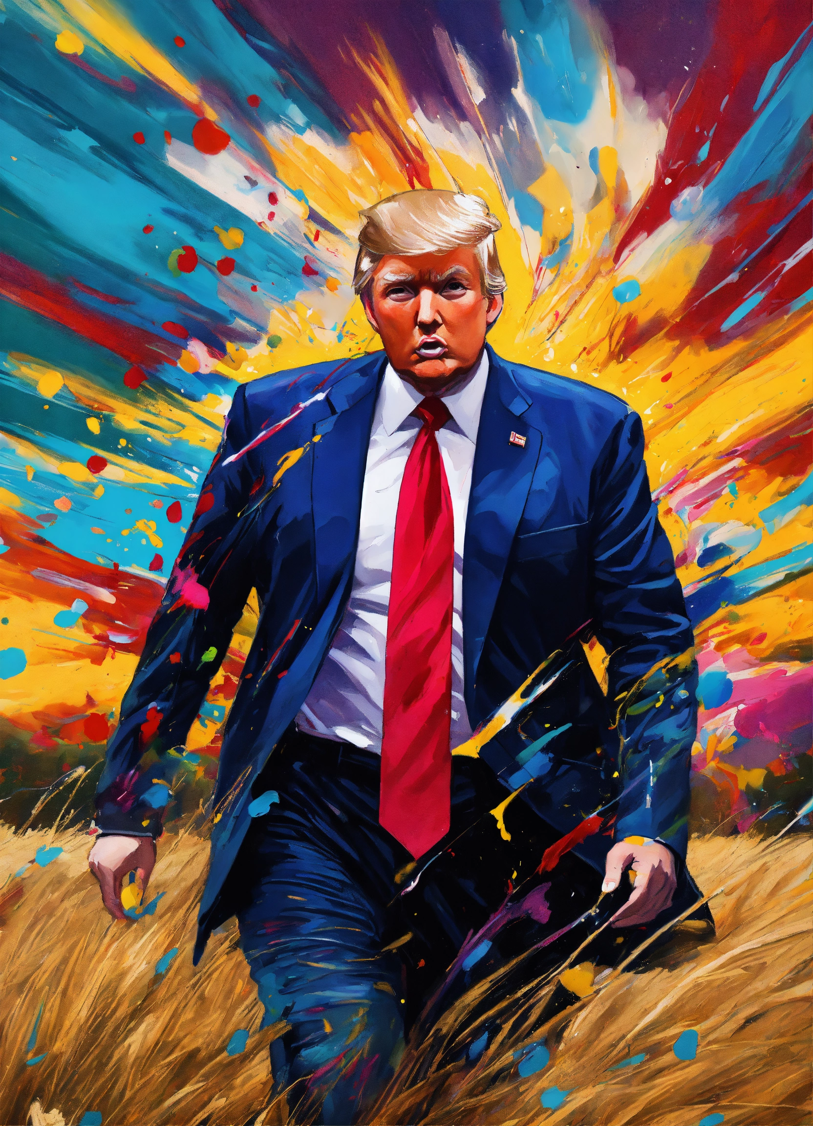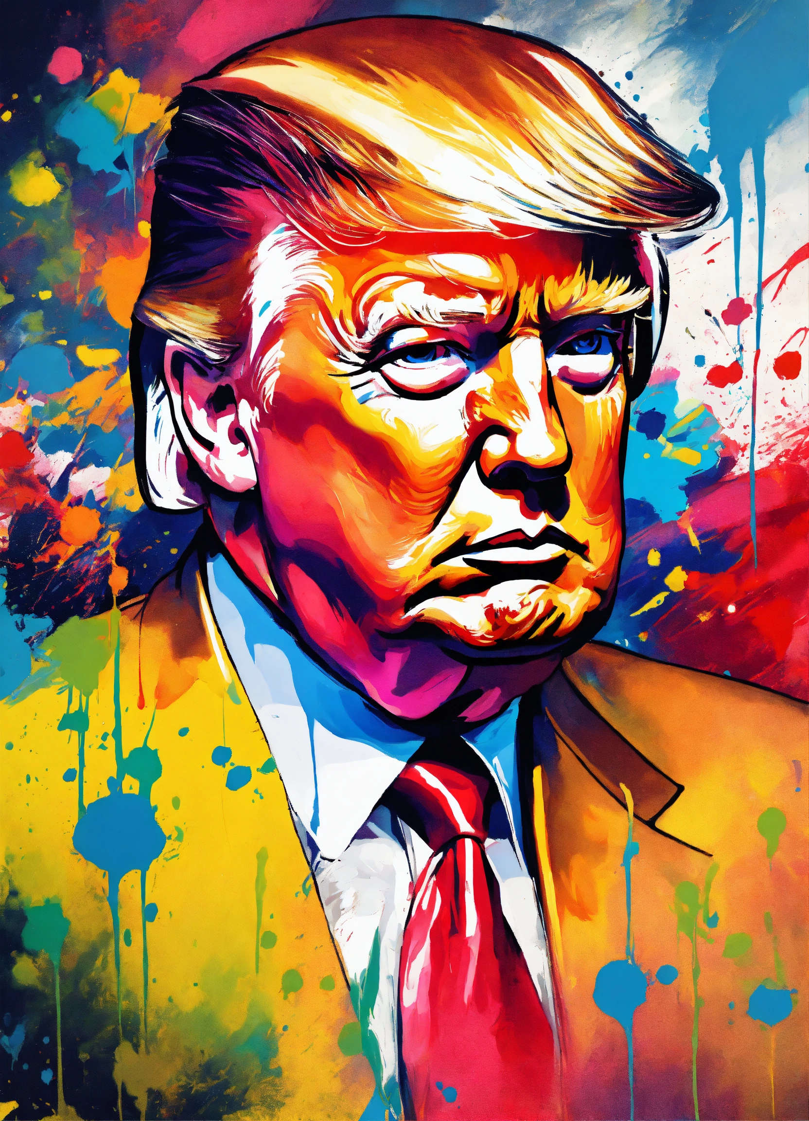 A painting of 'donald trump' running in a field, trend in behance hd, cmyk portrait, multi colored, defiant and beautiful, cmyk, expressive eyes!! intricate, 🐎🍑, beautiful iphone wallpaper, medium [ graffiti ], by sun kehong, 1 6 colors, splashes of liquid