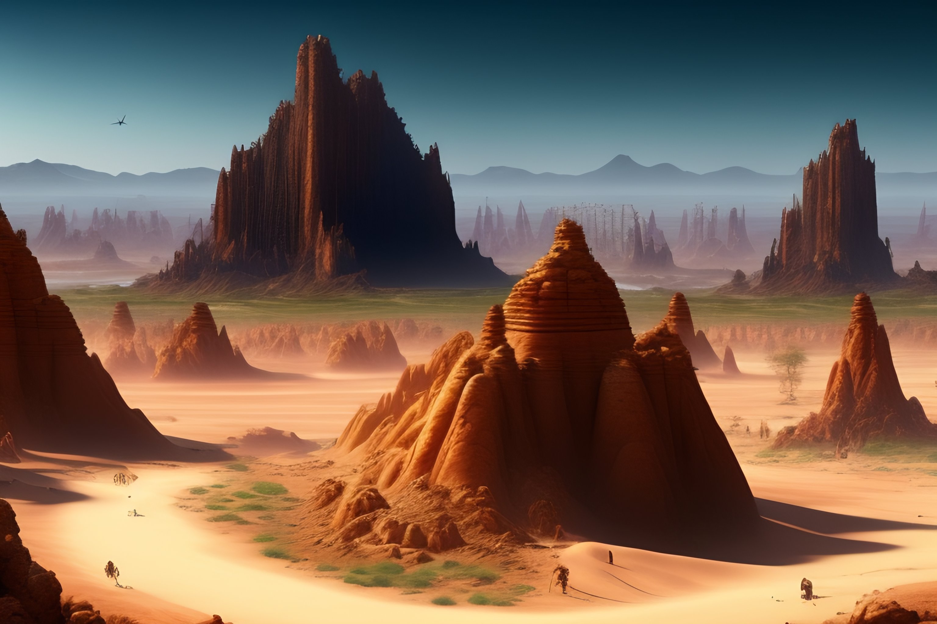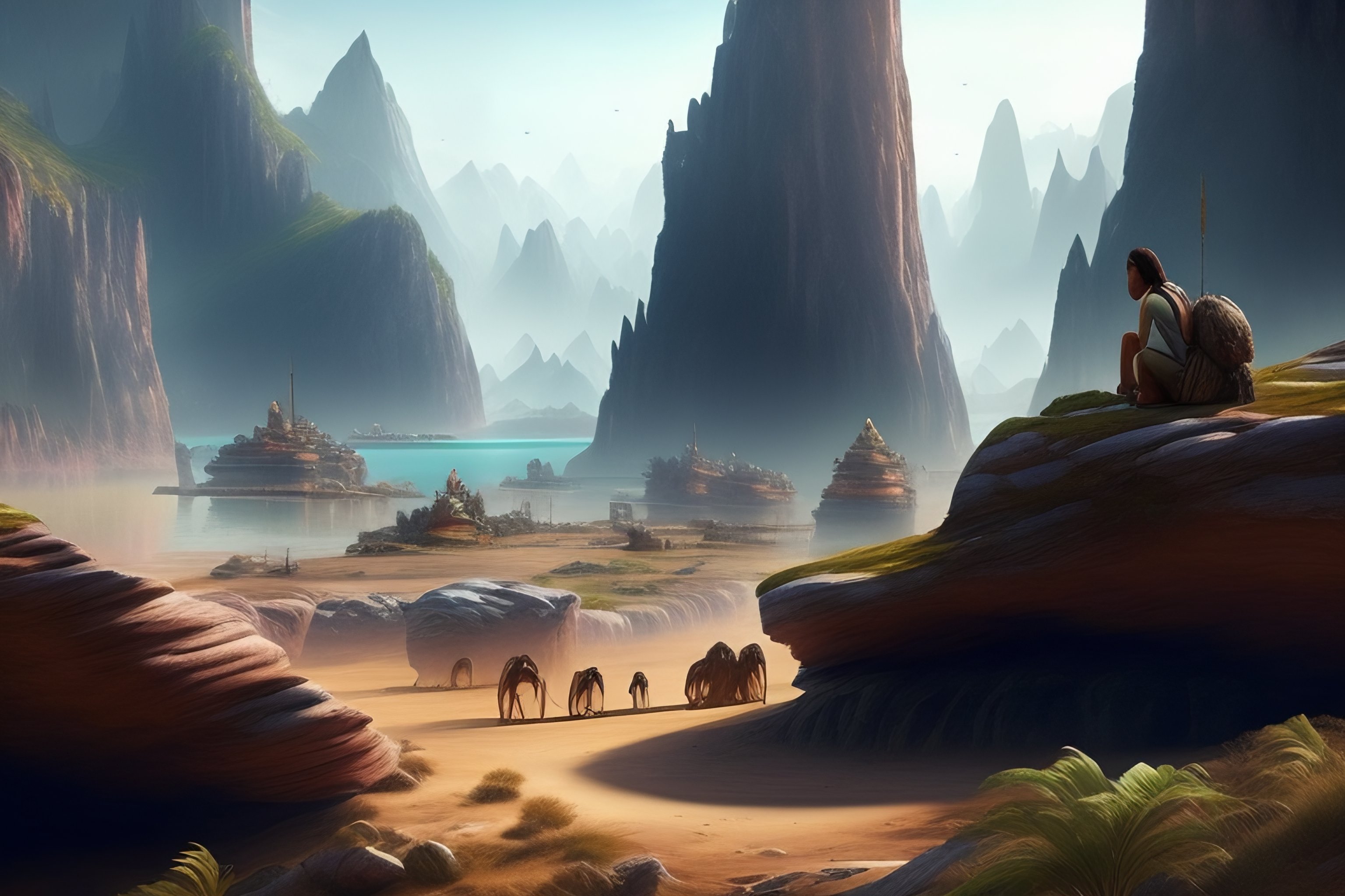 Neanderthals on a destroyed earth landscape 7000 years in the future
