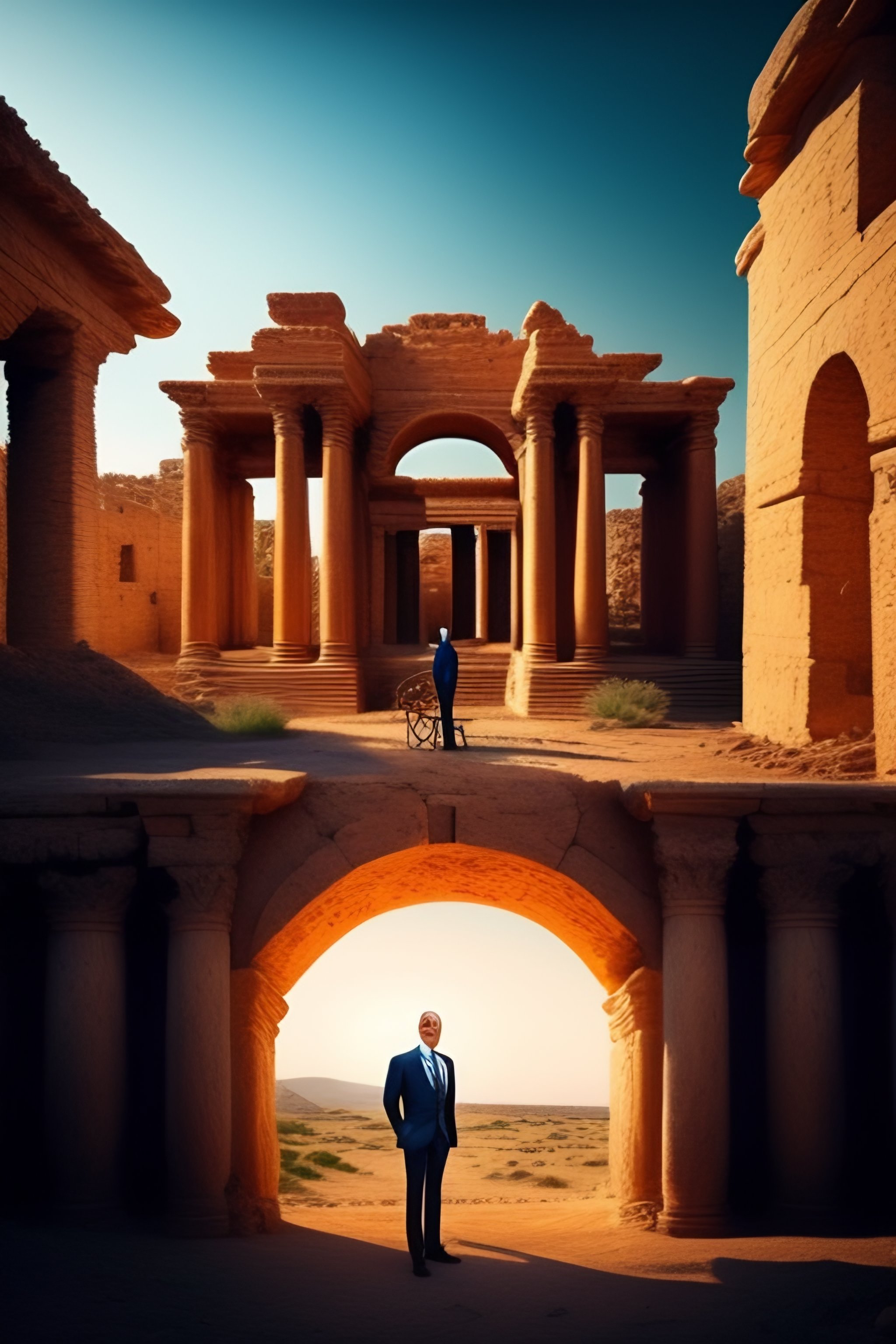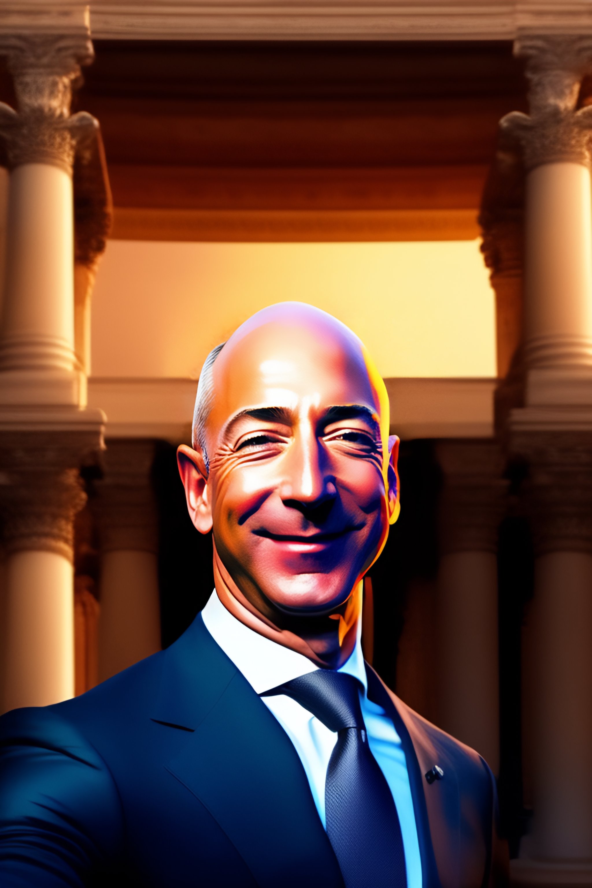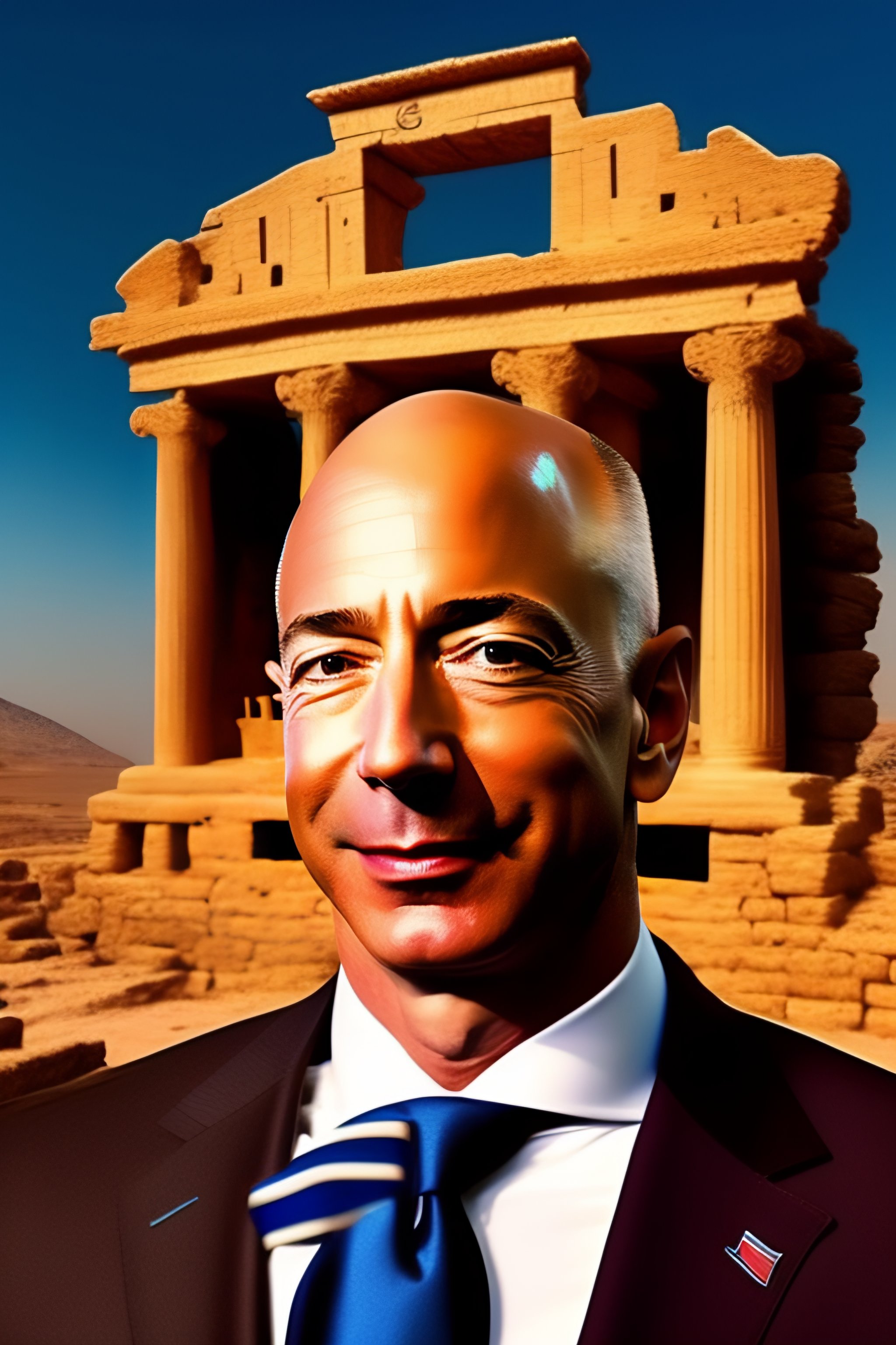 Jeff bezos doing selfie in ancient troy while the trojan horse is in the background
