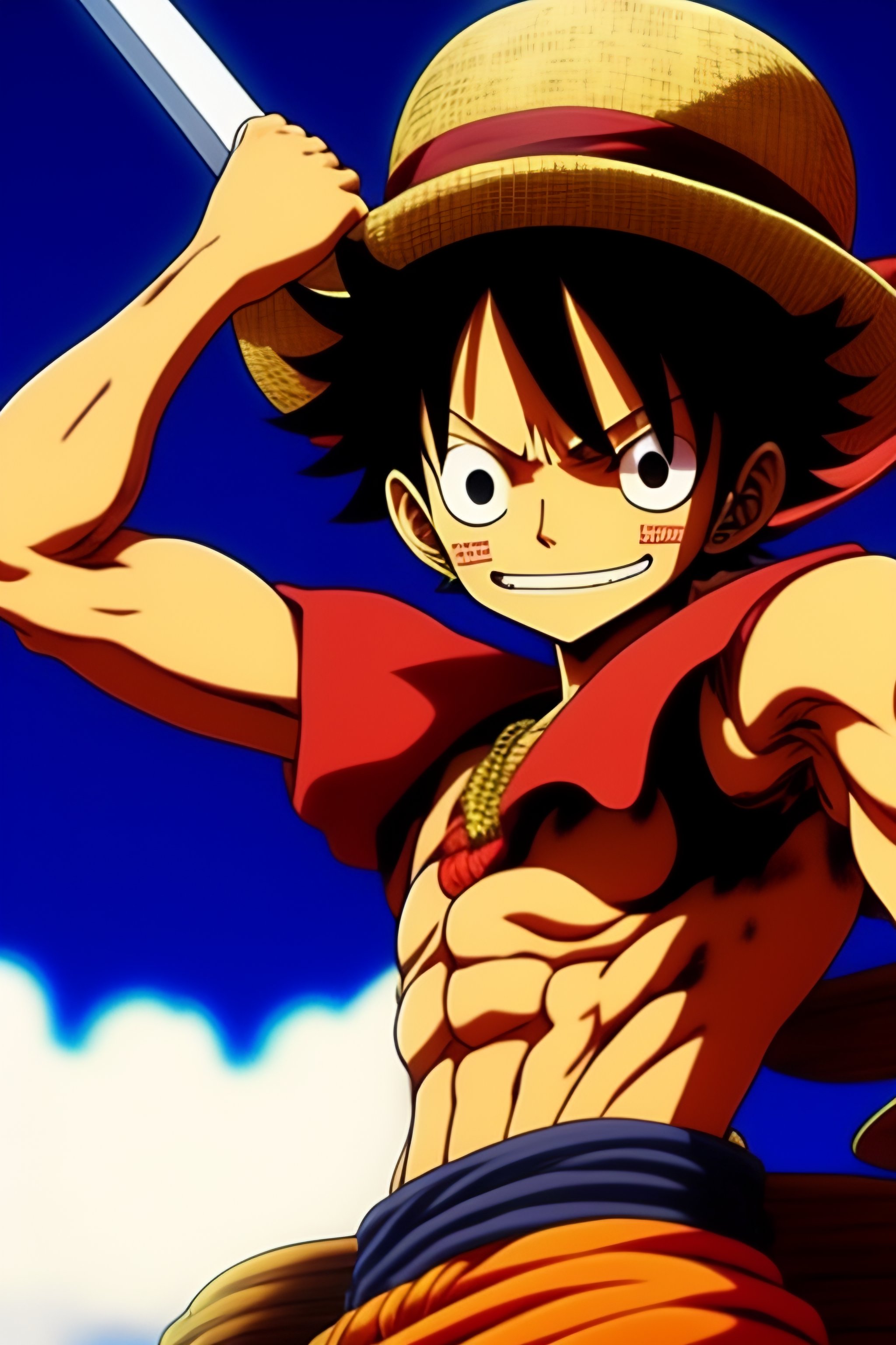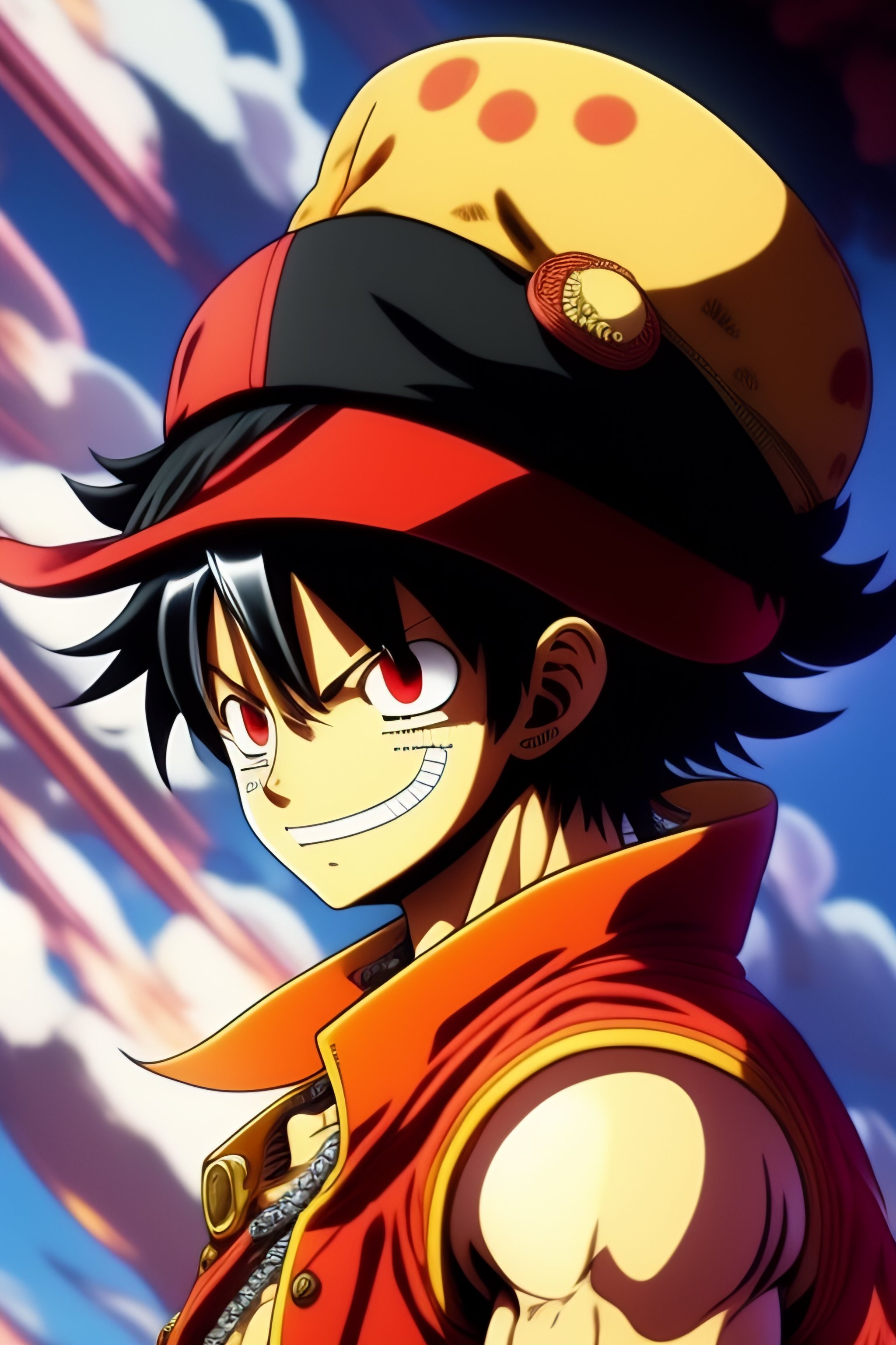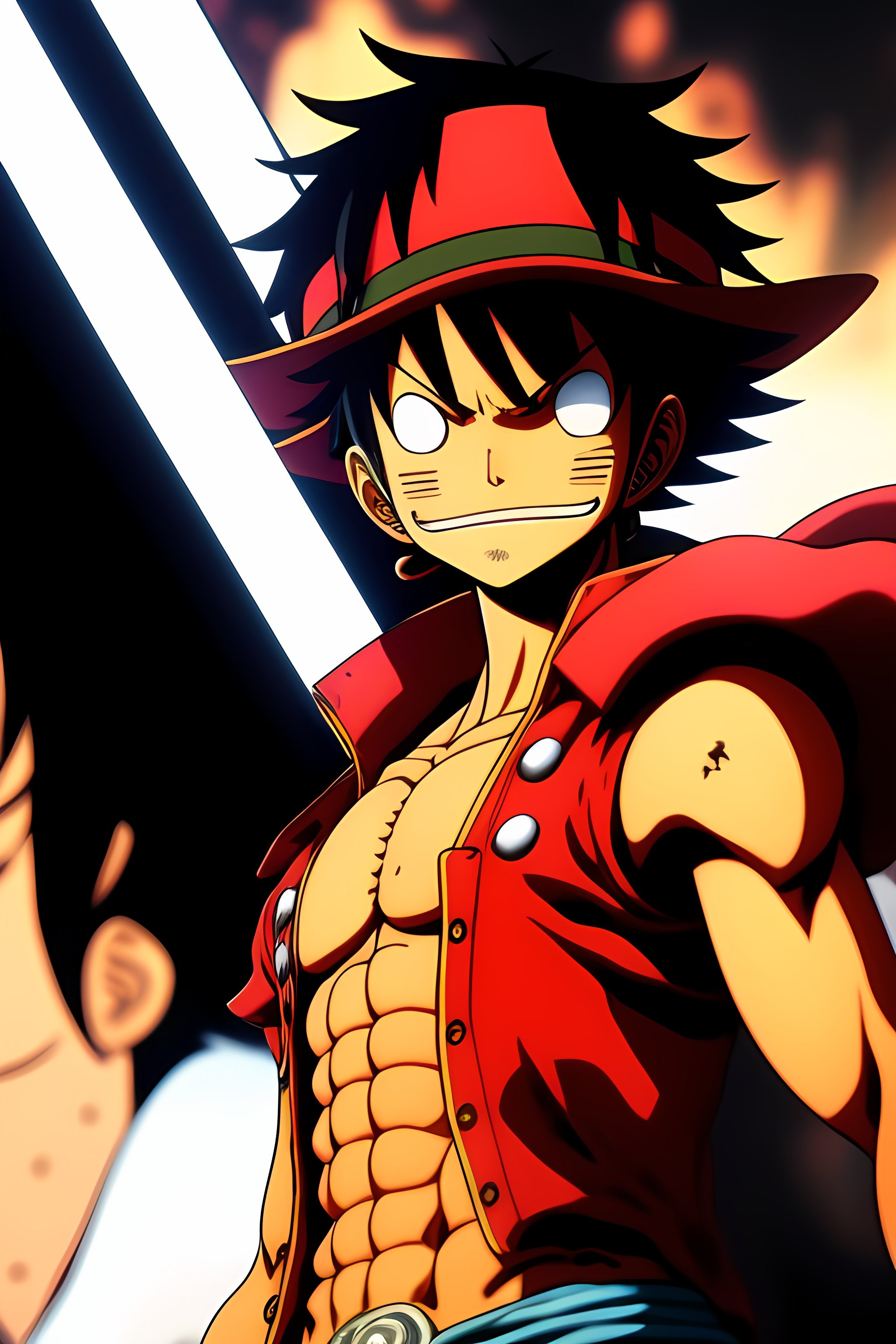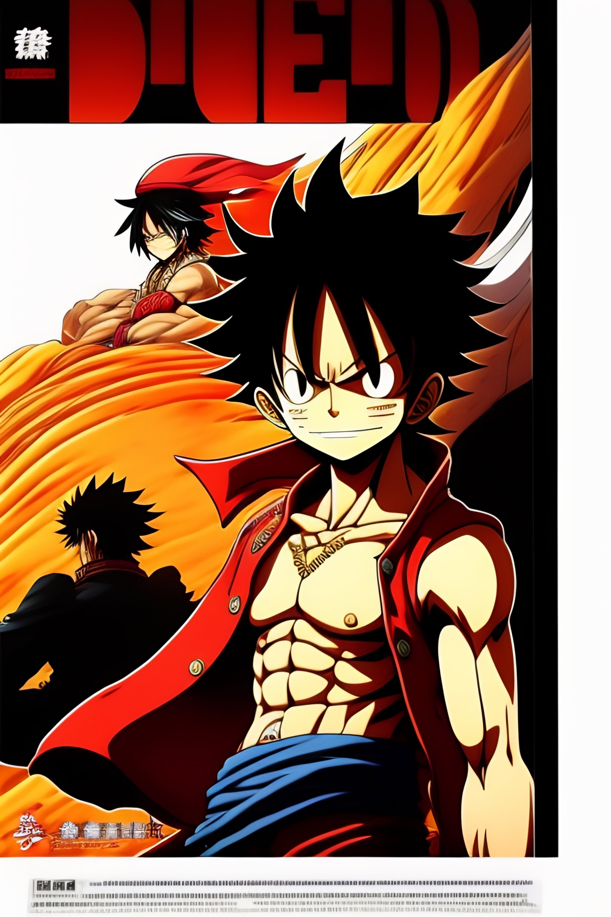 Monkey d luffy de one piece sur onigashima contre kaido en forme hybride dessiné comme yoshihiro togashi le mangaka japonais
