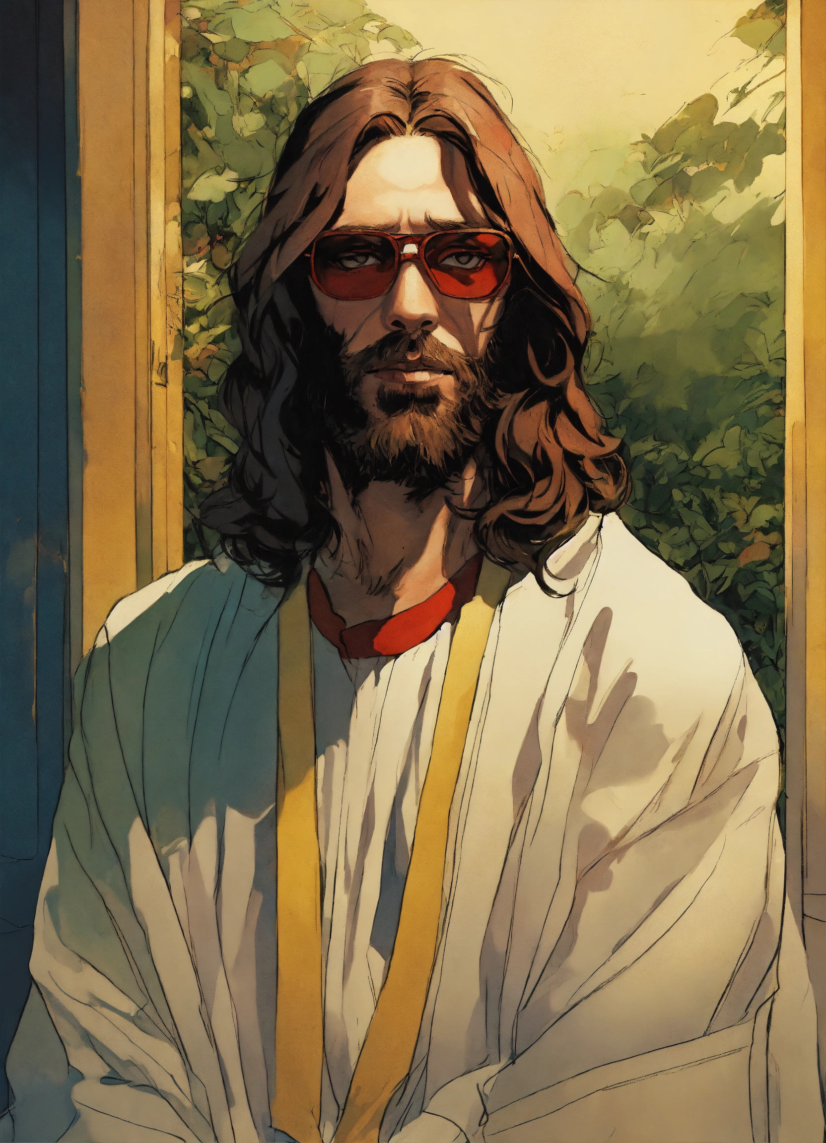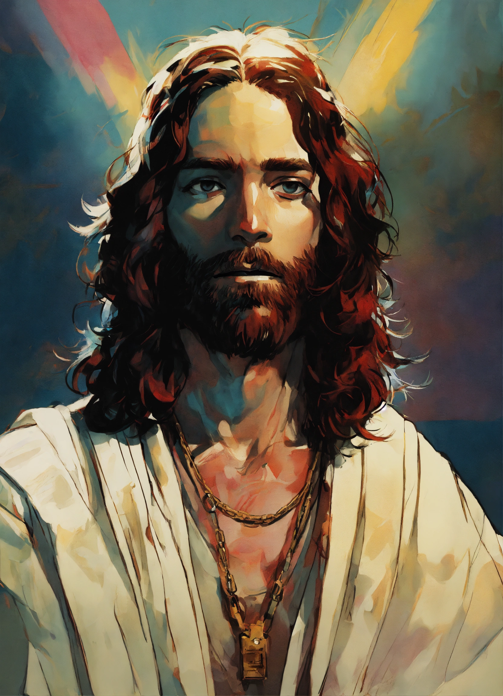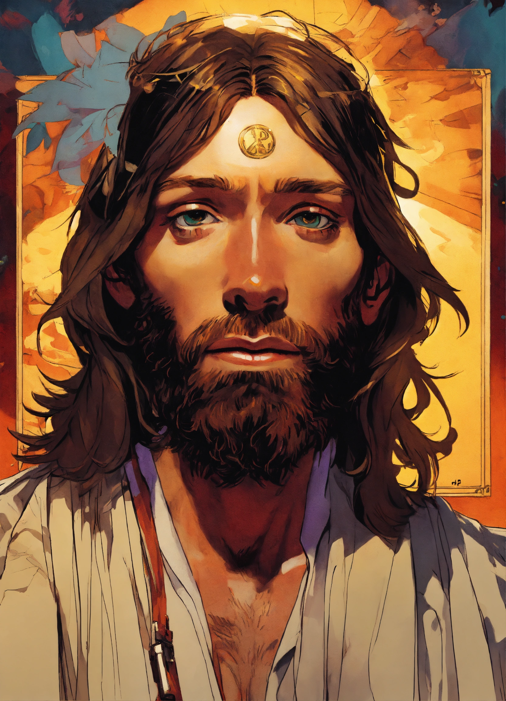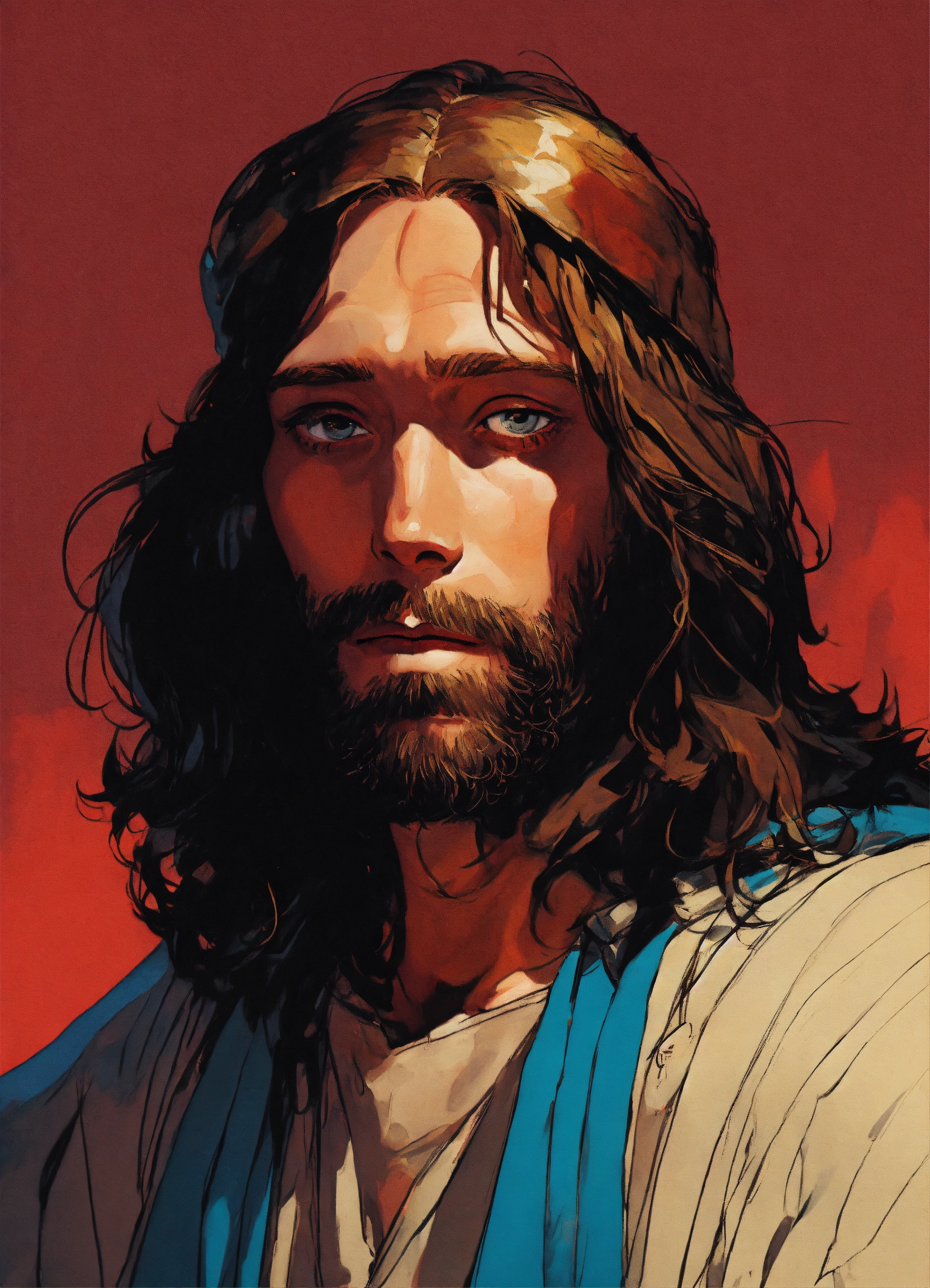 Jesus portrait by jamie hewlett, manga style, concept art by jamie hewlett, jamie hewl, ape nft style