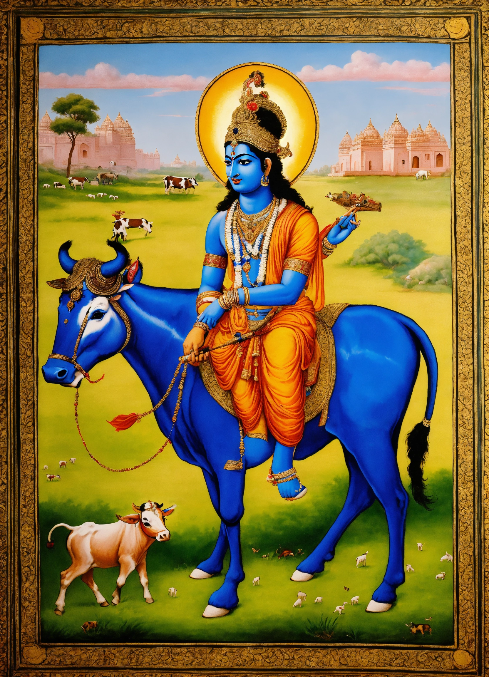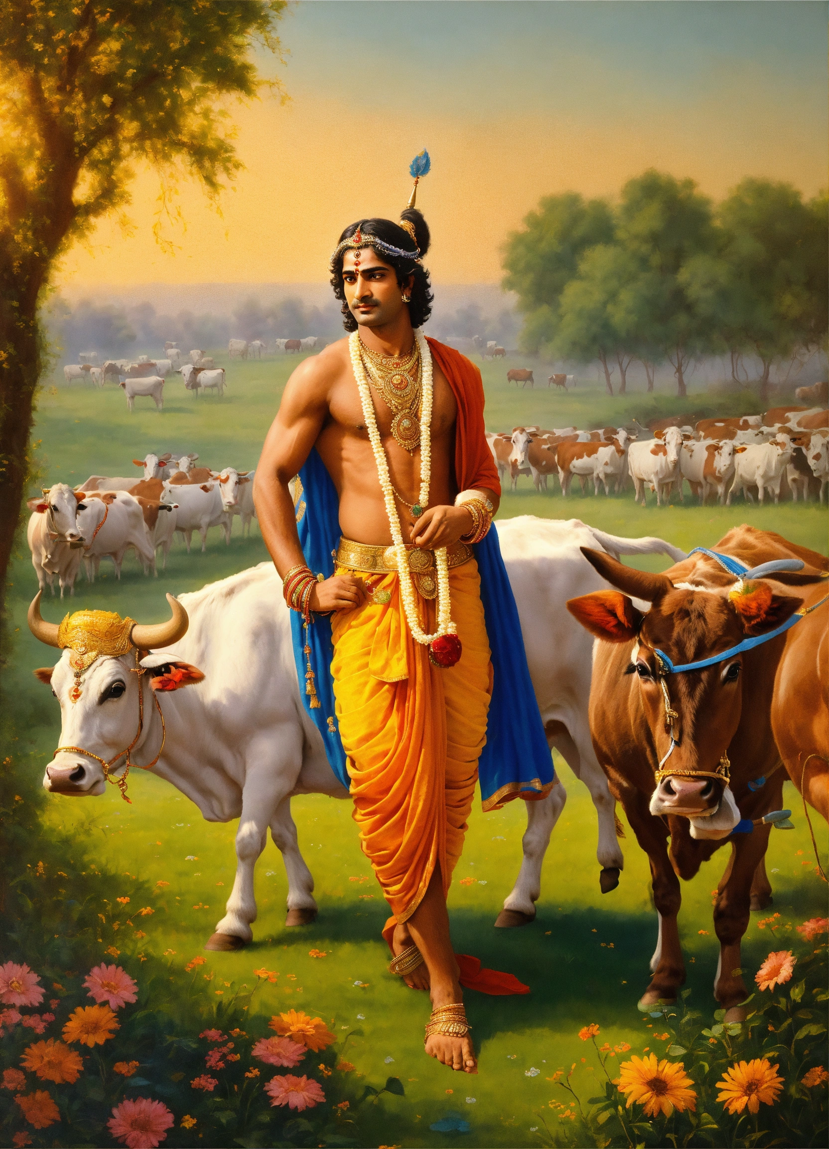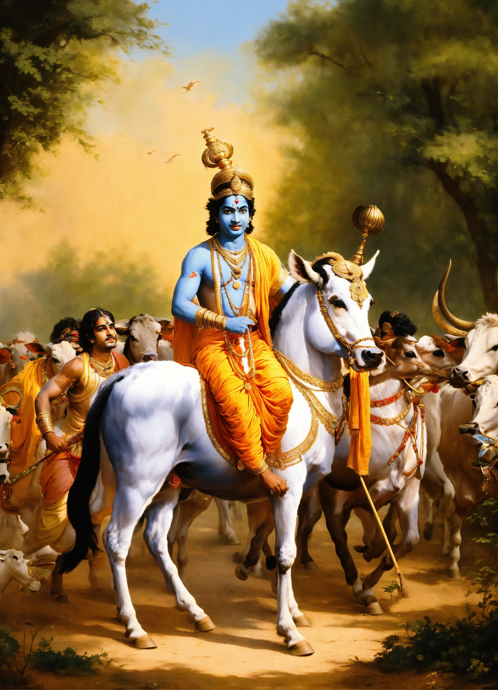 Another popular portrayal shows krishna as a young cowherd, often seen herding cows or frolicking with his cowherd friends in the idyllic pastures of vrindavan. krishna as a warrior in his role as arjuna's charioteer in the bhagavad gita, krishna is