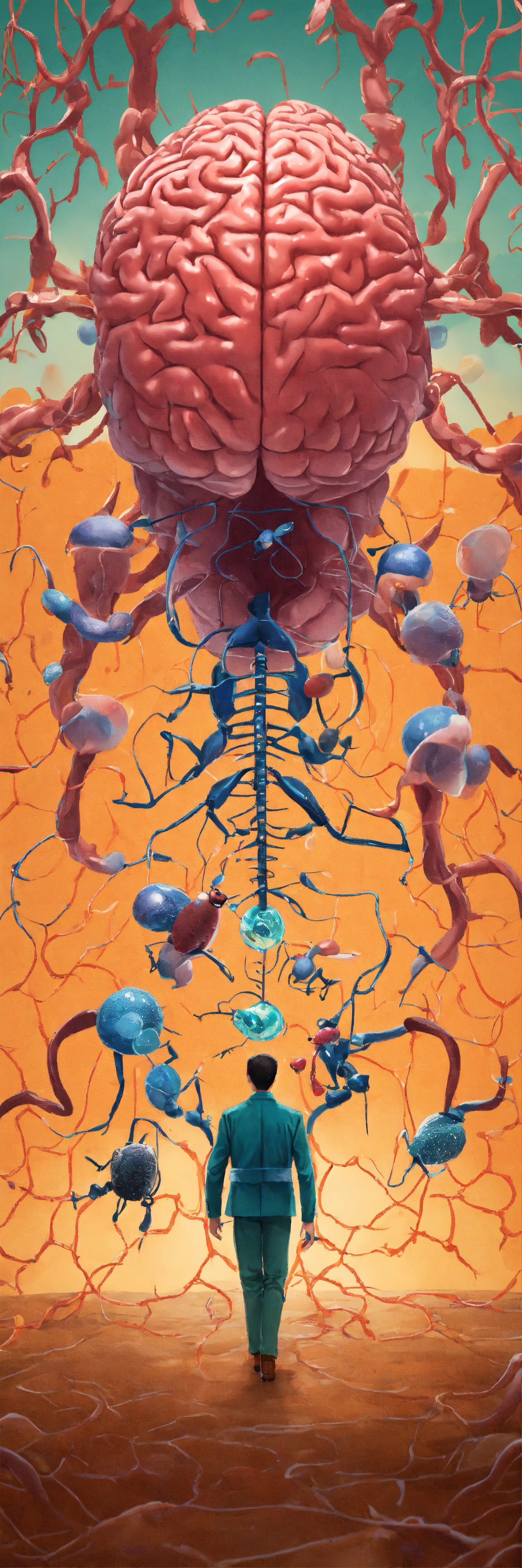 Illustration researcher of brain ant gut interlinked