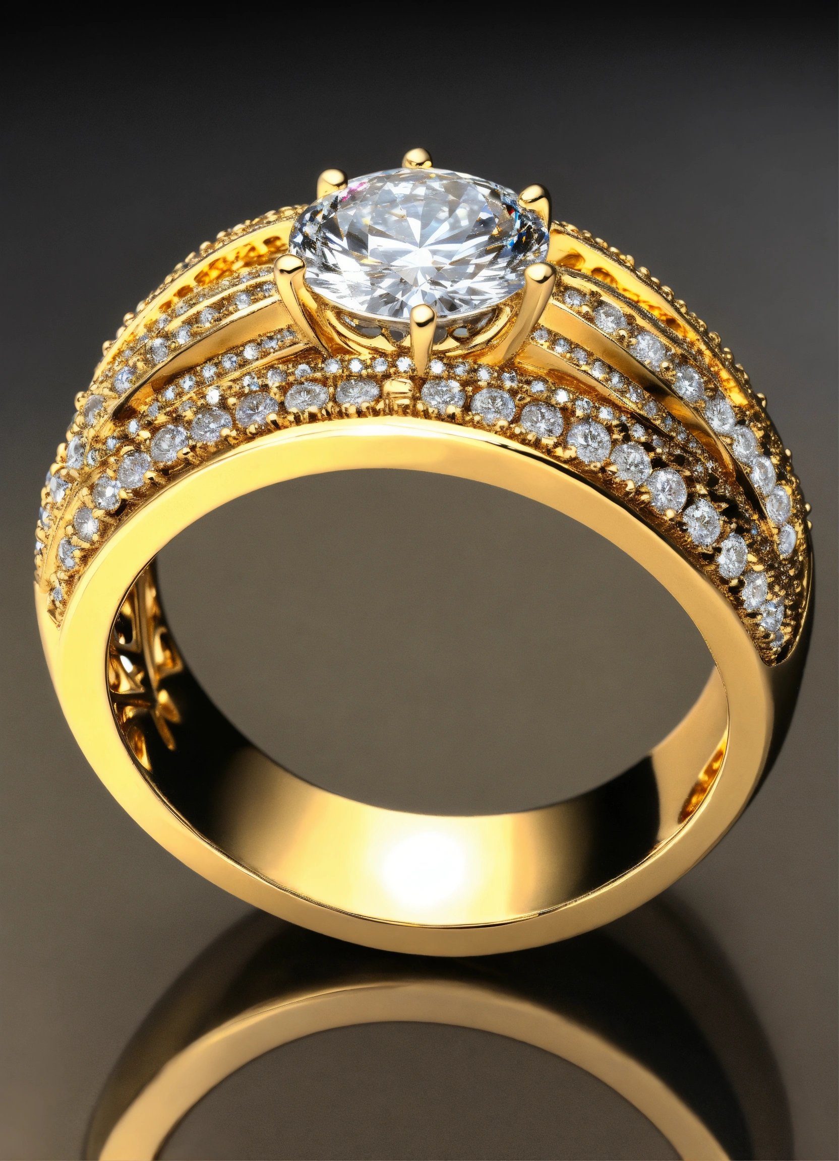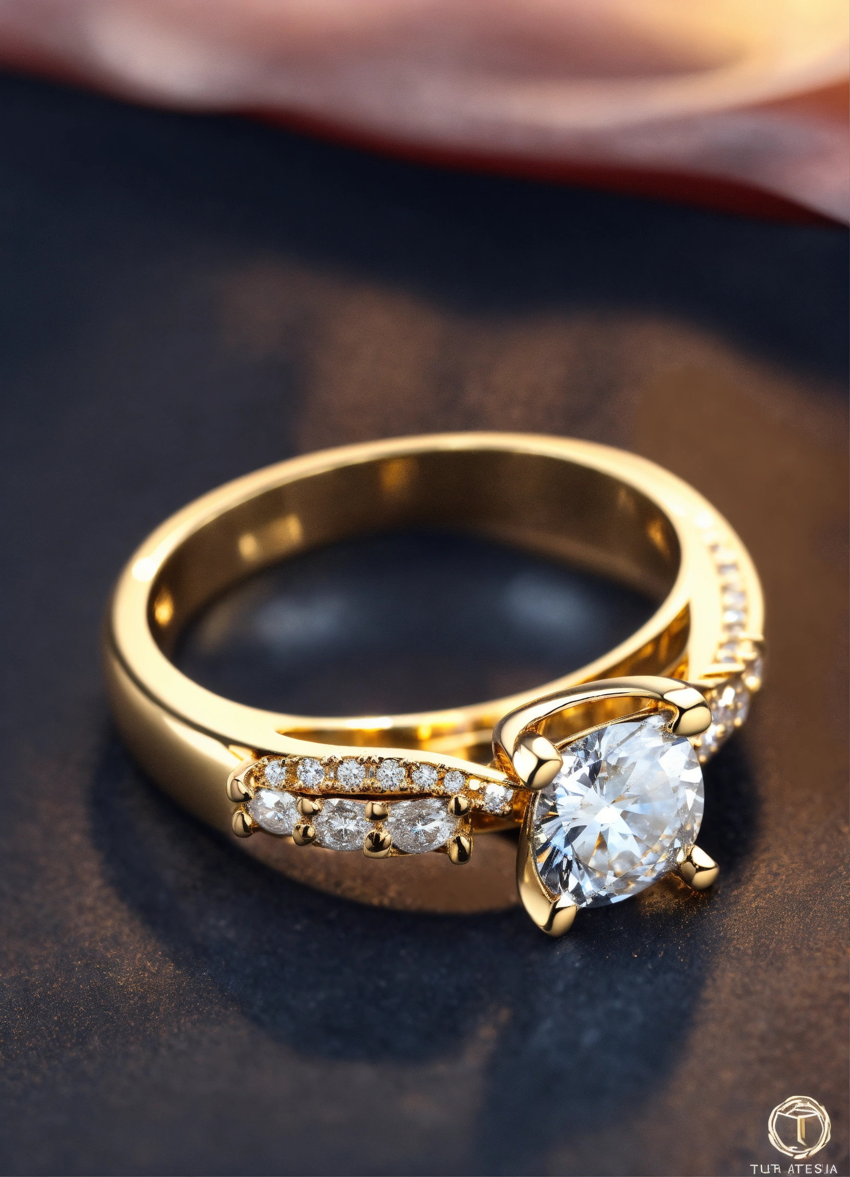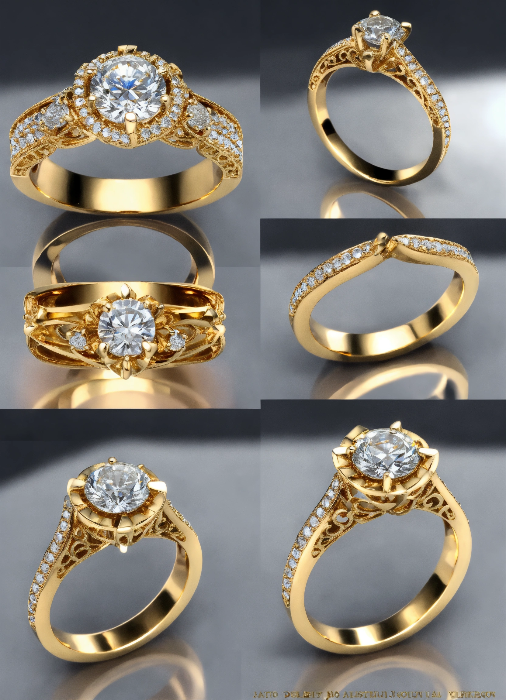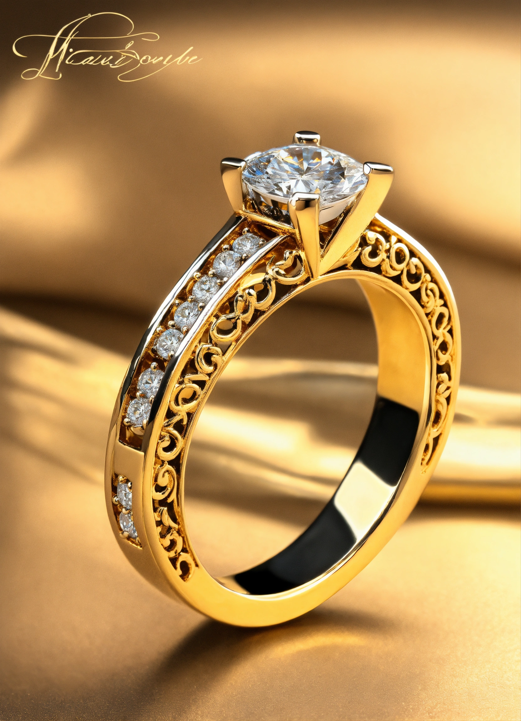 Jewellery design, vintage style, create diamond gold ring with matte finish in prong setting, default-theme, --product-view --ultra-quality