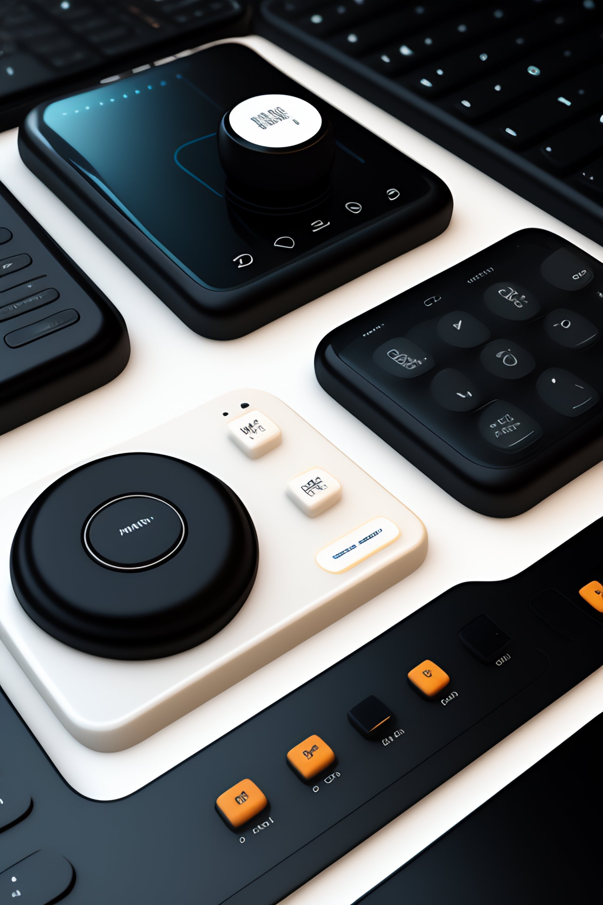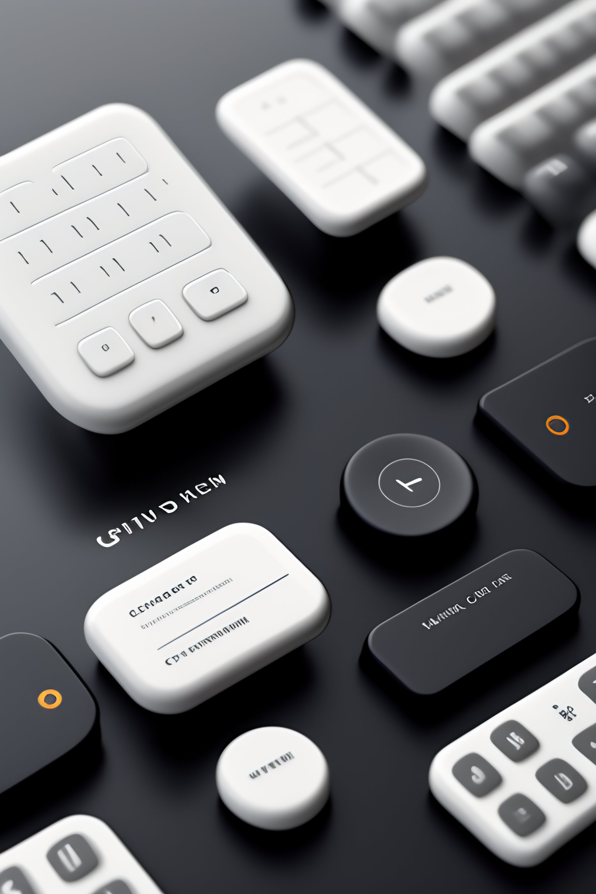 Buttons panel in dieter rams style with 3d wireframes