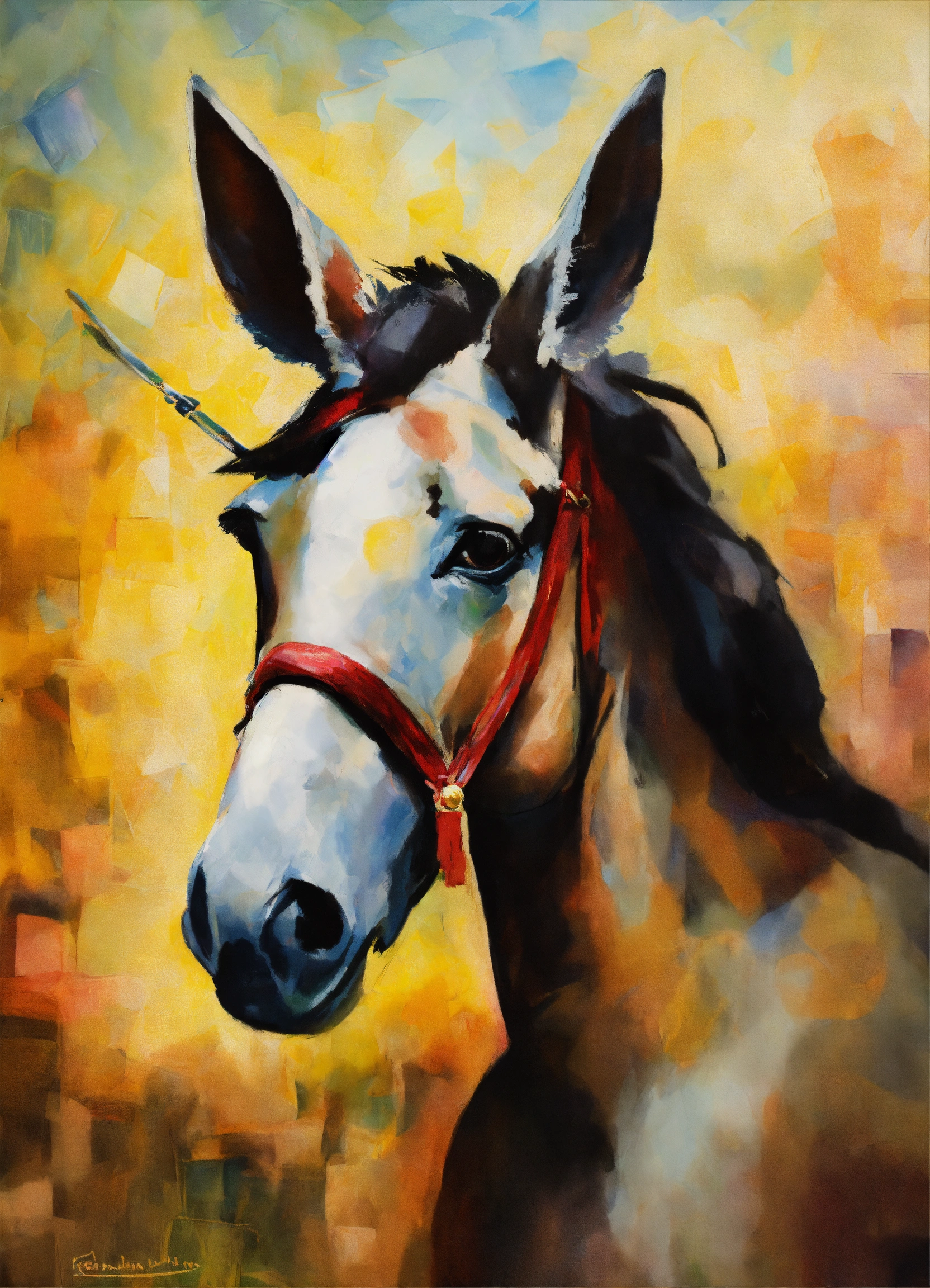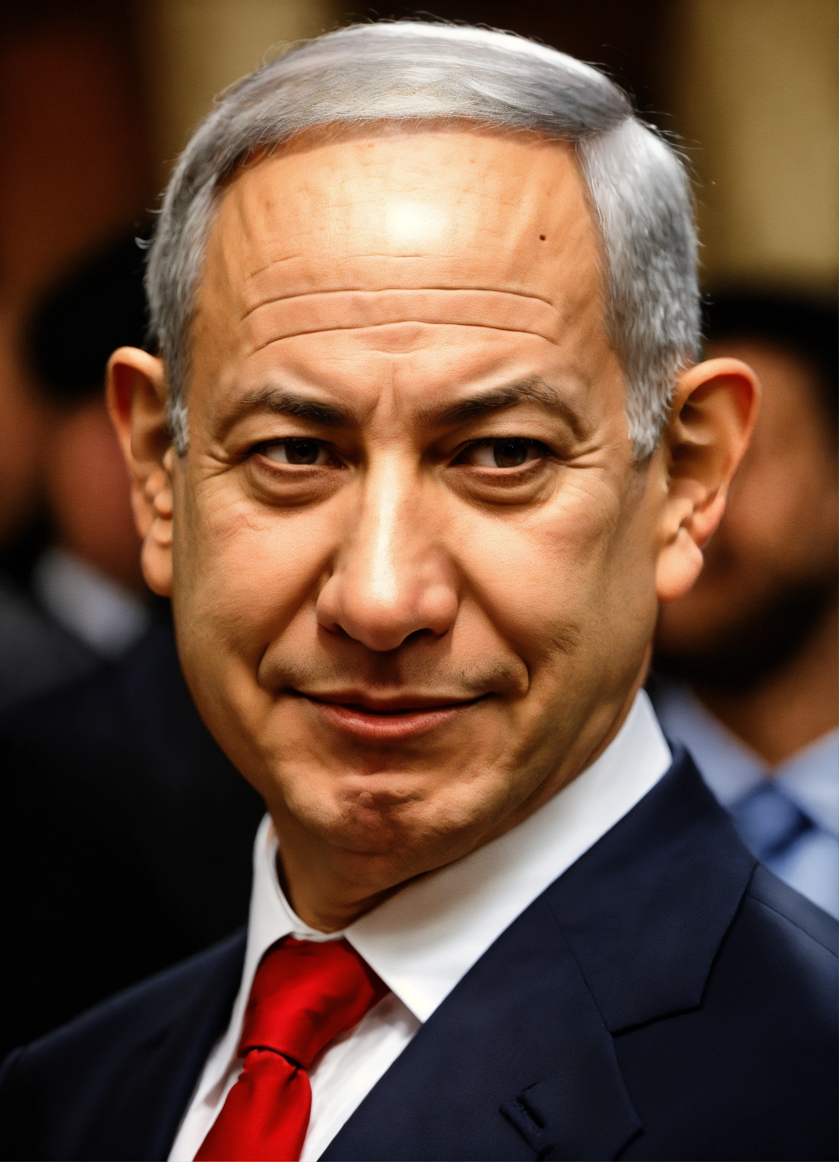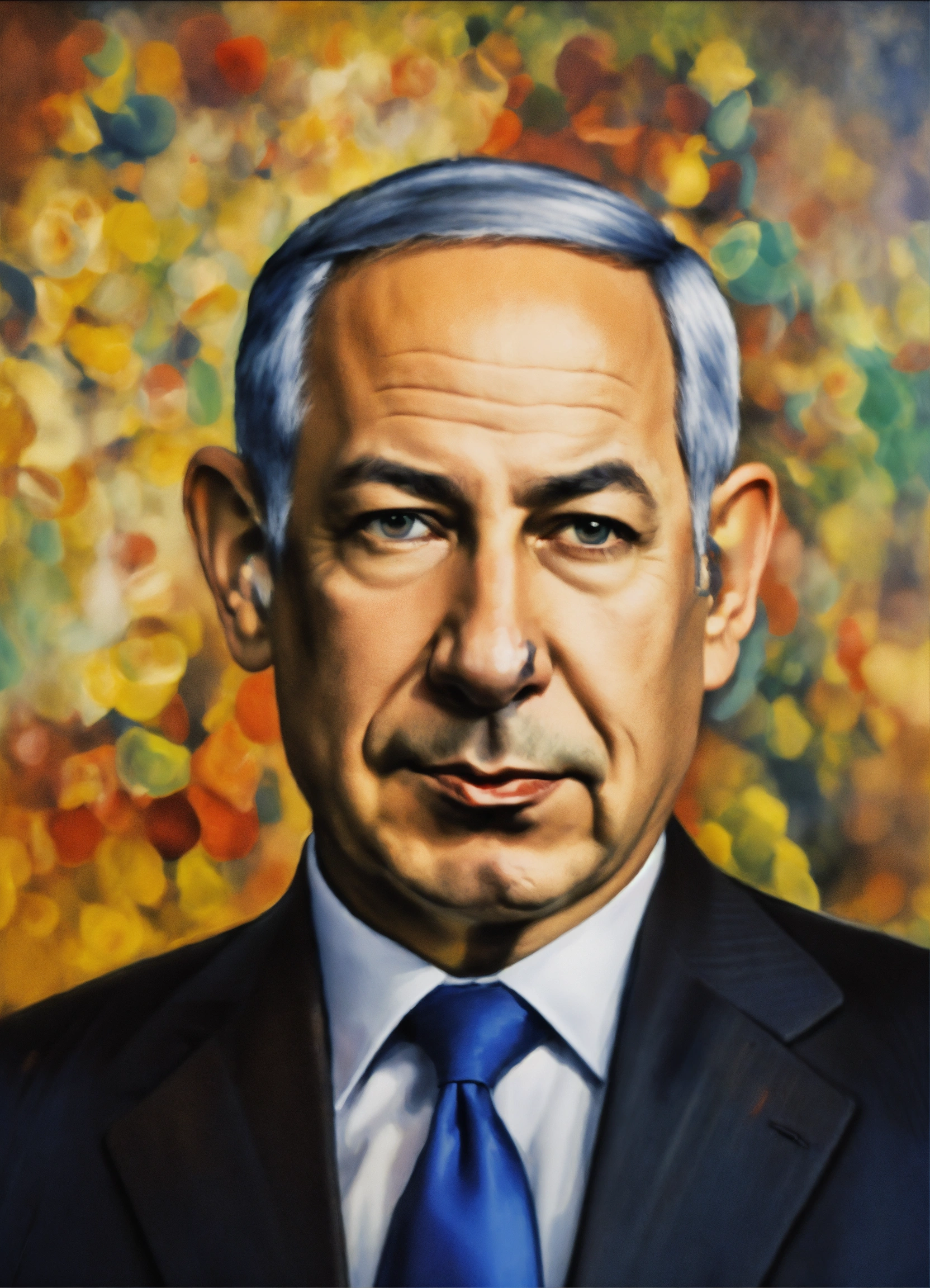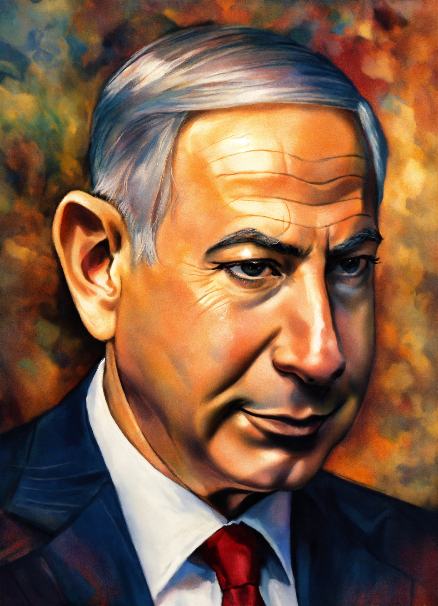 Binyamin netanyahu has a long nose like pinocchio, the liar, and a donkey's ears and tail, impressionist style.
