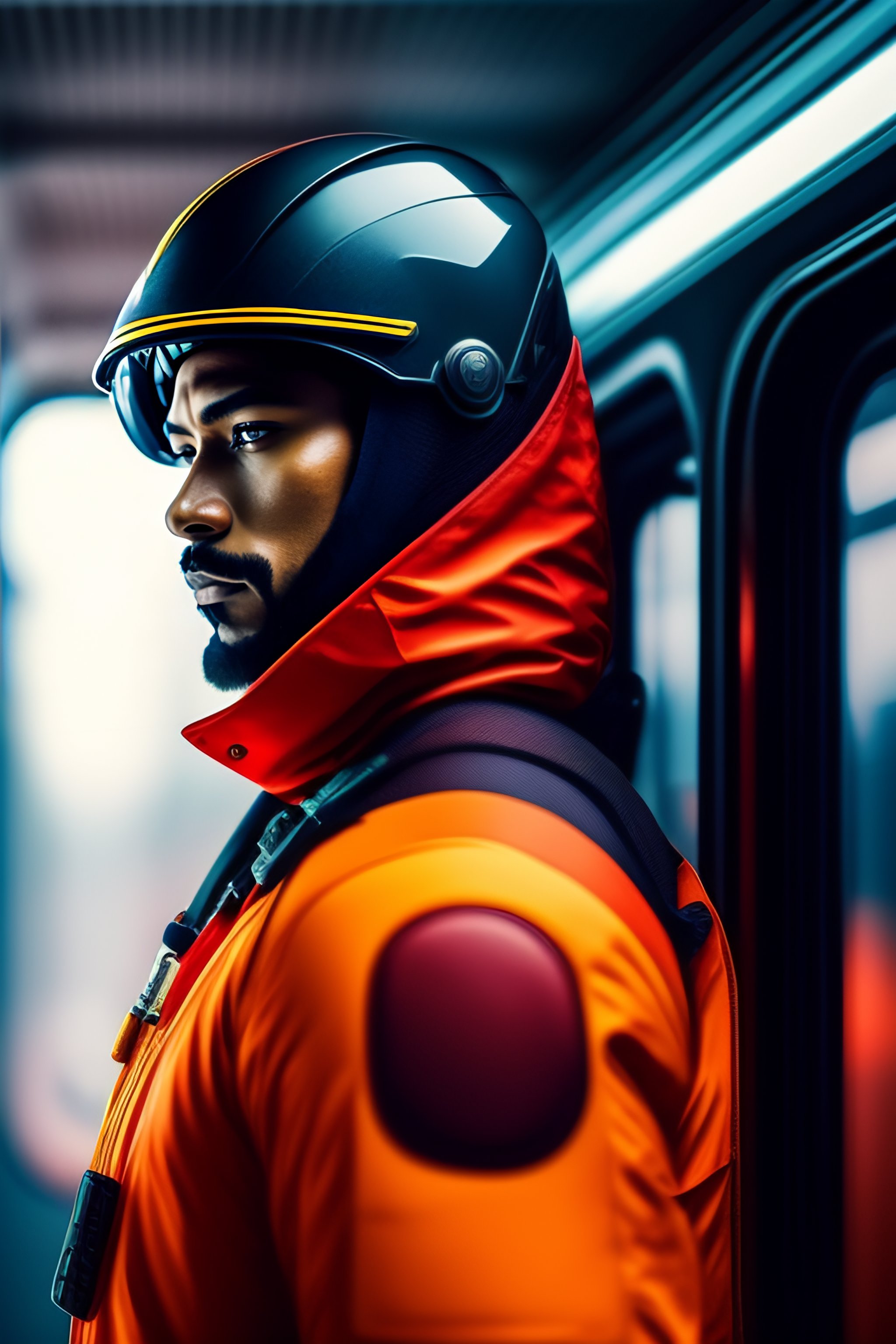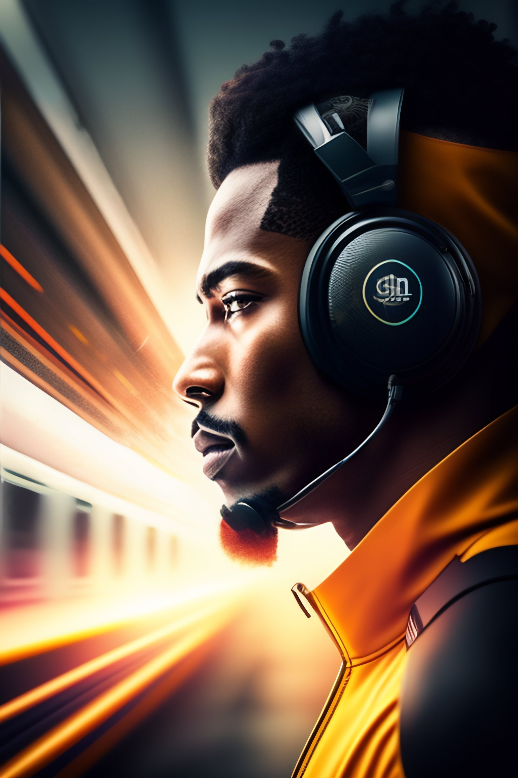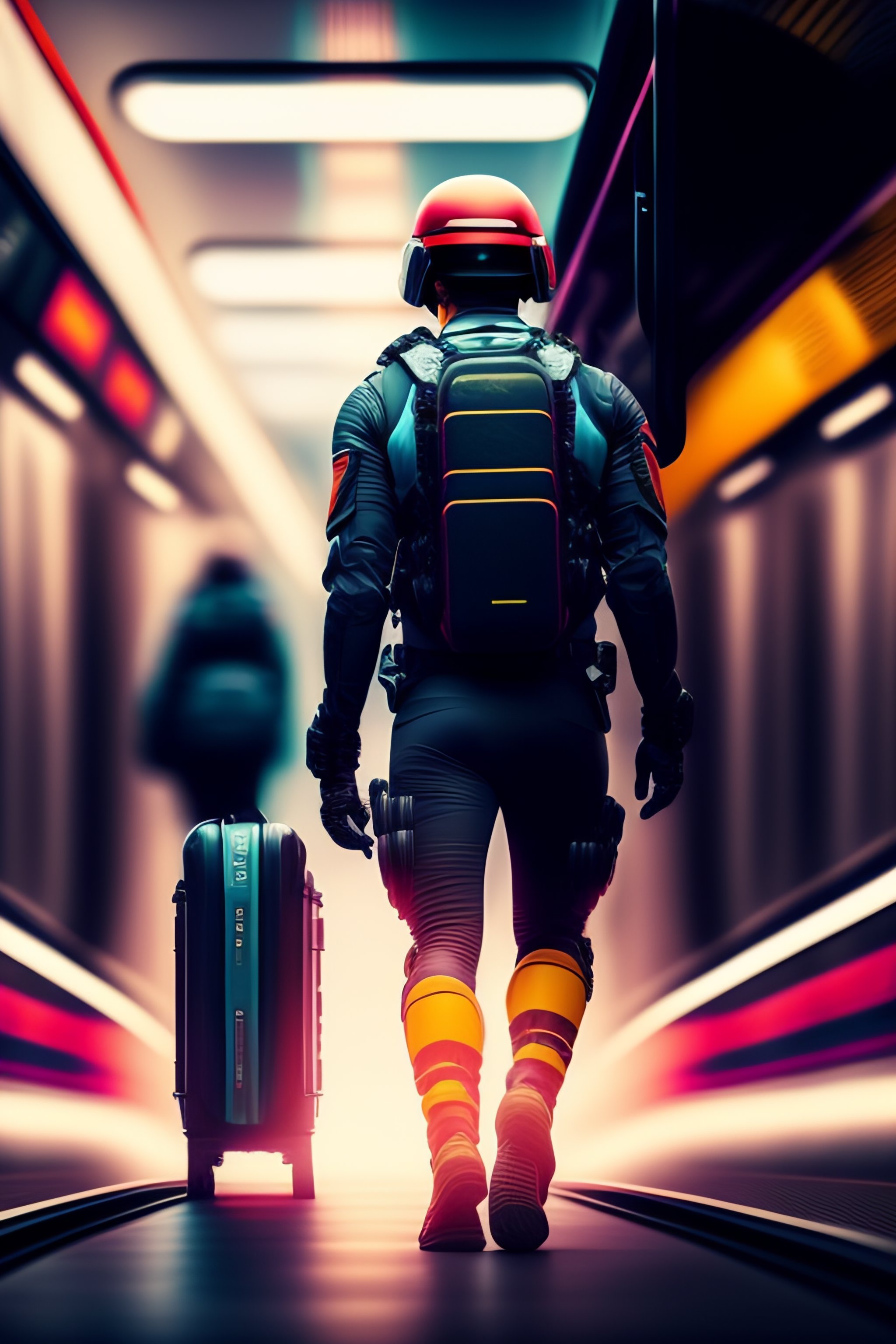 Un personnage futuriste en armure avec un casque en train de courir avec une trainé derrière luis et en train de combatre