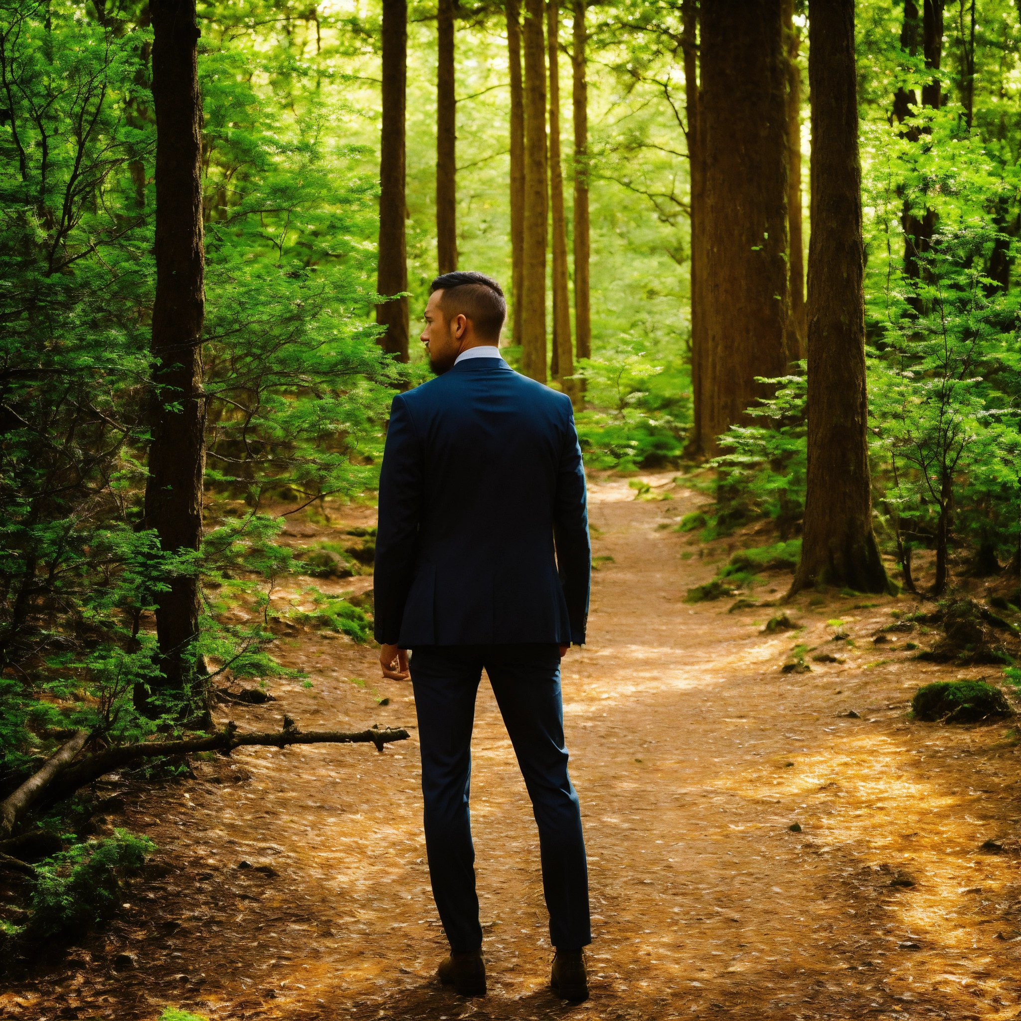 Men in forest rever