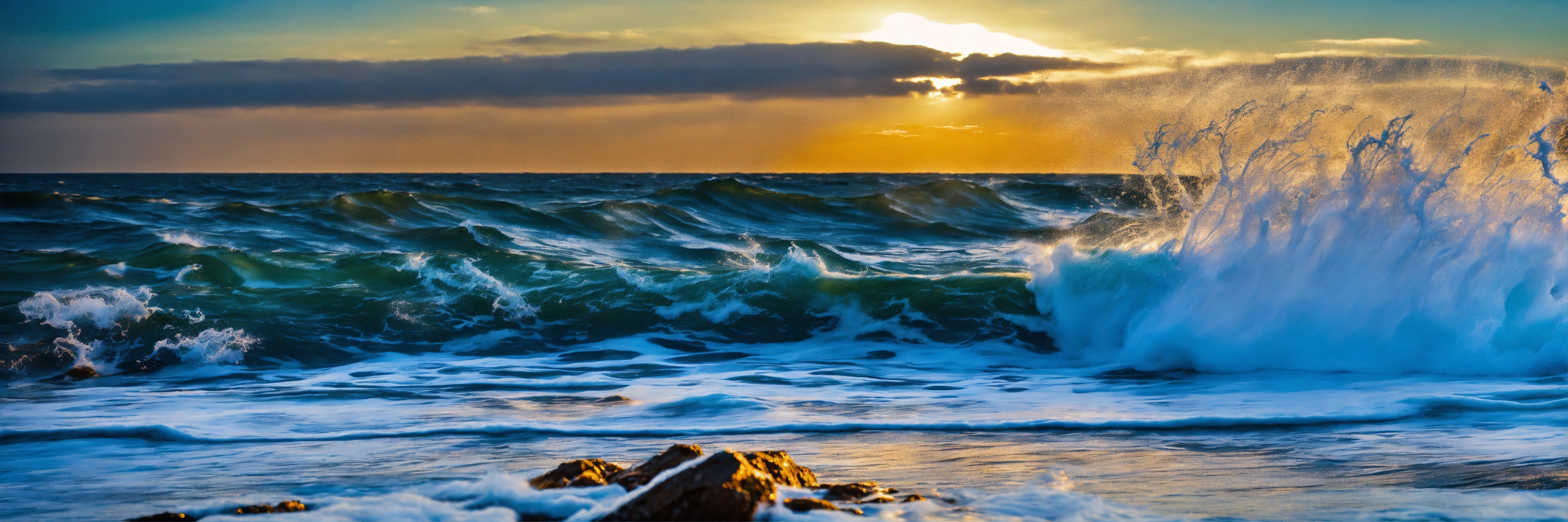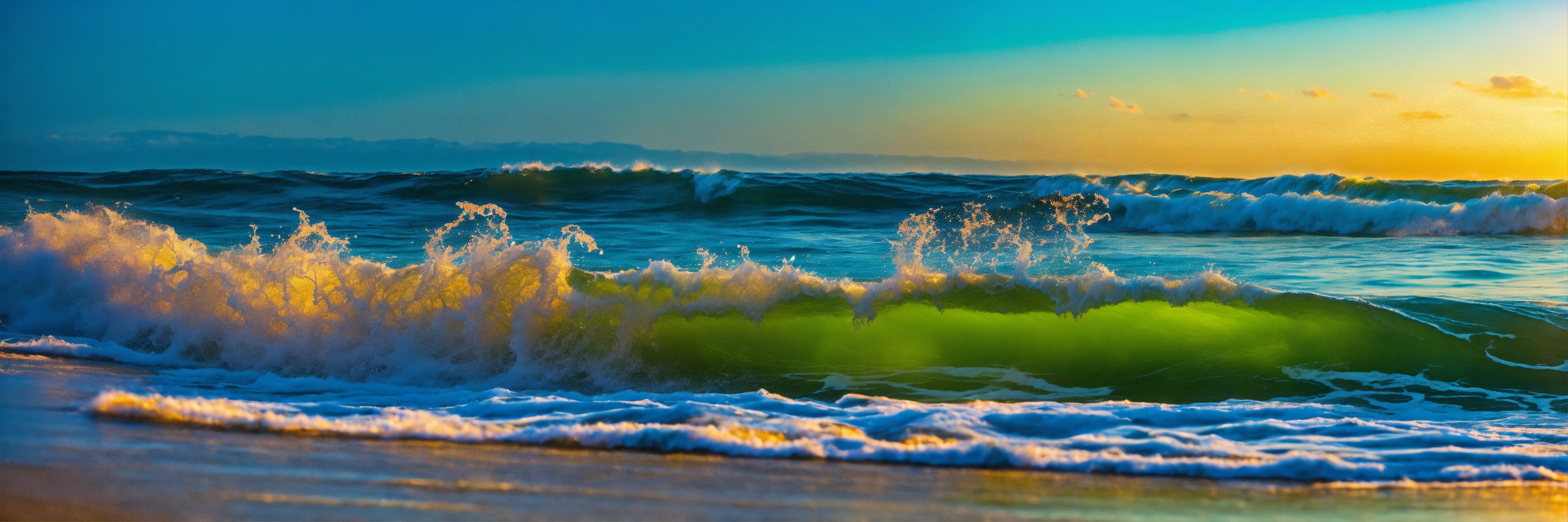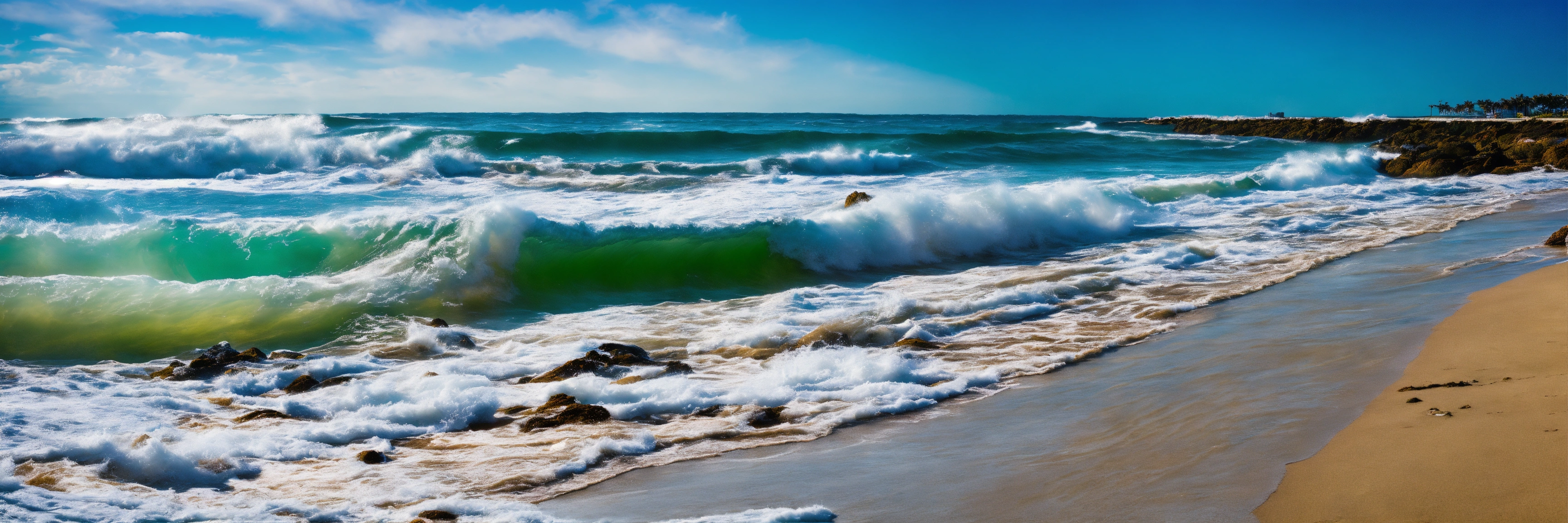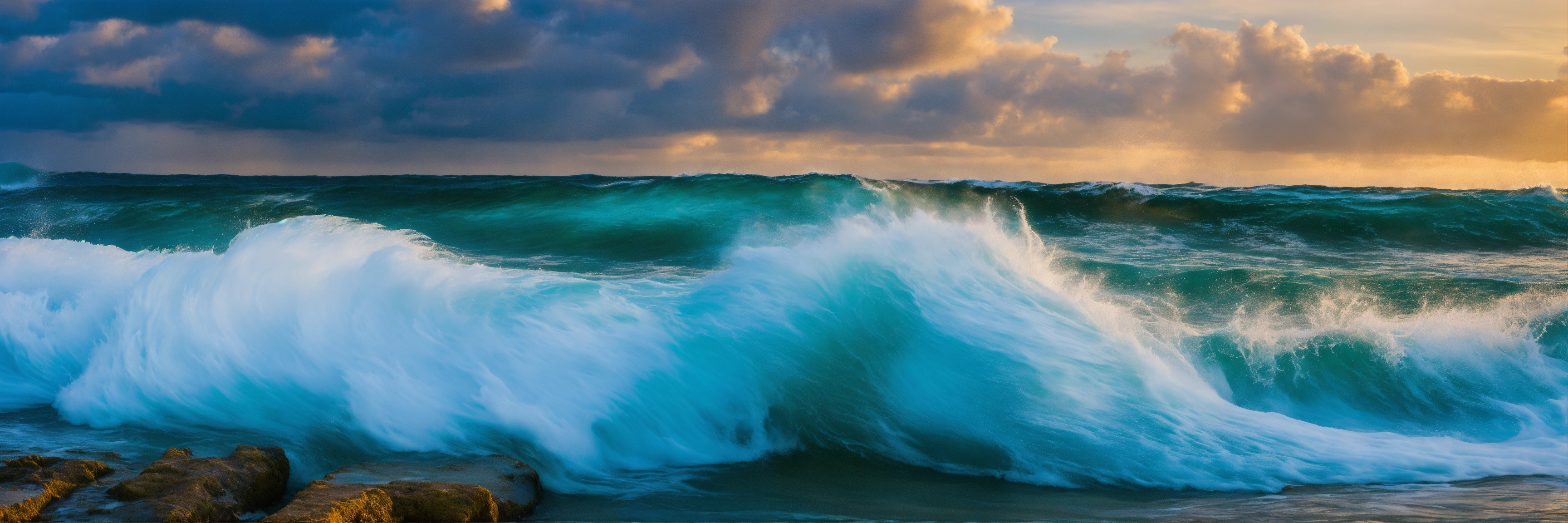 Sea waves rolling onto the shore close-up a lot of foam the color blue in the background the sky fineart pictures