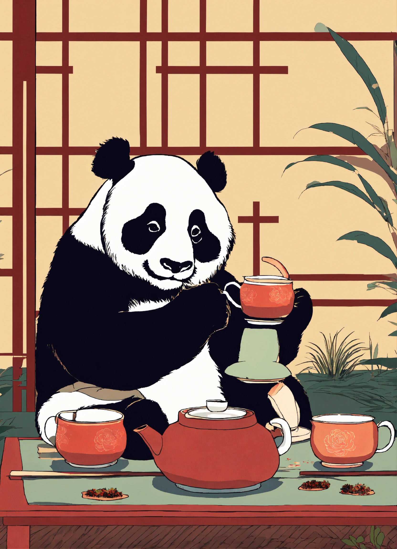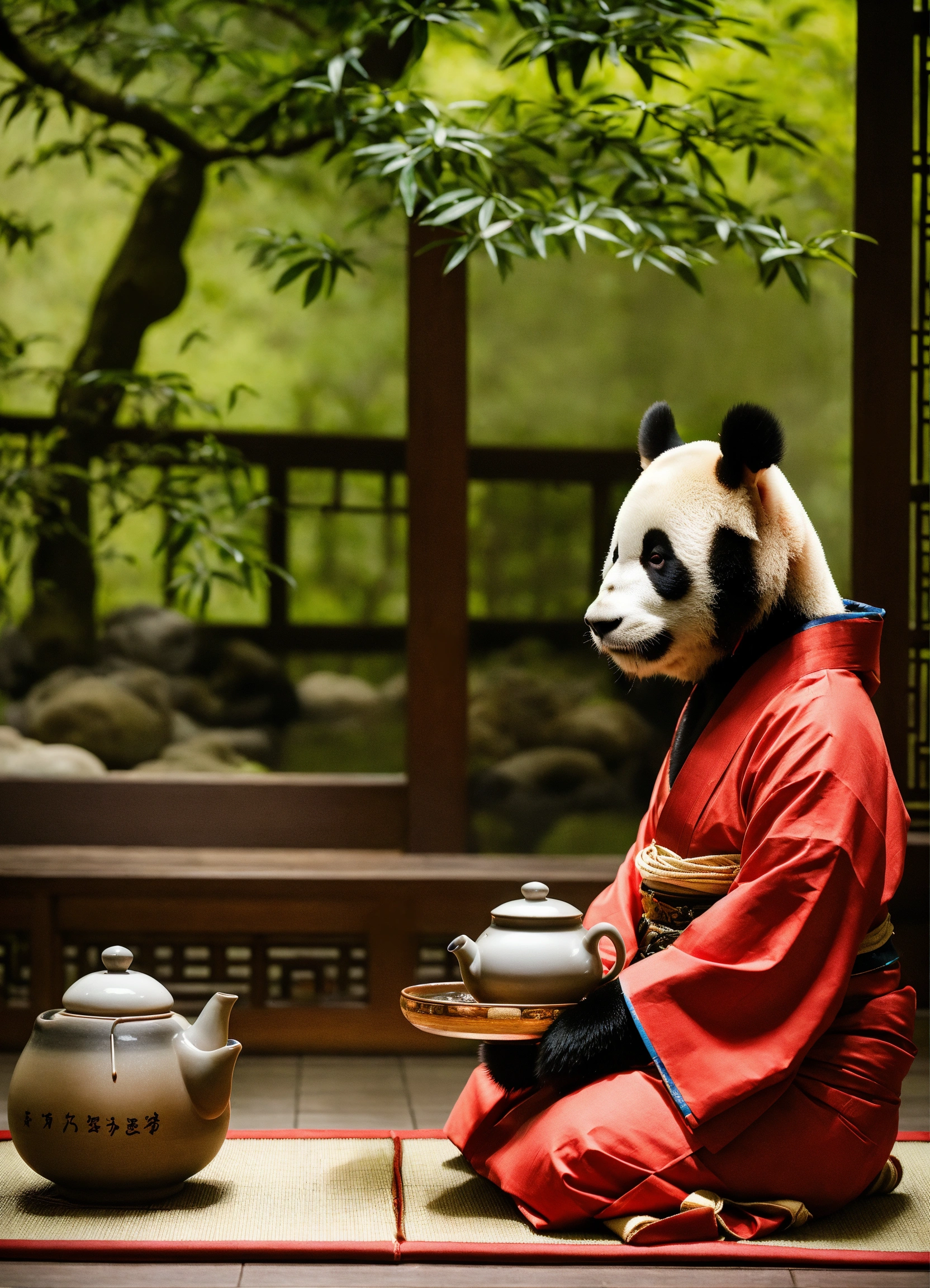 Partake in a traditional tea ceremony hosted by pandas, a reflection of mindfulness and appreciation for the present moment.
