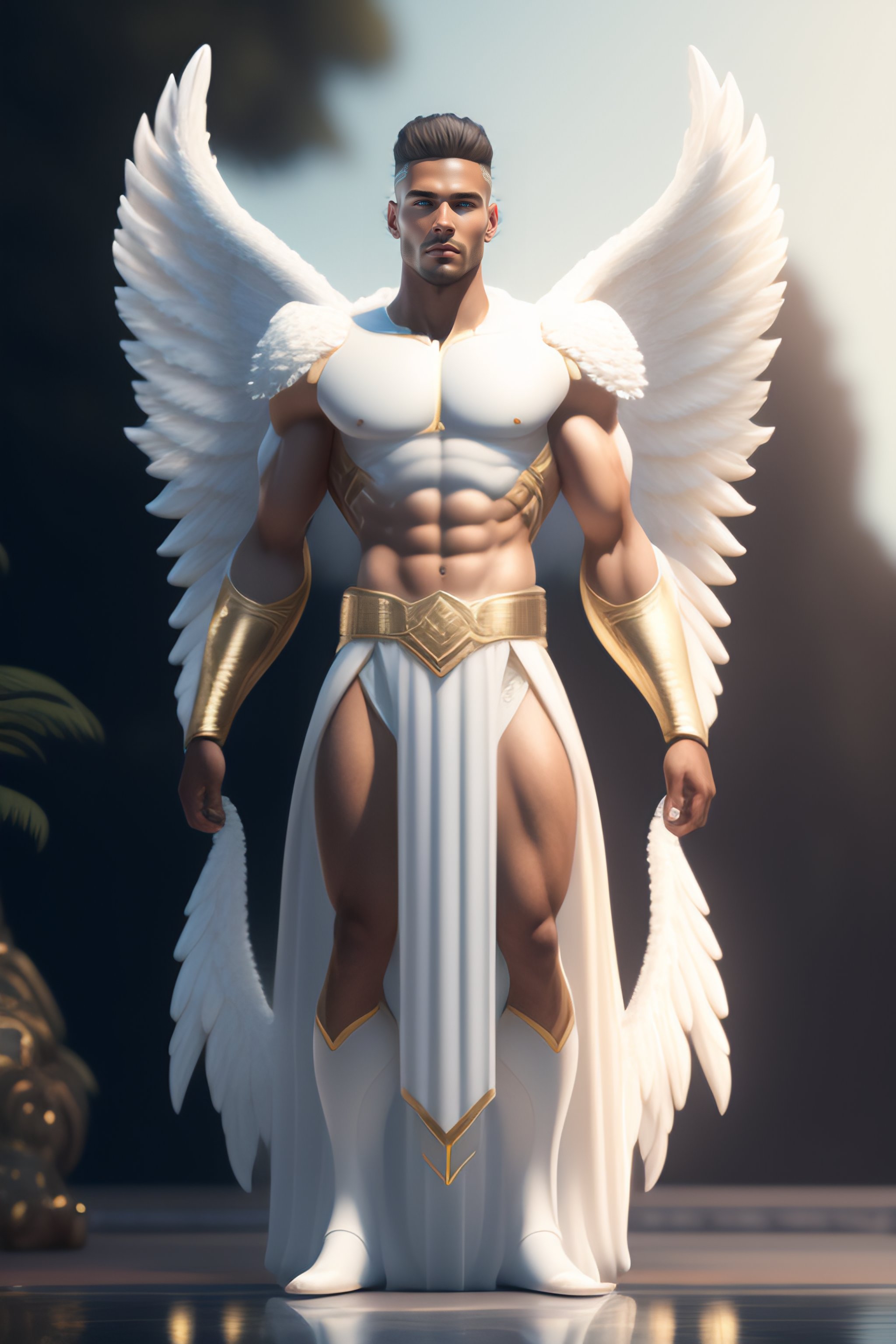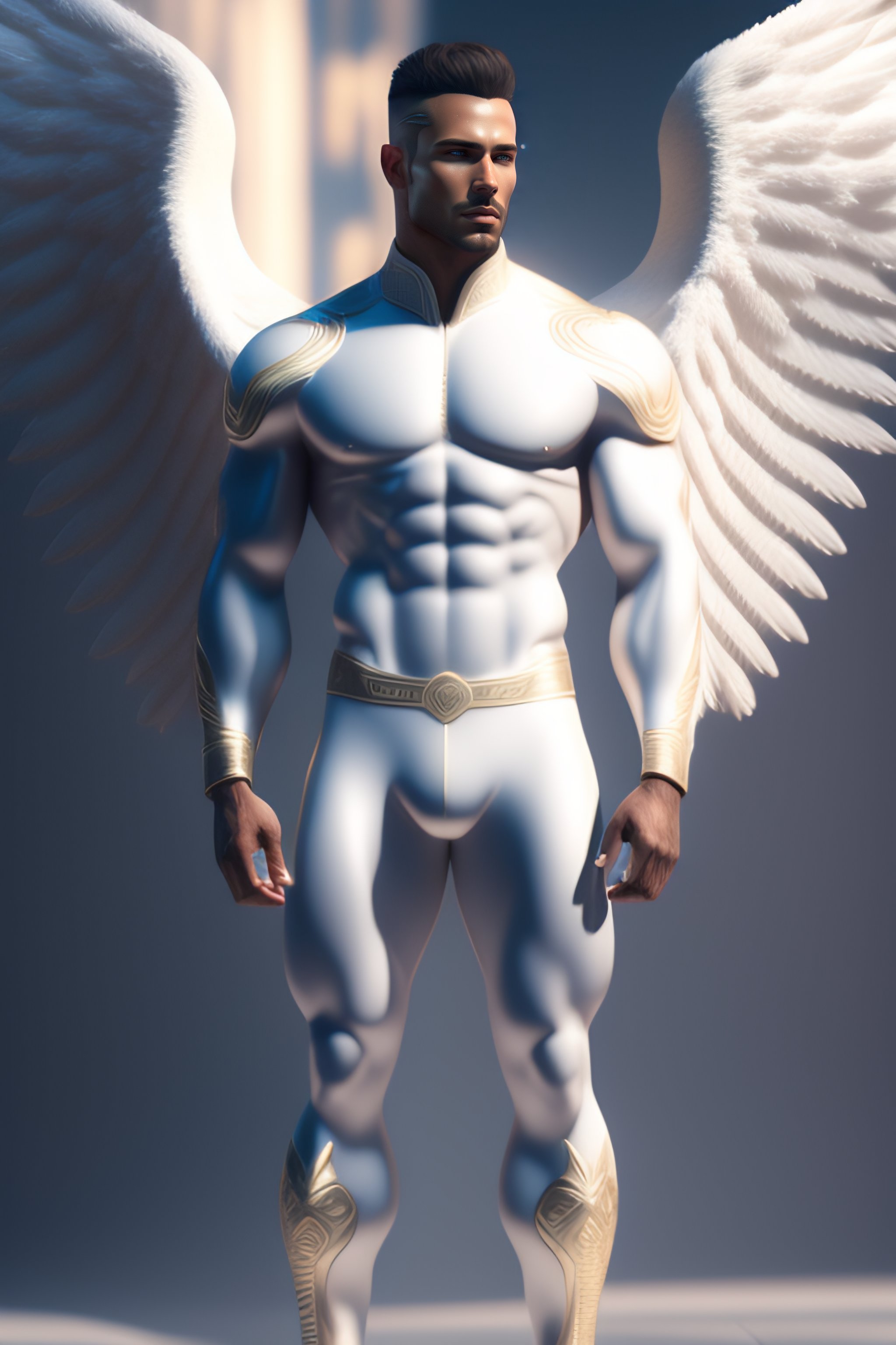 Highly detailed full body shot illustration of white male angel micheal, detailed face, symmetrical, art by artgerm, global illumination, intricate environment, trend on artstation, octane render
