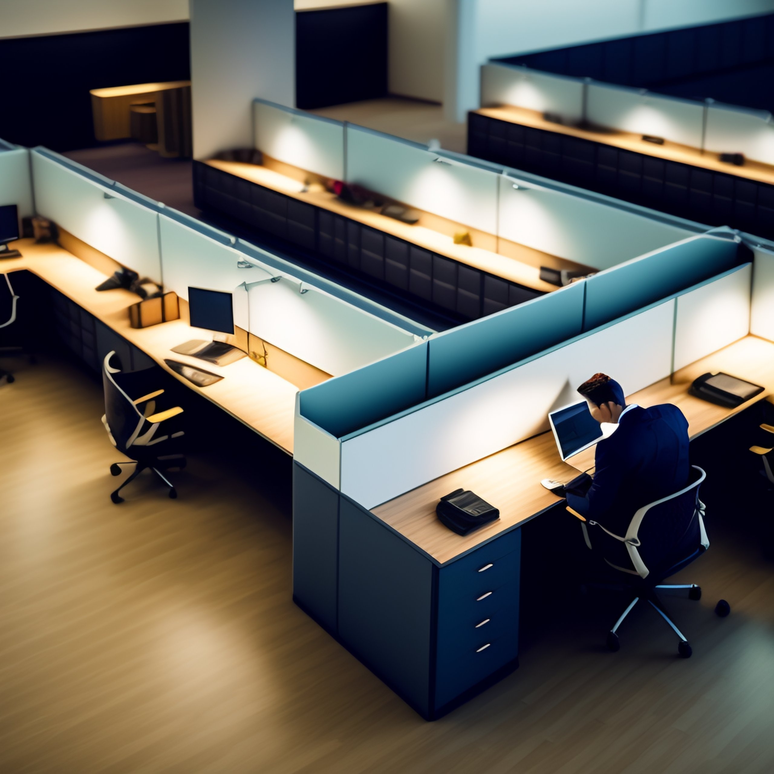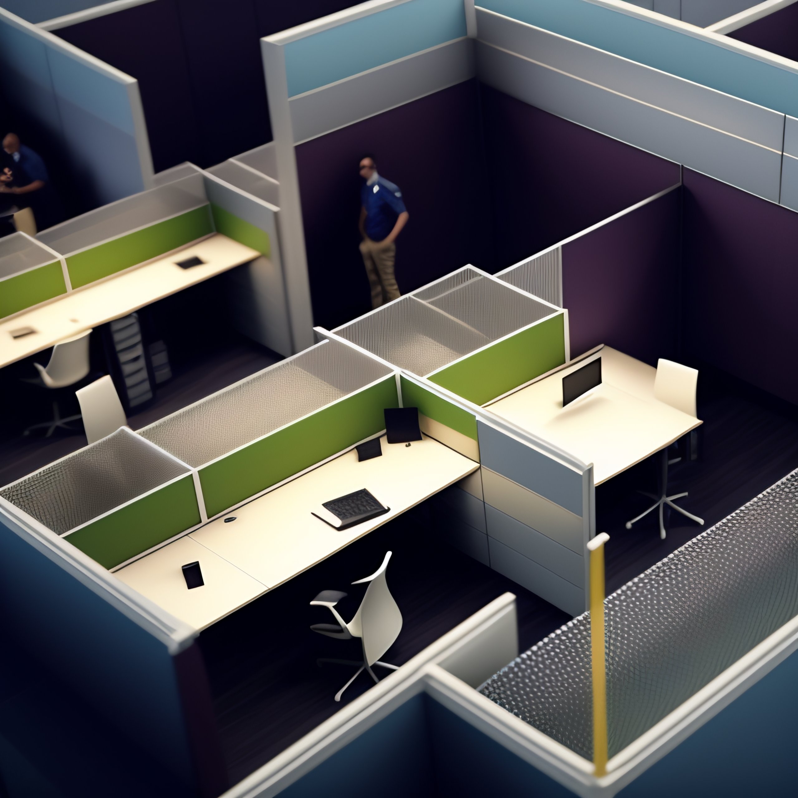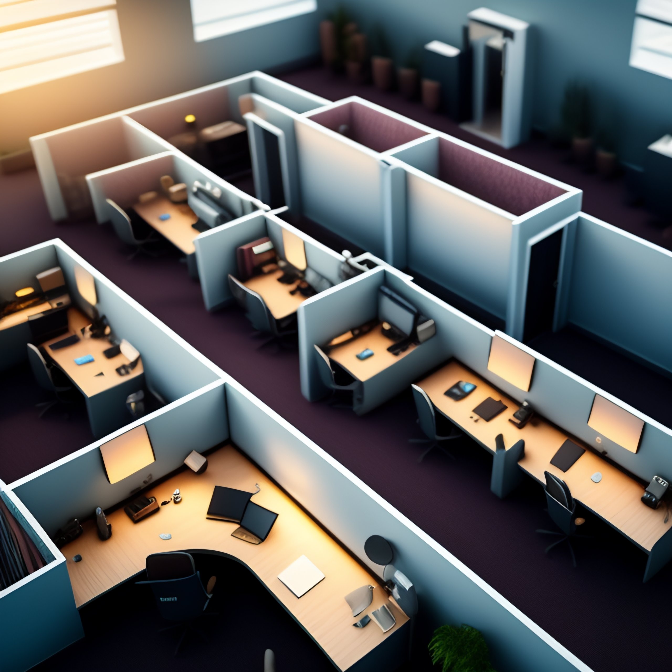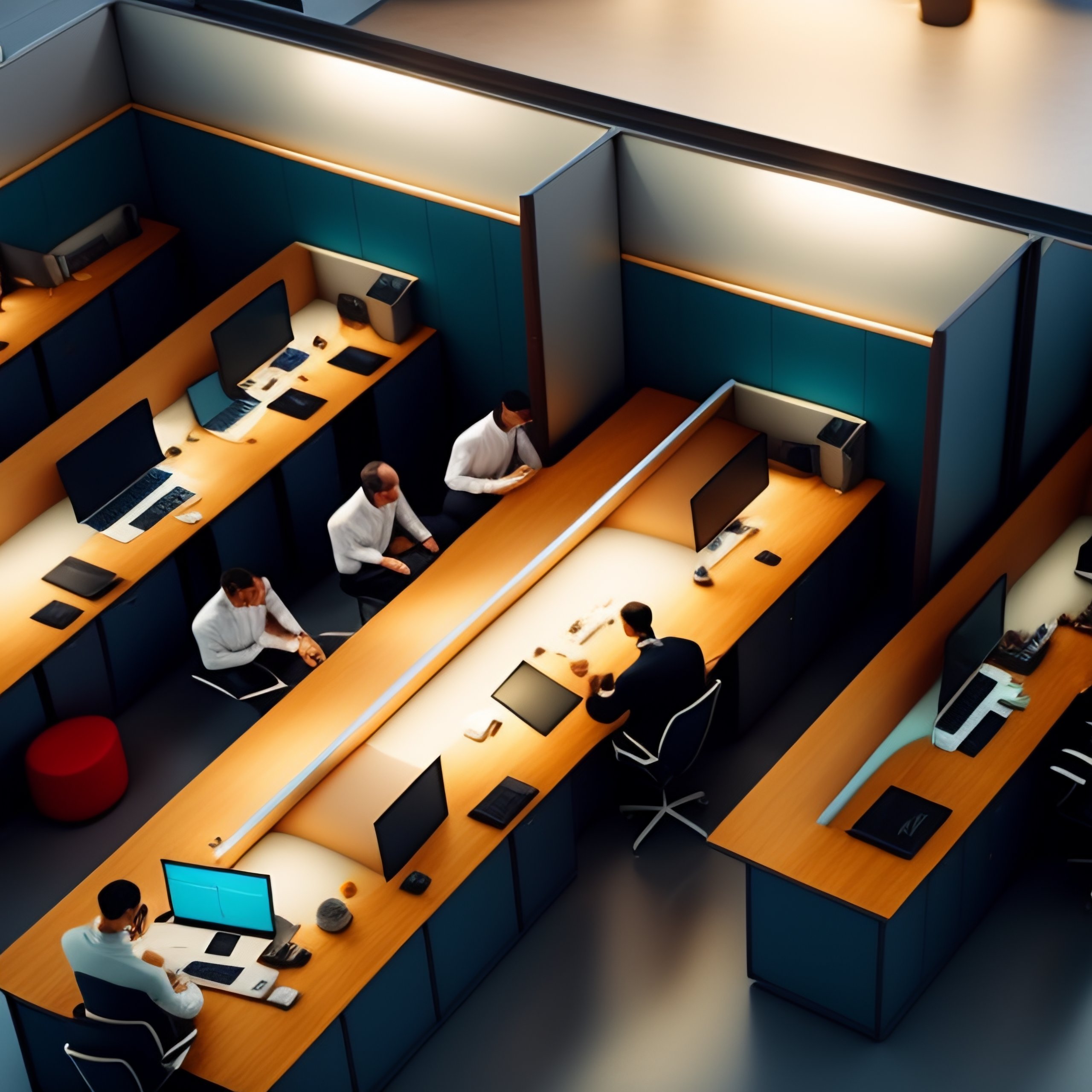 Overhead view of 100 people working in cubicles