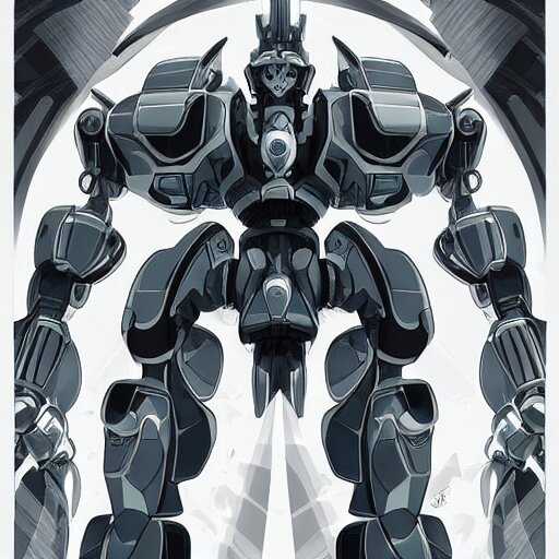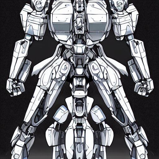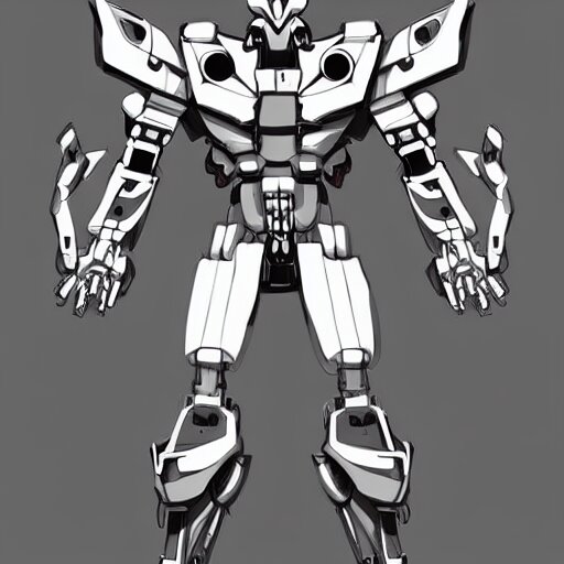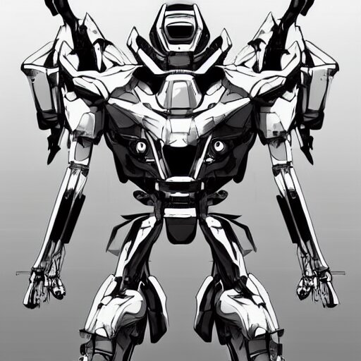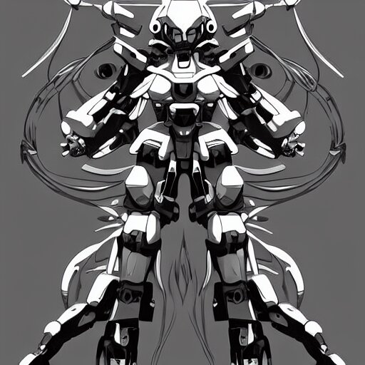 Very buff anime mecha concept art, greyscale in vector art, very symmetrical, alien and bizarre, science fiction, artstation, pinterest, adobe photoshop