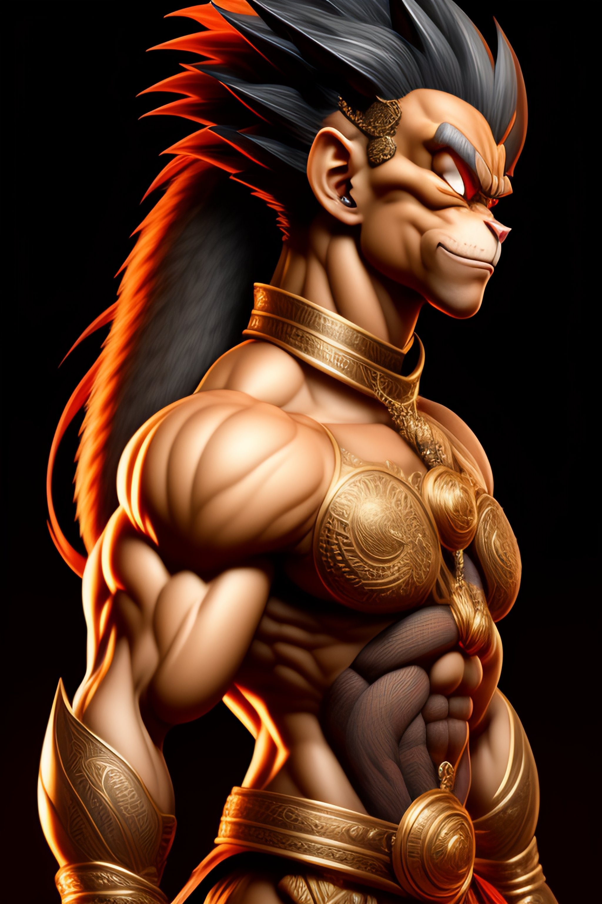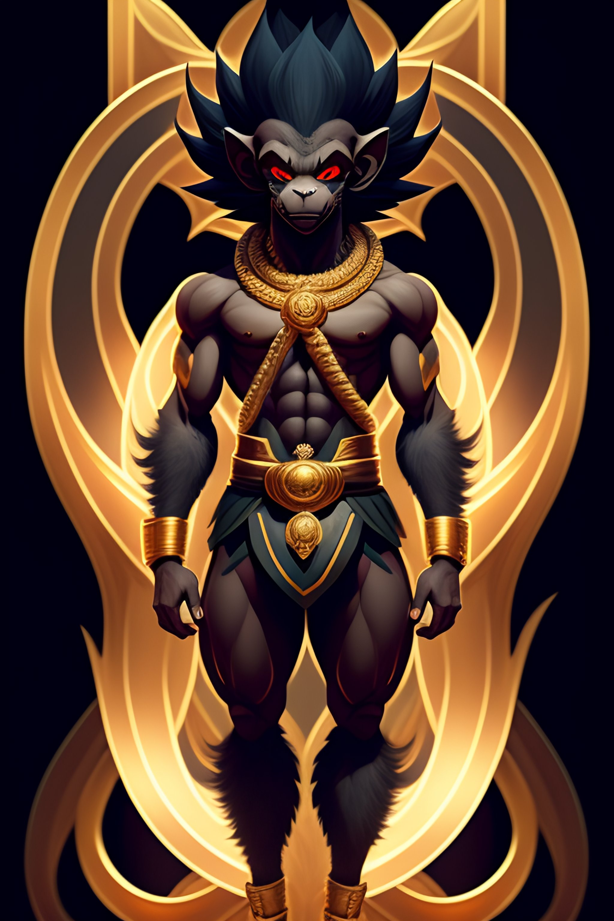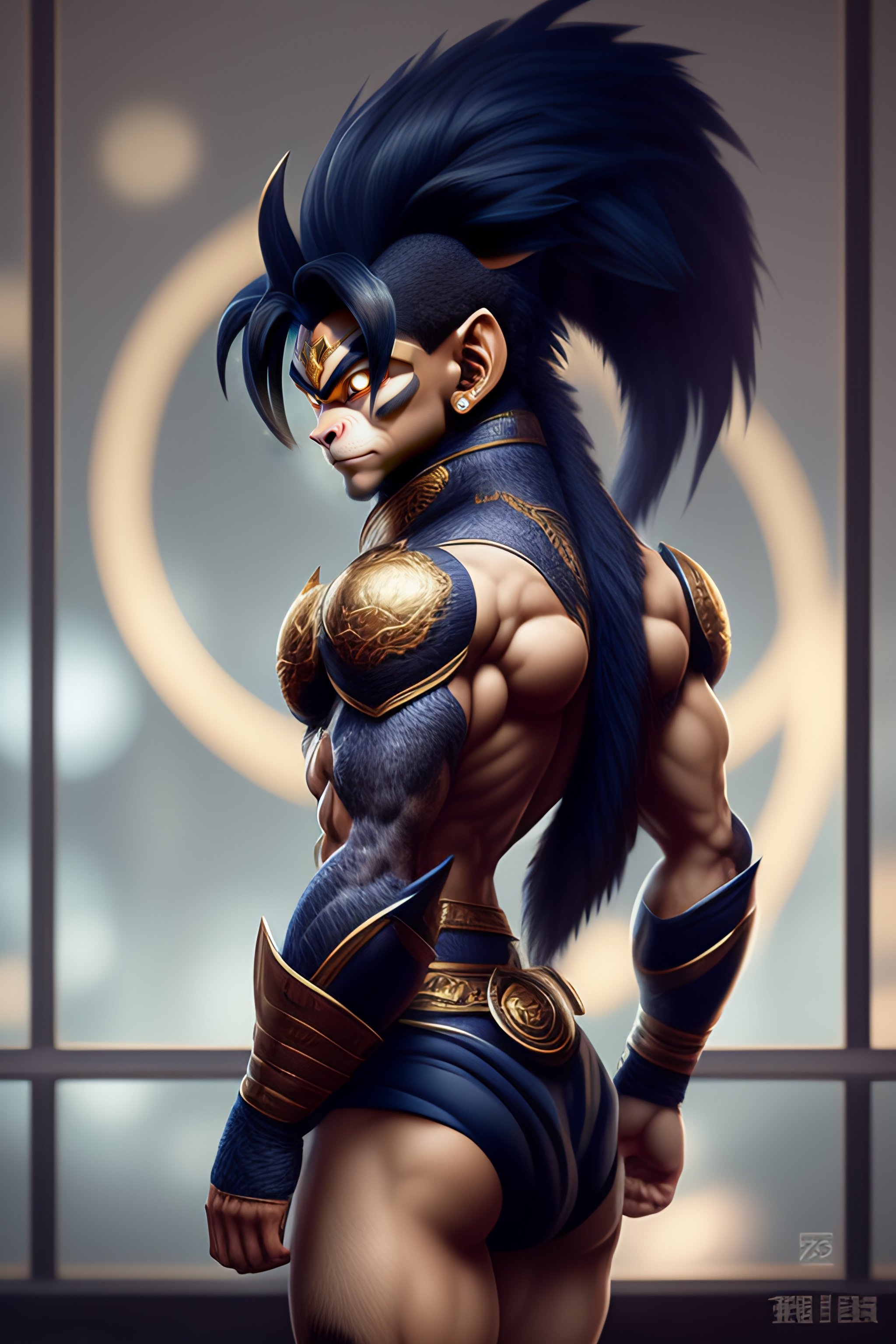 Half human half monkey, with a tail, anthropomorph, beautiful, detailed symmetrical full body portrait, intricate complexity, in the style of dragon ball anime