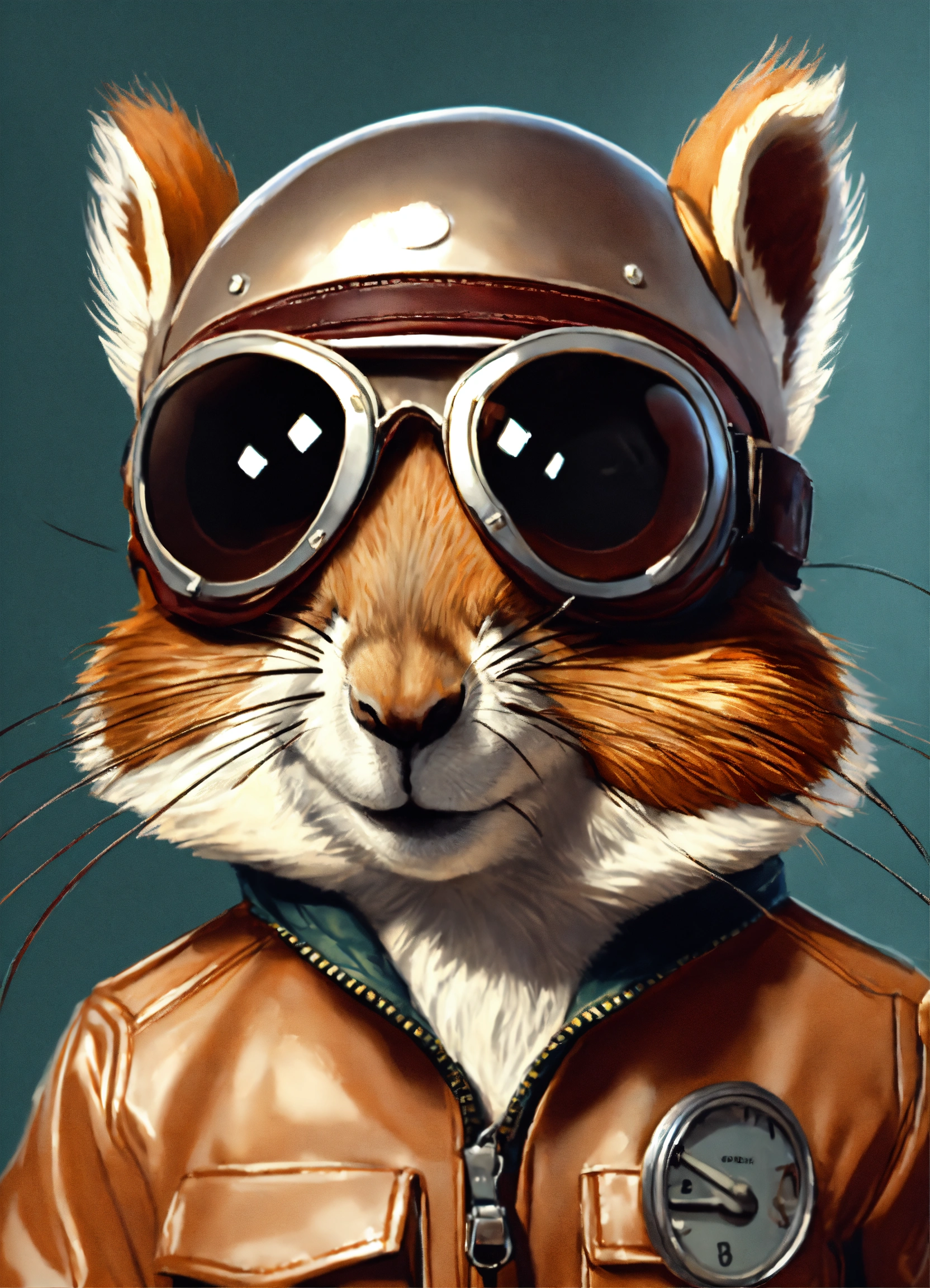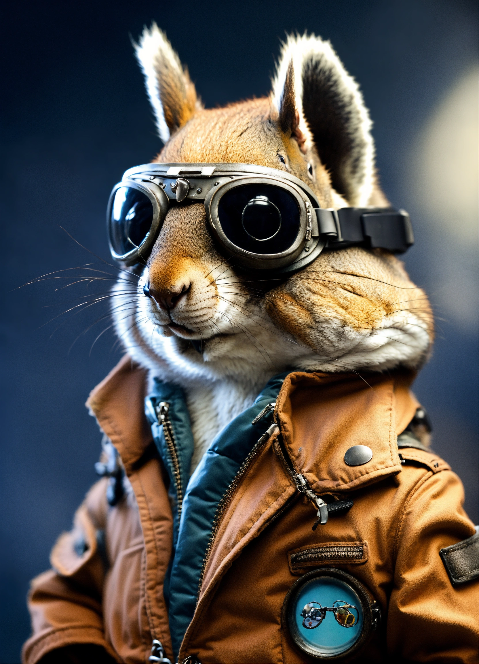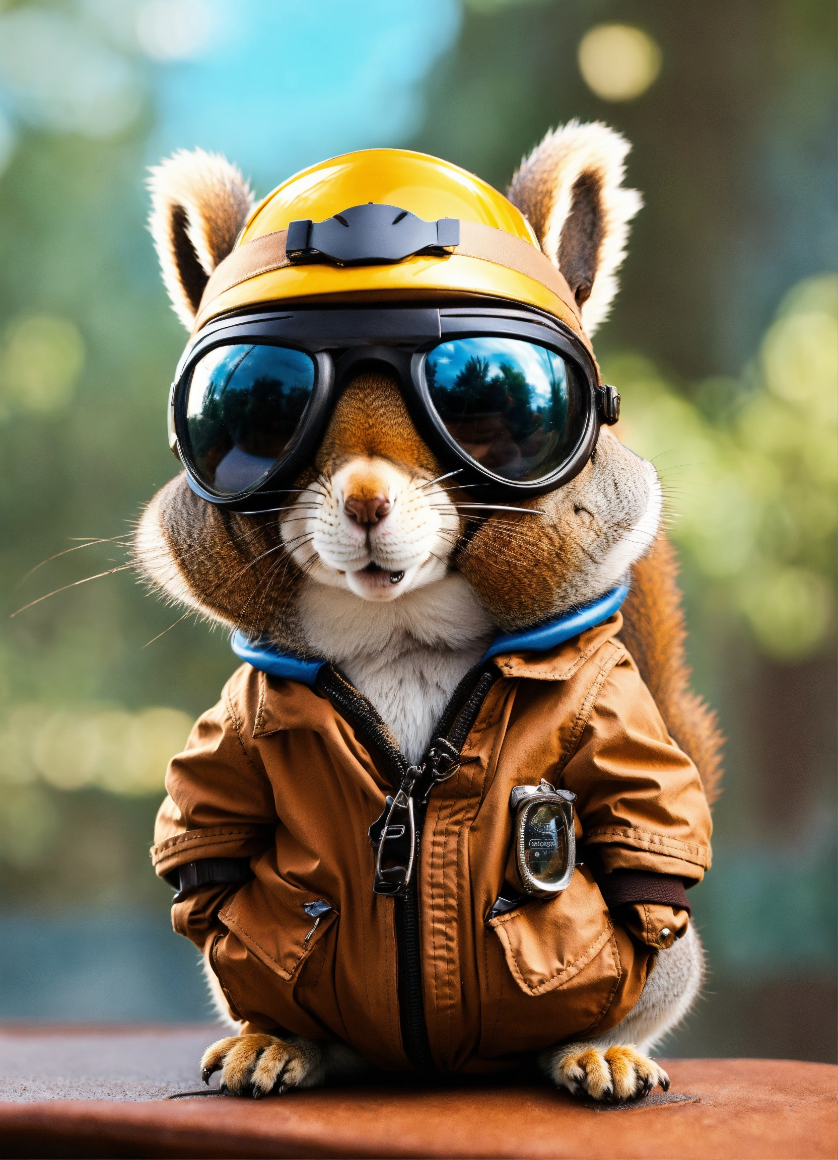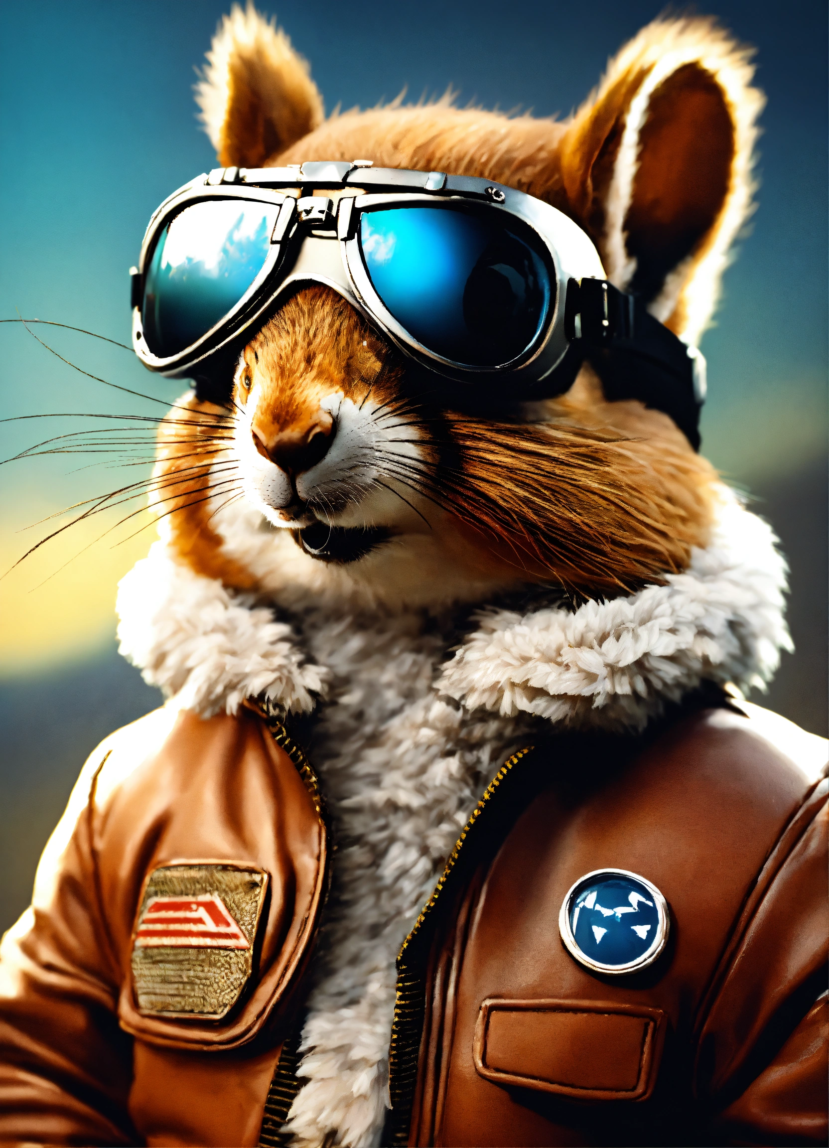 A cute squirrel pilot wearing an aviator jacket and goggles
