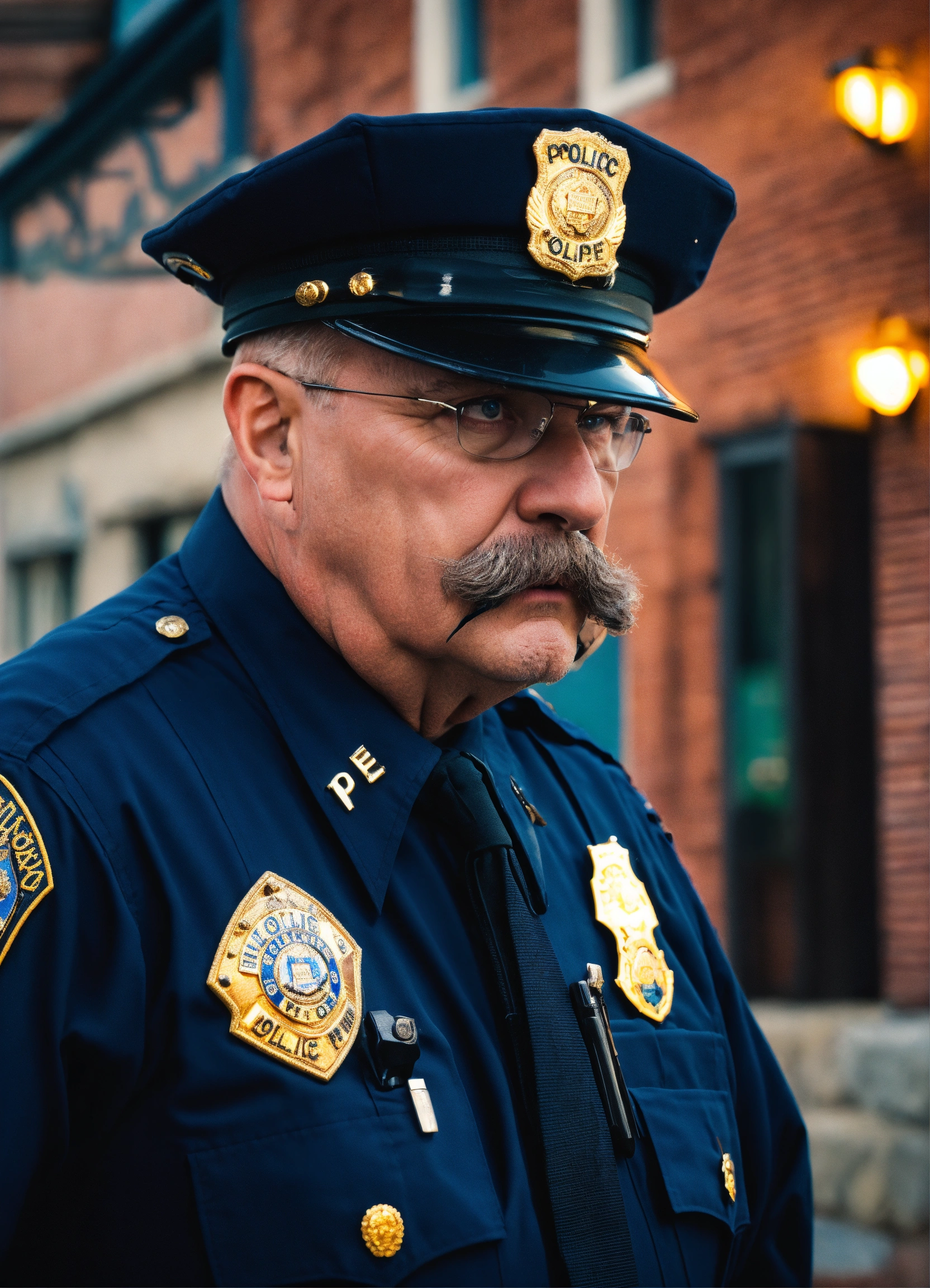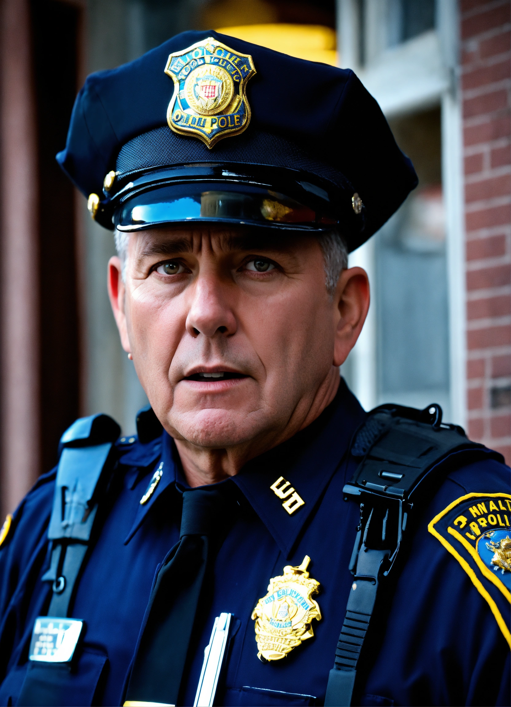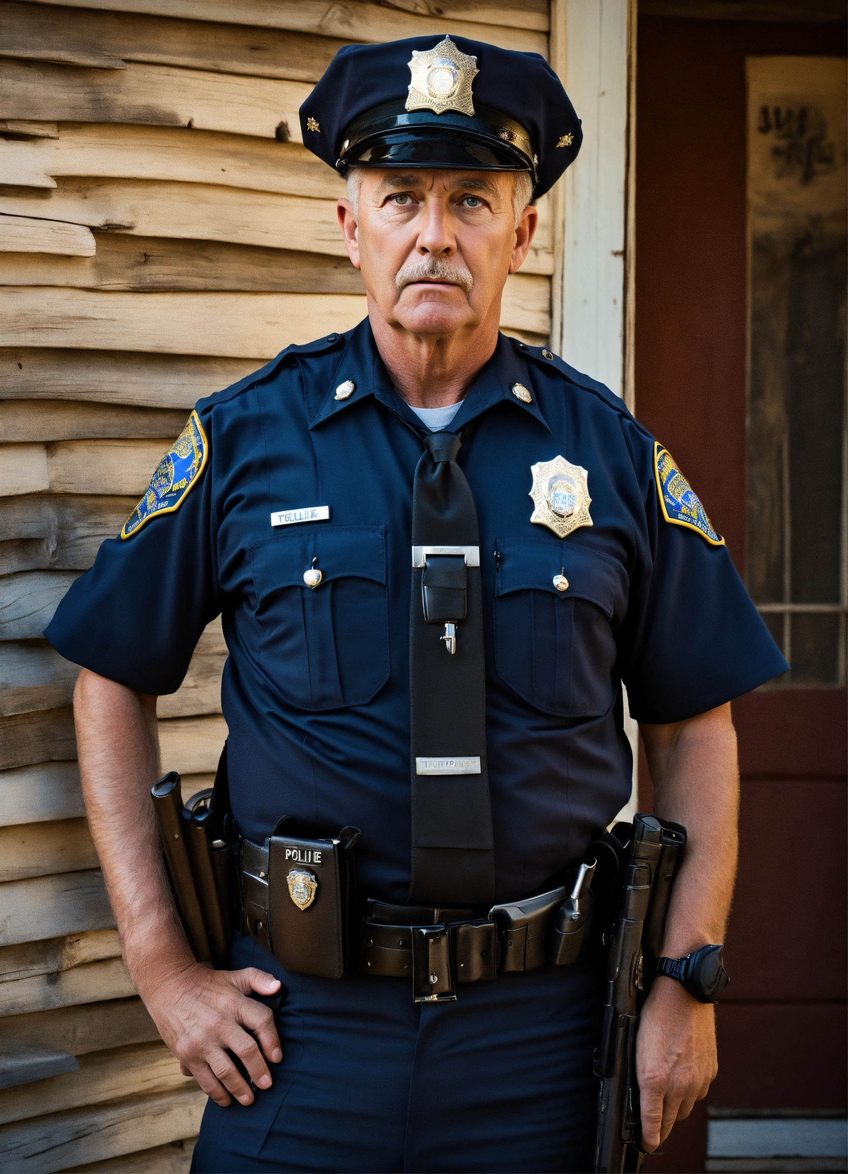 Scared random unique expressive old small-town cop realistic 4k montana small-town police officer