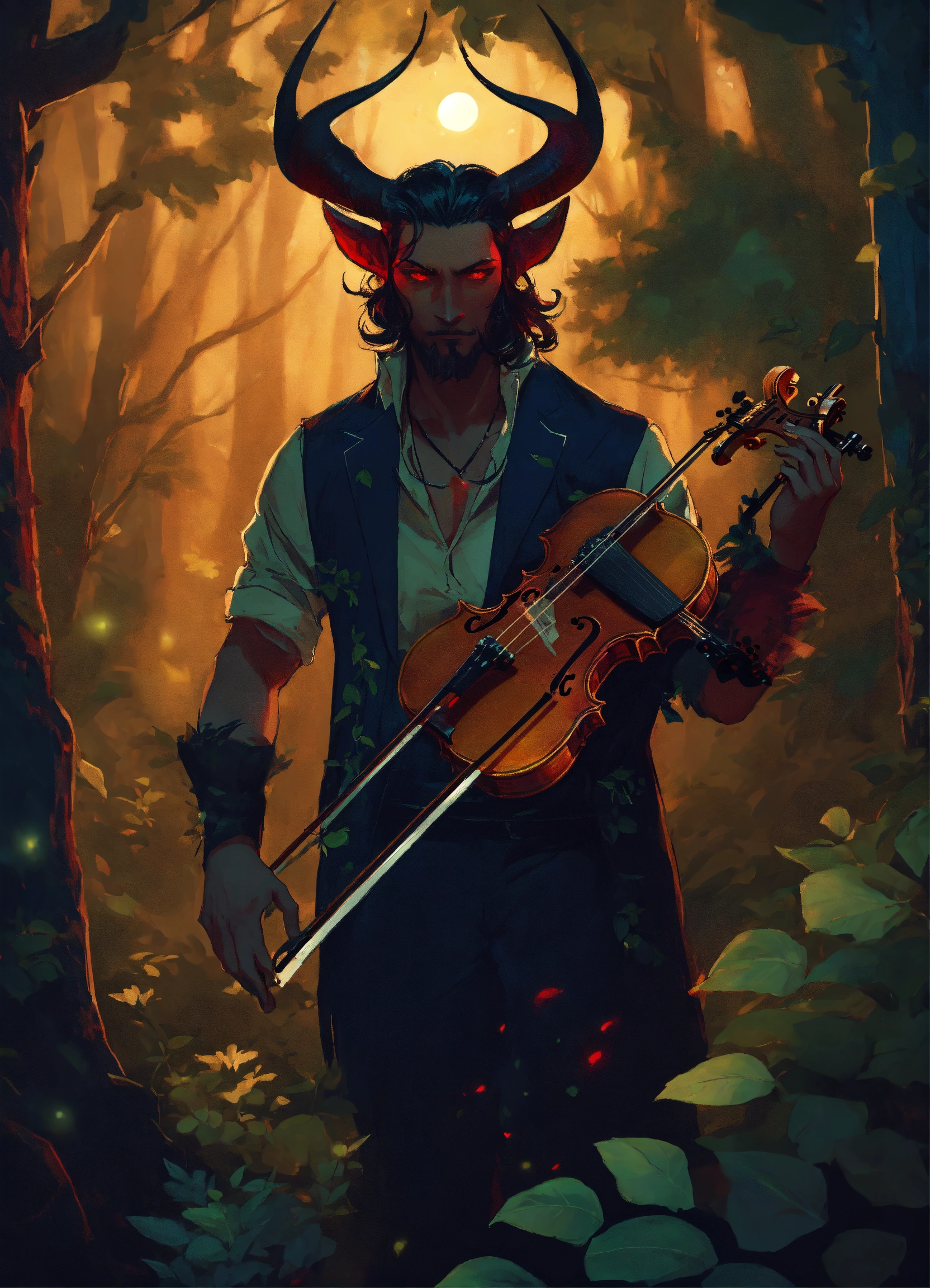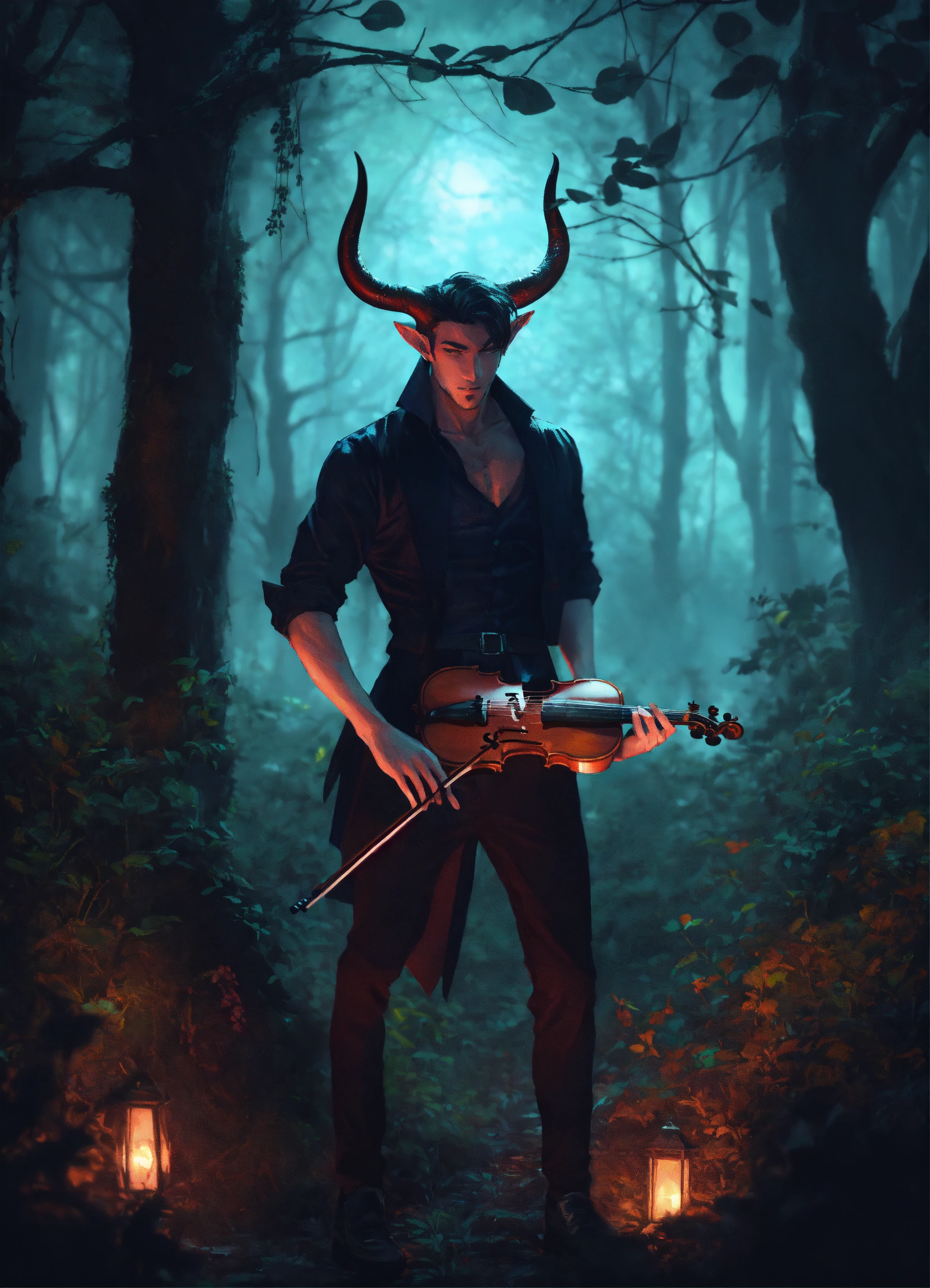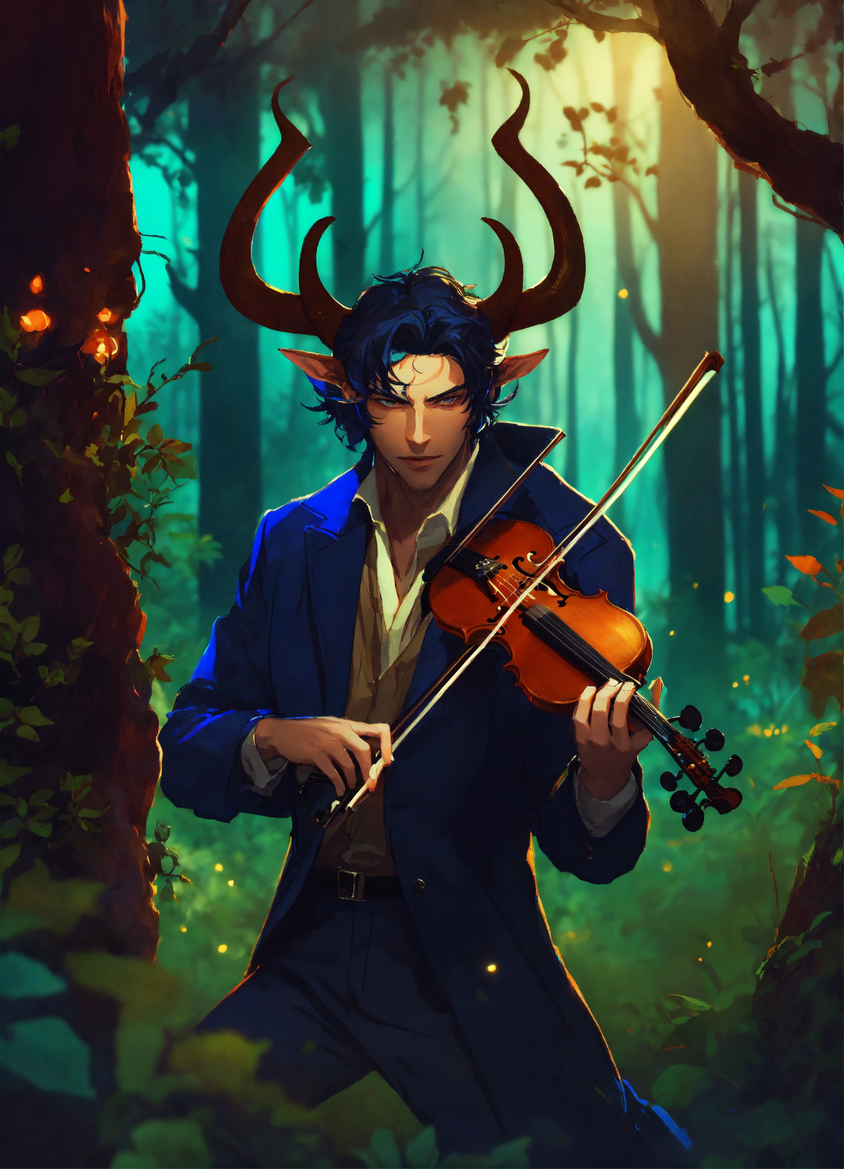 Handsome demon man with small horns